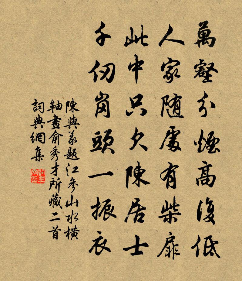萬壑分煙高復低,人家隨處有柴扉。此中只欠陳居士,千仞崗頭一振衣。