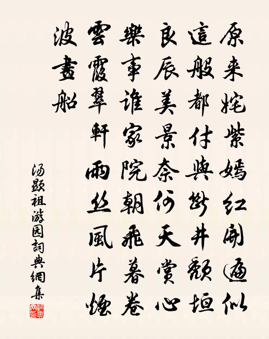 【皂羅袍】原來奼紫嫣紅開遍,似這般都付與斷井頹垣。良辰美景奈何天,賞心樂事誰家院!朝飛暮卷,雲霞翠軒;雨絲風片,煙波畫船。