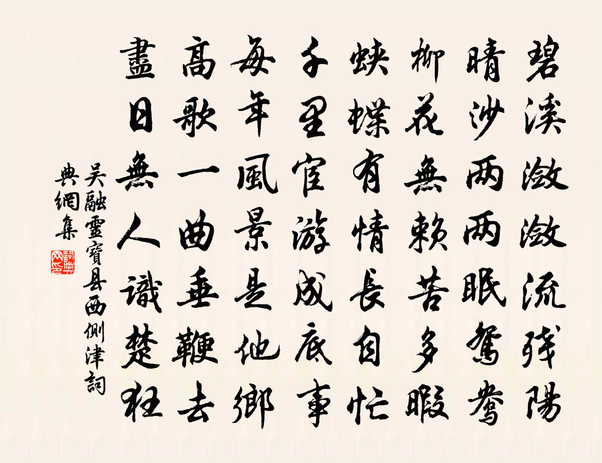 詩詞名句歷史字典書法欣賞書法字典國語詞典說文解字康熙字典古漢語字典標 題 作 者 詩 句 靈寶縣西側津作者:吳融 朝代:唐代靈寶縣西側津原文碧溪瀲瀲流殘陽,晴沙兩兩眠鴛鴦。柳花無賴苦多暇,蛺蝶有情長自忙。千里宦遊成底事,每年風景是他鄉。高歌一曲垂鞭去,盡日無人識楚狂。詩詞問答問:靈寶縣西側津的作者是誰?答:吳融問:靈寶縣西側津寫於哪個朝代?答:唐代吳融靈寶縣西側津書法欣賞靈寶縣西側津書法作品注釋全唐詩:卷684-70詩詞推薦【中呂】喜春來過普天樂趙岩〔元代〕琉璃殿暖香浮細,翡翠簾深卷燕遲,夕陽芳草小亭西。間納履,見十二個粉蝶兒飛。一個戀花心,一個攙春意。一古意詩沈約〔南北朝〕挾瑟叢台下。徙倚愛容光。佇立日已暮。戚戚苦人腸。露葵已堪摘。淇水未沾裳。錦衾無獨暖。羅衣空自香。明月憐落梅(江梅引·四之三)洪皓〔宋代〕重閨佳麗最憐梅。牖春開。學妝來。爭粉翻光、何遽落梳台。笑坐雕鞍歌古曲,催玉柱,金卮滿,勸阿誰。貪為結幽草二首張耒〔宋代〕衰草已無賴,秋花只強名。雨園蛩響細,寒樹鳥啼清。淹泊知吾道,幽居見物情。唯應有鄰叟,足雨問農耕。次韻答王四黃庭堅〔宋代〕病懶百事廢,不惟書問疏。新詩苦招喚,是日鎖直廬。潢污深一尺,大道覆行車。晴夜遙相似,秋堂對望舒。高宗皇帝輓詞二首倪思〔宋代〕稽古神文煥,中興武烈光。挈圖親授子,體道妙為皇。萬乘隆尊養,千齡甫壽康。龍湖俄趣駕,遽返白雲鄉。養家苦馬鈺〔元代〕修行易,斷情難。始初分解最艱難。譬無常,破盡難。心開悟,沒疑難。覺從前事養家難。學神仙,有甚難。王氏螟羅氏子邵雍〔宋代〕庚星一點光無涯,日來飛入江東家。江東江左舊聲氣,叔氏得之真差事。歸來瑞光凌九霄,叔氏喜亦迎眉鬢。家人上明達皇后冊寶五首真宗〔宋代〕恭斂宜家,柔順承天。德昭彤管,尤在進賢。寮冊社翟,追榮壽原。四時裸享,何千萬年。田家三首李建勛〔唐代〕畢歲知無事,兵銷復舊丁。竹門桑徑狹,春日稻畦青。犬吠隈籬落,雞飛上碓桯。歸田起囗思,蛙叫草冥冥。不識挽俞景梁洪咨夔〔宋代〕億計橋門士,輸君第一籌。文為天下樣,行與古人謀。磨鐵素心在,注金蒼鬢休。梅邊清絕夢,誰更酒扶頭。朱秀才庭際薔薇方乾〔唐代〕繡難相似畫難真,明媚鮮妍絕比倫。露壓盤條方到地,風吹艷 * 燒春。斷霞轉影侵西壁,濃麝分香入四鄰。看取雜詠三首宋祁〔宋代〕樂羊振歸旅,光艷充國都。矜心激盛氣,奮若長虹舒。君王勞軍罷,為出一篋書。避席再拜跪,功非臣所圖。不待高司業二首張嵲〔宋代〕旌頭落盡少微明,追復成均雅頌聲。詔起儒宗高一代,禮隆師範表諸生。拾遺柱史當螭立,潤色綸言倚馬成。行氫途中逢故人話西山讀書早曾遊覽杜牧〔唐代〕西岩曾到讀書堂,穿竹行莎十里強。湖上夢餘波灩灩,嶺頭愁斷路茫茫。經過事寄煙霞遠,名利塵隨日月長。莫道簽判丈見約同諸丈攜酒過賈新之運屬適以周侍趙蕃〔宋代〕載酒俱期過閬仙,悵然何事獨求船。春風易遠朝天旆,夜雨空成借榻眠。誰謂此行真不遇,了知一笑欠前緣。連朝酬贈絳台錢太尉見寄魏野〔宋代〕分符不獨得民夸,玉署清華有棣華。重耳山河初作主,闔閭宮闕舊為家。風飄樓閣高低樂,日照池塘上下花。多謝晚秋病中王建〔唐代〕萬事風吹過耳輪,貧兒活計亦曾聞。偶逢新語書紅葉,難得閒人話白雲。霜下野花渾著地,寒來溪鳥不成群。病多謝張師道廣文見過二首方回〔宋代〕爽氣橫空闊,清談絕輩流。嘶驄能枉顧,漫刺肯輕投。敢謂官無冷,其如學更優。榮途未須捷,恐隔舊交遊。句諶祜〔宋代〕雁過大江風帖帖,雅啼荒樹日悠悠。名句推薦路逢險處須迴避,事到臨頭不自由。佚名《增廣賢文·上集》 更深月色半人家,北斗闌乾南斗斜。劉方平《月夜》 同為懶慢園林客,共對蕭條雨雪天。白居易《雪夜小飲贈夢得》 相恨不如潮有信,相思始覺海非深。白居易《浪淘沙·借問江潮與海水》 鵲橋波里出,龍車霄外飛。任希古《和長孫秘監七夕》 喪禮者,以生者飾死者也,大象其生以送其死也。故事死如生,事亡如存,終始一也。荀子《荀子·禮論》 東家頭白雙女兒,為解挑紋嫁不得。元稹《織婦詞》 不忍覆余觴,臨風淚數行納蘭性德《菩薩蠻·催花未歇花奴鼓》 鳥下綠蕪秦苑夕,蟬鳴黃葉漢宮秋。許渾《鹹陽城東樓 / 鹹陽城西樓晚眺 / 西門》 山光悅鳥性,潭影空人心。常建《題破山寺後禪院》