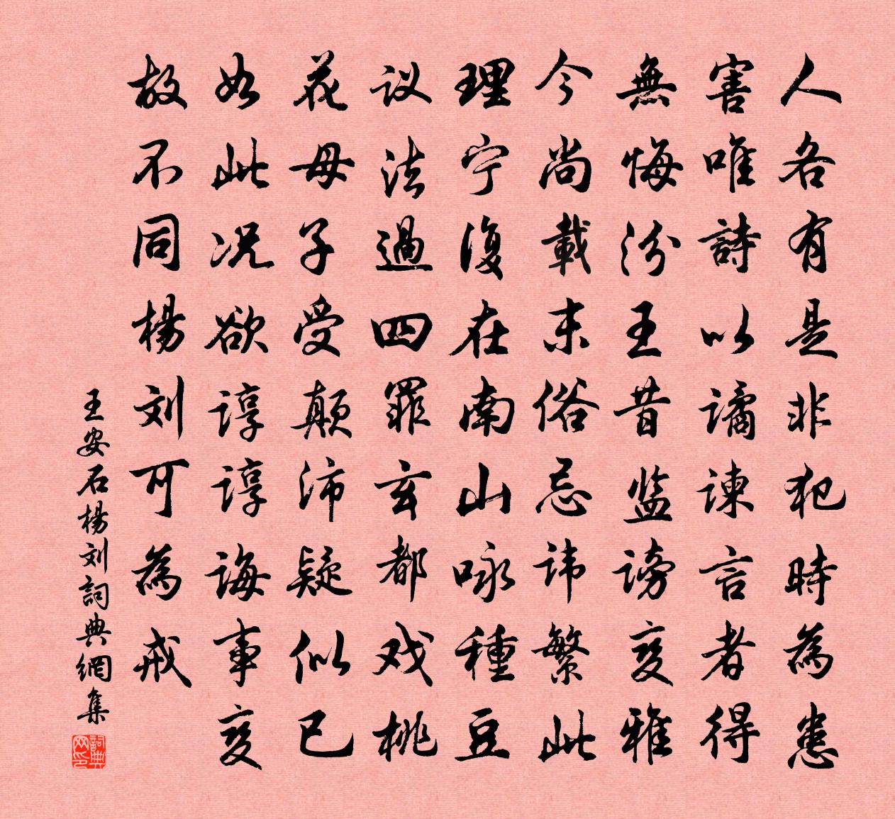 詩詞名句歷史字典書法欣賞書法字典國語詞典說文解字康熙字典古漢語字典標 題 作 者 詩 句 楊劉作者:王安石 朝代:宋代楊劉原文人各有是非,犯時為患害。唯詩以譎諫,言者得無悔。汾王昔監謗,變雅今尚載。末俗忌諱繁,此理寧復在。南山詠種豆,議法過四罪。玄都戲桃花,母子受顛沛。疑似已如此,況欲諄諄誨。事變故不同,楊劉可為戒。詩詞問答問:楊劉的作者是誰?答:王安石問:楊劉寫於哪個朝代?答:宋代問:王安石的名句有哪些?答:王安石名句大全王安石楊劉書法欣賞楊劉書法作品詩詞推薦安西馬吳泳〔宋代〕月脅霜飛鏡夾瞳,龍媒婦盡朔庭空。沙丘尚有真驪牡,端自方皋一雇中。送范之侄謁留守別先生陶夢桂〔宋代〕不待吹噓送上在,凌雲意氣自飄然。長江秋色將征旆,半夜霜威襲客氈。淝水功名須爾力,斜川風月了吾年。師門雜興五首權德輿〔唐代〕叢鬢花愁眉時勢新,初笄絕代北方人。一顰一笑千金重,肯似花夜失身。乍聽絲聲似竹聲,又疑丹穴九雛驚。金波【雙調】殿前歡 和阿里西瑛韻楊朝英〔元代〕白雲窩,樵童斟酒牧童歌。醉時林下和衣臥,半世磨陀。富和貧爭甚么?自有閒功課,共野叟閒吟和。呵呵笑我,和駱華分水嶺詩林致誠〔宋代〕一自端明去外台,修途松蓋屬誰栽。仁心既許推仁政,玉筍清班趁早排。江神子(亳社觀梅呈范守、秦令)晁補之〔宋代〕去年初見早梅芳。一春忙。短紅牆。馬上不禁、花惱只顛狂。蘇晉長齋猶好事,時喚我,舉離觴。今年春事更茫茫次韻史主簿雨夜見寄樂雷發〔宋代〕水長許田溪,春寒入竹扉。幾人聽夜雨,惟我怯單衣。樹罅青燈耿,籬根白菌肥。明朝有忙事,推枕問漁磯。和應憲使游滄浪亭韻袁說友〔宋代〕使星兩兩照前山,筆下高吟萬選錢。絕景政須終日款,茲游真可以詩傳。深得遇雨排清晝,晚日迎風浸碧煙。千載滿庭芳 贈零口楊悟一馬鈺〔元代〕楊姑悟道,猛烈難比。便把鏡樓摔碎。識破皮囊臭腐,誓不梳洗。一志蓬頭垢面,便披蓑、策杖頂笠。絕聰慧,戒贈文叔良王粲〔魏晉〕溫溫恭人。稟道之極。鴉鳴王令〔宋代〕庭前佳樹綠陰成,樹杪飛鴉去就輕。自顧主人無敗德,豈嫌爾口有凶聲。平生直道常多禍,兩耳清風一聽鳴。輒莫季天敘為人相宅過余求詩戲書二絕鄭剛中〔宋代〕一區懸磬已偷安,常念風波世路艱。若謂他時庇寒士,會須令我作千間。禽言九首提葫蘆劉克莊〔宋代〕朝愁暮愁愁不已,生為愁人死愁鬼。百禽唯爾尤可喜,勸我移住醉鄉里。劉伶畢卓善自謀,生前死後不識愁。寄傳法二大卿並簡譯席諸大士夏竦〔宋代〕潤色金文數十函,清涼甘露洗塵凡,修行不作伊蘭計,只願三千盡寶嚴。卞將軍墓曾極〔宋代〕握節顏色拳透爪,歸元先軫面如生。晉陵發掘今無主,獨有忠魂占冶城。書懷絕句陸游〔宋代〕不到天台三十年,草庵猶記宿雲邊。老僧曉出松門去,手挈軍持取澗泉。和景仁答才元示花圖司馬光〔宋代〕高士閒居舊,名花獨步今。移從洛浦遠,濯自錦江深。傳得巫山貌,非因延壽金。不須天女散,已解動禪心。留題分宜前山吳隱士白雲亭金君卿〔宋代〕面挹晴光錦繡川,卻臨蒼澗玉聲涓。逸民自有山中樂,人間山前令尹賢。高宗皇帝輓詞二首周必大〔宋代〕太極乾元父,清都大帝宮。宴酣忘御駿,仙去任遺弓。音遏思堯顙,旻號泣舜瞳。孤臣台閣舊,淚血灑春風。胡葦航寄古劍盛世忠〔宋代〕有人尺錦長安來,遠寄寶匣手自開。紅雲紫氣燦虛室,鋏中青蛇鱗生苔。誠攜掌握一揮動,瞬息天地興風雷。少年名句推薦易求無價寶,難得有心郎。魚玄機《贈鄰女 / 寄李億員外》 爾曹身與名俱滅,不廢江河萬古流。杜甫《戲為六絕句·其二》 醉舞梁園夜,行歌泗水春杜甫《寄李十二白二十韻》 小軒獨坐相思處,情緒好無聊。石孝友《眼兒媚·愁雲淡淡雨瀟瀟》 洞庭葉未下,瀟湘秋欲生徐禎卿《在武昌作》 琴里知聞唯淥水,茶中故舊是蒙山。白居易《琴茶》 初報邊烽照石頭,旋聞胡馬集瓜州。陸游《送七兄赴揚州帥幕》 寒月悲笳,萬里西風瀚海沙。納蘭性德《採桑子·塞上詠雪花》 九衢雪小,千門月淡,元宵燈近。晁端禮《水龍吟·詠月》 秋風蕭瑟天氣涼,草木搖落露為霜,群燕辭歸鵠南翔。曹丕《燕歌行二首·其一》