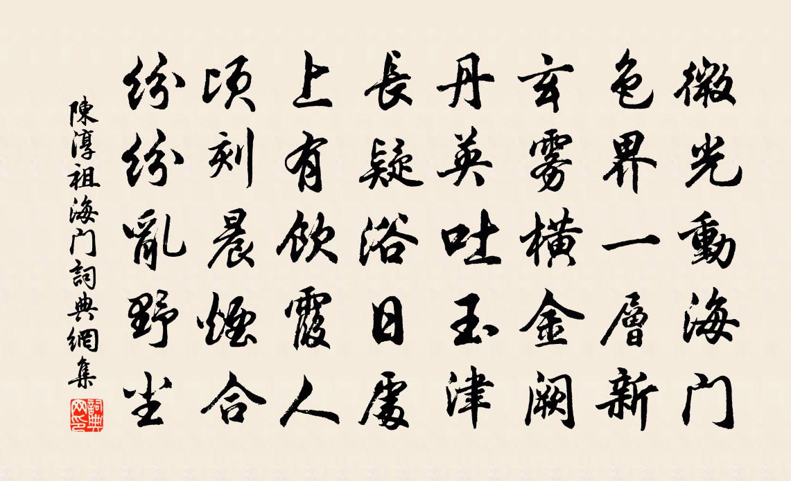 詩詞名句歷史字典書法欣賞書法字典國語詞典說文解字康熙字典古漢語字典標 題 作 者 詩 句 海門作者:陳淳祖 朝代:宋代海門原文微光動海門,色1~1界一層新。玄霧橫金闕,丹英吐玉津。長疑浴日處,上有飲霞人。頃刻晨煙合,紛紛亂野塵。詩詞問答問:海門的作者是誰?答:陳淳祖問:海門寫於哪個朝代?答:宋代陳淳祖海門書法欣賞海門書法作品詩詞推薦葛秘校和予關字韻詩兩篇再以一篇奉酬王洋〔宋代〕數州形勝共鄉關,江浦淮堧一望間。長恨崎嶇千里隔,那知邂逅兩身閒。稻粱要足幾時足,閭井欲還何日還。猶勝頌一百則釋重顯〔宋代〕盲聾音啞,杳絕機宜。天上天下,堪笑堪悲。離朱不辨正色,師曠豈識玄絲。急如獨坐虛窗下,葉落花開自有時。過邵堯夫先生富弼〔宋代〕先生自衛客西畿,樂道安間絕世機。再命初筵終不起,獨甘窮巷寂無依。貫穿百代嘗探古,吟詠千篇亦造微。珍重自贊釋法薰〔宋代〕握拂子,坐繩床。默爾無言,其聲琅琅。斷衲僧命脈,壞業林紀綱。丹青寫出,醜惡難藏。一任傍人話短長。裴勛父子佚名〔唐代〕矬人饒舌,破車饒楔。(父屬醆云:“裴勛飲十分。”)蝙蝠不自見,笑他樑上燕。(勛復父醆云:“十一郎亦飲楊仲博生日魏了翁〔宋代〕任教寒畯著先鞭,盡使權豪紊選班。縱誚我迂嗤我矯,箇中所負重於山。喜得孫徐僑〔宋代〕我五十有四,才今見其孫。汝父亦三十,得子為之昆。人生百年間,欻如駒隙奔。其間欣與戚,短長未暇論。長長南鄉子·煙漠漠李珣〔唐代〕煙漠漠,雨淒淒,岸花零落鷓鴣啼。遠客扁舟臨野渡,思鄉處,潮退水平春色暮。金縷曲/賀新郎劉辰翁〔宋代〕拍瓮春醅動。洞庭霜、壓綠堆黃,林苞堪貢。況有老人潭邊菊,搖落賞心入夢。數百歲、半來許中。兒女牽衣團欒送郡守張宗丞蕭元之〔宋代〕本是詩書種,躬耕寂寞濱。傾家市鞍馬,捐命犯風塵。幕府差功級,京華困旅貧。不如歸去好,依舊號詩人。越州歌二十首汪元量〔宋代〕昨夢吳山閬苑開,風吹仙樂下瑤台。翠圍紅陣知多少,半揭珠簾看駕來。病中答劉書記見贈李山甫〔唐代〕病來雙樹下,雲腳上禪袍。頻有瓊瑤贈,空瞻雪月高。已知捐俗態,時許話風騷。衰疾未能起,相思徒自勞。送大理金少卿赴闕以老成耆德重於典刑為韻兼仲並〔宋代〕澆風昔未殄,向隅或不免。上心天地心,哀矜用中典。卿聯慎所付,遂極天下選。譏讞聊小試,經論期一展。偈九首釋惟清〔宋代〕一是一,二是二。頭上是天,腳上是地。飢即餐兮困即睡,人人皆受如來記。喜姚郎中自杭州回賈島〔唐代〕路多楓樹林,累日泊清陰。來去泛流水,翛然適此心。一披江上作,三起月中吟。東省期司諫,雲門悔不尋。禁中新月徐鉉〔唐代〕今夕拜新月,沈沈禁署中。玉繩疏間彩,金掌靜無風。節換知身老,時平見歲功。吟看北墀暝,蘭燼墜微紅。陪韓守劉村看牡丹李石〔宋代〕洛陽舊譜隔芳園,姚魏尋香作返魂。端為名花肯迂路,定知春色落深村。日中半醉如含恨,雨後幽姿未忍言。上怨人生不長好曹勛〔宋代〕人生不長好,倏忽如蕣英。臨觴莫辭醉,既醉莫原醒。但識醉中理,無欲醒時名。夷齊猶餓死,誰復哀屈平。陵谷告春亭朱翌〔宋代〕一丈寬鋤地,三重密蓋茅。分封鷗鷺境,拾翠芰荷{左土右幻}。正樂賓中主,居然國外郊。老來俱倒置,營圃不贈趙排岸兼簡汪尉陳造〔宋代〕二年挽眉簿書俗,分無足音到空谷。趙侯縹緲塵外人,肯艤歸舟問幽獨。冰壺炯炯當九秋,岩電熠熠懸雙目。小家名句推薦更落盡梨花,飛盡楊花,春也成憔悴。汪元量《鶯啼序·重過金陵》 李白如今已仙去,月在青天幾圓缺?唐寅《把酒對月歌》 天下殆哉,岌岌乎。孟子《孟子·萬章章句上·第四節》 昨別今已春,鬢絲生幾縷。韋應物《長安遇馮著》 人處疾則貴醫。韓非及後人《韓非子·解老》 清風明月苦相思,盪子從戎十載餘。王維《伊州歌》 子規夜半猶啼血,不信東風喚不回。王令《送春》 五月雖熱麥風清,檐頭索索繰車鳴。王建《田家行》 出其東門,有女如雲。佚名《出其東門》 古人不見今時月,今月曾經照古人。佚名《增廣賢文·上集》