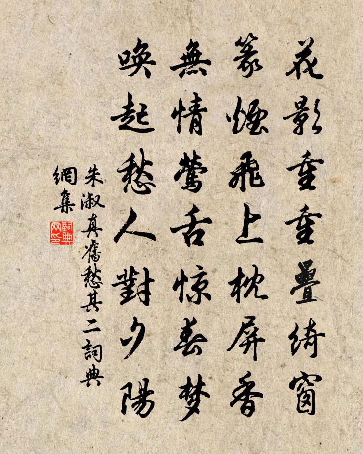 花影重重疊綺窗,篆煙飛上枕屏香。無情鶯舌驚春夢,喚起愁人對夕陽。