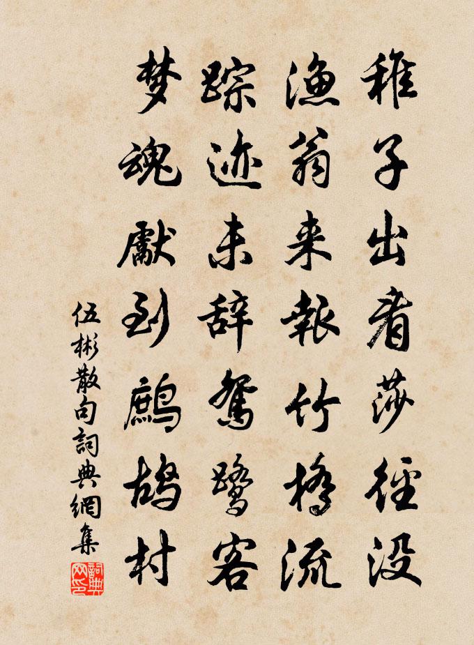詩詞名句歷史字典書法欣賞書法字典國語詞典說文解字康熙字典古漢語字典標 題 作 者 詩 句 句作者:伍彬 朝代:唐代句原文稚子出看莎徑沒,漁翁來報竹橋流。蹤跡未辭鴛鷺客,夢魂先到鷓鴣村。詩詞問答問:句的作者是誰?答:伍彬問:句寫於哪個朝代?答:唐代問:句是什麼體裁?答:句伍彬句書法欣賞句書法作品注釋全唐詩:卷762-23詩詞推薦偈頌四十一首釋慧暉〔宋代〕風吹松雪月當空,一色功中轉步同。刖路分時無雪月,契約一色落功功。泊樵舍施閏章〔清代〕漲減水愈急,秋陰未夕昏。亂山成野戍,黃葉自江村。帶雨疏星見,迴風絕岸喧。經過多戰艦,茅屋幾家存?次韻和相公九月八日所賜詩韓維〔宋代〕叢頭金菊層層鬧,木末丹花艷艷紅。美景歲時暌壽斝,流光朝暮閱疏鍾。詩成洛社騰郵置,夢繞伊川拜杖從。早晚漁家傲佚名〔宋代〕至道不遙只在邇。毫釐差失如千里。道是難求元卻易。如相契。一超直入如來地。水火交時為既濟。三屍六賊都回送南陽李太傅王禹偁〔宋代〕紅旆飄飄奪曉霞,御筵相送出京華。仲尼俎豆真儒者,郤縠詩書屬將家。腰下已懸如斗印,門前看見築堤沙。先朝點頭石釋智愚〔宋代〕大包才剖礙人間,日炙風吹轉放頑。見說聽經曾肯首,更須來透鐵門關。南楊判鎮以詩問安次韻釋紹曇〔宋代〕拙養自林泉,鏖戰驚蠻觸。心灰百念寒,虐焰肯停蓄。猗歟子云翁,惜我如龜玉。無復獻楚庭,終期毀於櫝。調笑毛滂〔宋代〕筵前看柘枝。河東詞客今何地。密寄軟綃三尺淚。錦城春色隔瞿唐,故華灼灼今憔悴。憔悴。何郎地。密寄軟綃三送蕭德洪赴試建安李彌遜〔宋代〕鴻鵠不作三年飛,乘秋逸興高九嶷。去尋岩桂香中路,趁得御柳風前期。青錢立登天上選,黃絹共賞人間辭。漢庭再和並答楊次公蘇軾〔宋代〕昆盧海上妙高峰,二老遙知說此翁。聊復艤舟尋紫翠,不妨持節散陳紅。高懷卻有雲門興,好句真傳雪竇風。唱我五丈觀音董嗣杲〔宋代〕海國風濤擁萬尋,此身何翅直千金。涉波直現昂藏相,結屋還堅報施心。圓得諸方傳轉智,倖存一半有觀音。陰廊再題小西湖姚勉〔宋代〕合前白倚竹扶疎,梅似逋仙柳似蘇。待向山椒結茅屋,更添偉觀占江湖。緣識宋太宗〔宋代〕凡碁妙手不可得,縱橫自在能訊息。不貪利遠施張,舉措安詳求愛力。曲須曲,直須直,打節斜飛防不測。潛思靜贈鹹陽王主簿鄭谷〔唐代〕可愛鹹陽王主簿,窮經盡到昔賢心。登科未足酬多學,執卷猶聞惜寸陰。自與山妻舂斗粟,只憑鄰叟典孤琴。我來以詩句詠梅雪後園林才半樹方蒙仲〔宋代〕只見漫天雪,元來亦有花。兩三花自好,半樹太多些。題夾漈草堂鄭樵〔宋代〕堂後施柴堂上燒,柴門終日似無聊。蓼蟲不解知辛苦,松鶴何能慰寂寥。述作還驚心力盡,吟喔早覺鬢毛雕。布衣何司業和屋字詩見詒次韻奉酬喻良能〔宋代〕亦好園林富松竹,愛山堂上書連屋。恨無妙語為題品,空對奇峰有十六。先生佳句落泉石,杜詩韓筆端能續。有如次韻古梅虞儔〔宋代〕怪底昌園一種梅,老枝強項獨遲開。伶俜鶴膝翻嫌瘦,皴皵龍鱗不受摧。羞把冰肌混桃李,故將粉面映莓苔。廣平千秋歲(壽)張元乾〔宋代〕相門出相,和氣濃春釀。傳家冠珮雲台上。龐眉扶壽杖。綠髮披仙氅。星兩兩。泰階已應昇平象。玉砌蘭芽長。定雨中花慢(春日旅況)劉褒〔宋代〕縹蒂緗枝,玉葉翡英,百梢爭赴春忙。正雨後、蜂黏落絮,燕撲晴香。遺策誰家盪子,唾花何處新妝。想流紅有恨名句推薦牆裡鞦韆牆外道。牆外行人,牆裡佳人笑。蘇軾《蝶戀花·春景》 有耳莫洗潁川水,有口莫食首陽蕨李白《行路難三首》 誰謂傷心畫不成,畫人心逐世人情。韋莊《金陵圖》 往事思量一晌空,飛絮無情,依舊煙籠。夏完淳《一剪梅·詠柳》 晴雲輕漾,薰風無浪,開樽避暑爭相向。薛昂夫《西湖雜詠·夏》 子路,人告之以有過則喜。禹聞善言則拜。孟子《孟子·公孫丑章句上·第八節》 風吹芳蘭折,日沒鳥雀喧。李白《送裴十八圖南歸嵩山二首》 敗葉填溪水已冰,夕陽猶照短長亭。納蘭性德《浣溪沙·敗葉填溪水已冰》 中秋月。月到中秋偏皎潔。徐有貞《中秋月·中秋月》 馬驕泥軟錦連乾,香袖半籠鞭。薛昭蘊《喜遷鶯·清明節》