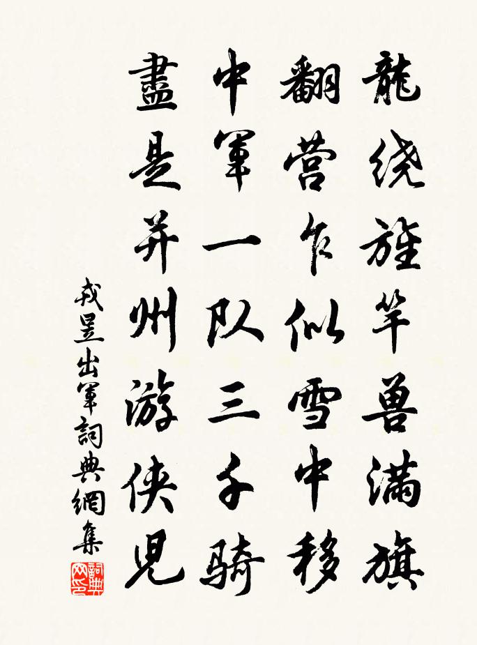 龍繞旌竿獸滿旗,翻營乍似雪中移。中軍一隊三千騎,儘是并州遊俠兒。