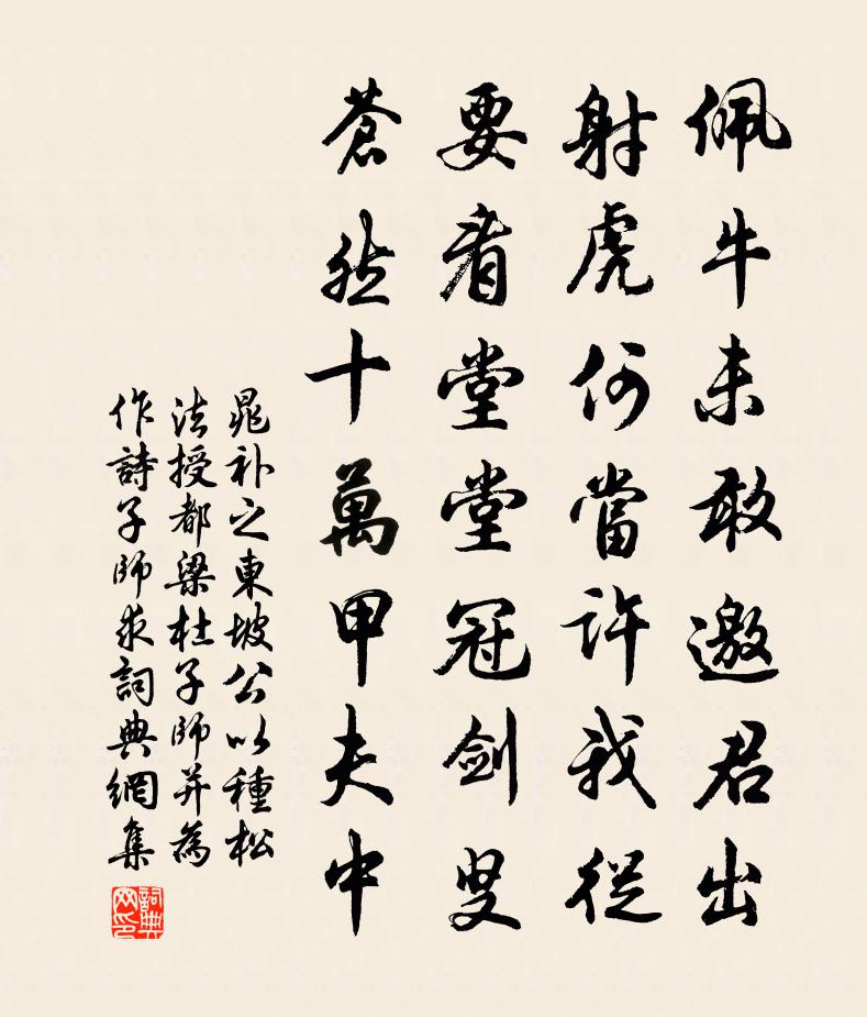 佩牛未敢邀君出,射虎何當許我從。要看堂堂冠劍叟,蒼然十萬甲夫中。