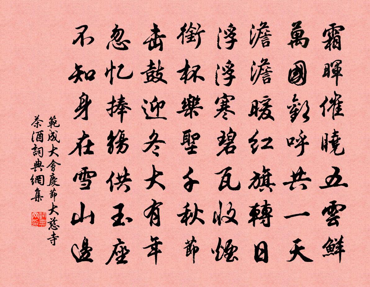 范成大會慶節大慈寺茶酒書法欣賞