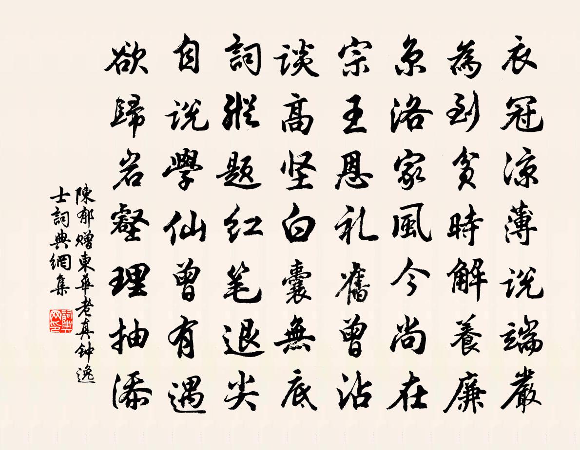 詩詞名句歷史字典書法欣賞書法字典國語詞典說文解字康熙字典古漢語字典標 題 作 者 詩 句 贈東華老真鍾逸士作者:陳郁 朝代:宋代贈東華老真鍾逸士原文衣冠涼薄說端嚴,為到貧時解養廉。京洛家風今尚在,宗王恩禮舊曾沾。談高堅白囊無底,詞縱題紅筆退尖。自說學仙曾有遇,欲歸岩壑理抽添。詩詞問答問:贈東華老真鍾逸士的作者是誰?答:陳郁問:贈東華老真鍾逸士寫於哪個朝代?答:宋代陳郁贈東華老真鍾逸士書法欣賞贈東華老真鍾逸士書法作品詩詞推薦十一月十八日開爐得先天鉛因紀其實吳誤〔宋代〕配合陰陽法自然,得成此物號先天。妙中妙妙妙真妙,淵處淵淵淵又淵。下手工夫終百日,奪他造化幾千年。從頭參政宣獻樓公輓歌辭史彌寧〔宋代〕子公書問走與台,公獨山林挽不回。人道旬瑜須徑去,誰知李泌卻重來。傳芳謝砌芝蘭粲,在處膺門桃李開。無愧山行與伯弓同賦野廟釋永頤〔宋代〕芳草沒荒基,終年掩畫扉。酒台乾舊滴,香殿入斜暉。神樹枝枝曲,山魈個個歸。春來歌鼓動,野老薦春薇。用前人韻賦招隱文天祥〔宋代〕釣魚船上聽吹笛,煨芋爐頭看下棋。賸有晚愁歸別浦,已無春夢到端闈。去年尚憶桃紅處,好景重逢橘綠時。珍重閒居雜興五首陳陶〔唐代〕虞韶九奏音猶在,只是巴童自棄遺。閒臥清秋憶師曠,好風搖動古松枝。一顧成周力有餘,白雲閒釣五溪魚。中原伯益以玉舟相酬酢席上口占二絕劉學箕〔宋代〕元正講憶詎能忘,便辱留連設酒漿。笑指一船春盎盎,稽山應未愧知章。挽趙秋曉李春叟〔宋代〕五十年間富貴中,生來玉樹飽春風。買臣晚貴成何事,那得全歸似此翁。感皇恩李孝光〔元代〕五馬東來,人歌襦夸,春晚棠陰綠如許。草堂詩夢,應費湖中簫鼓。清香生畫戟、連嘉樹。父老踏歌、道君侯來何再賦五雜范成大〔宋代〕五雜俎,綬若若。往復來,大車鐸。不得已,去丘壑。送人歸蜀張祜〔唐代〕錦城春色溯江源,三峽經過幾夜猿。紅樹兩厓開霽色,碧岩千仞漲波痕。蕭蕭暮雨荊王夢,漠漠春煙蜀帝魂。長怨頌一百則釋重顯〔宋代〕一二三,四五六,碧眼胡僧數不足。少林謾道付神光,卷衣又說歸天竺。天竺茫茫無處尋,夜來卻對乳峰宿。夏日閒居作四聲詩寄襲美平入聲陸龜蒙〔唐代〕端居愁無涯,一夕發欲白。因為鸞章吟,忽憶鶴骨客。手披丹台文,腳著赤玉舄。如蒙清音酬,若渴吸月液。豫章東湖避暑戴復古〔宋代〕行坐自徜徉,吟聲繞屋樑。曉煙滋柳色,晨露發荷香。以我一心靜,參他六月涼。淵明知此意,高臥到羲皇。陳經略生朝四首汪應辰〔宋代〕喜詠高秋此日生,門閭佳氣想充盈。堂堂體貌千鈞重,凜凜精神一座傾。暫使遠民瞻玉帳,要知聖主有金城。兜牟次韻答陣夢錫十首陳造〔宋代〕姜子嗜酒不良行,諸公挽顧慚登瀛。尚堪堅坐作周鼎,底用詩名滿鳳城。梅三首曾豐〔宋代〕萬物無先我得春,誰言骨立相之屯。御風栩栩臞仙骨,立雪亭亭苦佛身。不放喬松為獨行,猶容修行作同人。彼矜賞瑞香催海棠五首王洋〔宋代〕魯國諸儒走月題,甘於聖學飽羹藜。不知荷篠人歸後,誰似張侯為割雞。木山引水二首蘇轍〔宋代〕檐下枯槎拂荻梢,山川迤邐費公瓢。幽泉細細流岩鼻,盆水瀰瀰漲海潮。但愛堅如湖上石,誰憐收自灶中焦。蒼崖百字令/念奴嬌俞處俊〔宋代〕殘蟬斷雁,政西風蕭索,夕陽流水。落木無邊幽眺處,雲擁登山屐齒。歲月如馳,古今同夢,惟有悲歡異。綠尊空金陵雜興二百首蘇泂〔宋代〕細葉如雲綠漸敷,玉人晨起換金壺。就中一朵紫中貴,除卻揚州天下無。名句推薦有桃花紅,李花白,菜花黃。秦觀《行香子·樹繞村莊》 山城過雨百花盡,榕葉滿庭鶯亂啼。柳宗元《柳州二月榕葉落盡偶題》 驛寄梅花,魚傳尺素。秦觀《踏莎行·郴州旅舍》 自恨枝無葉,莫怨太陽偏。佚名《增廣賢文·上集》 為近都門多送別,長條折盡減春風。白居易《青門柳》 苜蓿闌乾滿上林,西風殘秣獨沉吟。王鵬運《浣溪沙·題丁兵備丈畫馬》 雨晴煙晚。綠水新池滿。馮延巳《清平樂·雨晴煙晚》 江南臘盡,早梅花開後,分付新春與垂柳。蘇軾《洞仙歌·詠柳》 多少六朝興廢事,盡入漁樵閒話。張昪《離亭燕·一帶江山如畫》 江間波浪兼天涌,塞上風雲接地陰。杜甫《秋興八首·其一》