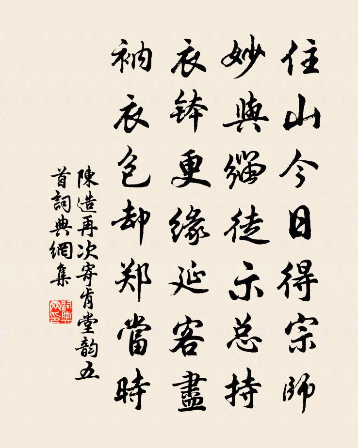 詩詞名句歷史字典書法欣賞書法字典國語詞典說文解字康熙字典古漢語字典標 題 作 者 詩 句 再次寄肯堂韻五首作者:陳造 朝代:宋代再次寄肯堂韻五首原文住山今日得宗師,妙與緇徒示總持。衣缽更緣延客盡,衲衣包卻鄭當時。詩詞問答問:再次寄肯堂韻五首的作者是誰?答:陳造問:再次寄肯堂韻五首寫於哪個朝代?答:宋代陳造再次寄肯堂韻五首書法欣賞再次寄肯堂韻五首書法作品詩詞推薦立春范成大〔宋代〕彩勝金旛夢裡,茶槽藥杵聲中。索莫兩年春事,小窗臥聽東風。聞雁釋文珦〔宋代〕山寒經月斷人行,孤雁噰噰忽一聲。身在異鄉兄弟盡,老夫那得易為情。張公洞蔡肇〔宋代〕髯仙御氣已超升,岩洞千秋冷不扃。若許殘鉛除白髮,敢辭長鑱斸青冥。壇場歲為民祈福,蒿艾時因鬼乞靈。他日送陳供奉恩敕放歸覲省錢起〔唐代〕得意今如此,清光不可攀。臣心堯日下,鄉思楚雲間。楊柳依歸棹,芙蓉棲舊山。采蘭兼衣錦,何似買臣還。讀陳公孟等伏闕書張埴〔宋代〕世故相驅入市藍,無情公用亦難堪。溫乎此豈神人肯,群也其如祖父慚。午夜天狐搖北斗,東風雨射滿江南。青山再和二首韓維〔宋代〕應為開門近太清,故攜歌管逐雙旌。酒逢歡後寧論量,語到真時不屬情。木葉吟風千籟作,菊叢含雨萬珠明。知公宮詞翁宏〔唐代〕又是春殘也,如何出翠帷。落花人獨立,微雨燕雙飛。寓目魂將斷,經年夢亦非。那堪向秋夕,蕭颯暮蟾輝。菊後張埴〔宋代〕重來風已落,寒葉集荒階。豎子斯人老,先生笑道乖。便尋梅寄隴,無救橘逾淮。明日過法去,窊尊倒入懷。和單普二首胡寅〔宋代〕棄捐孤陋與誰鄰,插棘誅茅漫隱淪。亂思詩書隨手揭,慰懷風月逐時新。慚無用舍行藏道,有愧東西南北人。久矣雪封寺二首李昴英〔宋代〕鑿通危石張文獻,勘破禪關盧祖師。奇事已堪夸北客,梅花先暖亦南枝。出守桐廬道中十絕范仲淹〔宋代〕天閽變化地,所好必真龍。軻意正迂闊,悠然輕萬鍾。渡錢塘高翥〔宋代〕小立晴江上,潮生落照邊。晚花低映水,春草暗 * 。燕子飛官驛,鷗群引客船。關情南浦別,相對獨依然。陰陽書語佚名〔唐代〕喬木先枯,眾子必孤。暇日投錢尚父羅隱〔唐代〕牛斗星邊女宿間,棟樑虛敞麗江關。望高漢相東西閣,名重淮王大小山。醴設斗傾金鑿落,馬歸爭撼玉連環。自慚秋夜陸游〔宋代〕老病龍鍾不入城,濁醪麤飯餞餘生。未霜村舍秋先冷,無月江天夜自明。出塞雖慚平賊手,下帷聊喜讀書聲。山童漁父吳鎮〔元代〕舴艋舟人無姓名。葫蘆提酒樂平生。香稻飯,滑蓴羹。掉月穿雲任性回襄陽周奉禮同年因題紙尾王禹偁〔宋代〕武關西畔路巉岩,兩月勞君寄兩緘。鏡里想添新白髮,篋中猶貯舊青衫。扶頭酒好無辭醉,縮項魚多且放饞。譬似屈原列傳司馬遷〔兩漢〕屈原者,名平,楚之同姓也。為楚懷王左徒。博聞強志,明於治亂,嫻於辭令。入則與王圖議國事,以出號令;出題竹張嵲〔宋代〕南州困歊暑,蔽映資篔簹。簾捲午陰靜,窗開夕氣涼。徑幽憐筍密,庭空喜乾長。相期待歲晏,持以凌繁霜。送王晙自羽林赴永昌令張說〔唐代〕將星移北洛,神雨避東京。為負剛腸譽,還追強項名。白雲向伊闕,黃葉散昆明。多謝弦歌宰,稀聞桴鼓聲。名句推薦王母歡闌瓊宴罷,仙人淚滿金盤側。文天祥《滿江紅·代王夫人作》 合意客來心不厭,知音人聽話偏長。馮夢龍《警世通言·卷一》 桃李風前多嫵媚,楊柳更溫柔。辛棄疾《武陵春·桃李風前多嫵媚》 湘江兩岸花木深,美人不見愁人心。盧仝《有所思》 玉不琢,不成器;人不學,不知道。戴聖《禮記·學記》 江南江北愁思,分付酒螺紅方岳《水調歌頭·平山堂用東坡韻》 行雲歸楚峽,飛夢到揚州。晁補之《臨江仙·綠暗汀洲三月暮》 無限枝頭好顏色,可憐開不為重陽。丘浚《詠菊》 上有流思人,懷舊望歸客。謝朓《送江水曹還遠館》 掛席幾千里,名山都未逢。孟浩然《晚泊潯陽望廬山》
