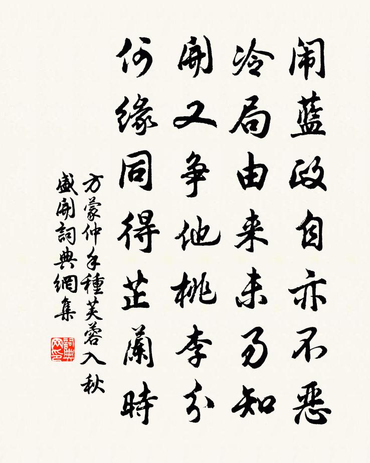 詩詞名句歷史字典書法欣賞書法字典國語詞典說文解字康熙字典古漢語字典標 題 作 者 詩 句 手種芙蓉入秋盛開作者:方蒙仲 朝代:宋代手種芙蓉入秋盛開原文鬧藍政自亦不惡,冷局由來未易知。開又爭他桃李分,何緣同得芷蘭時。詩詞問答問:手種芙蓉入秋盛開的作者是誰?答:方蒙仲問:手種芙蓉入秋盛開寫於哪個朝代?答:宋代方蒙仲手種芙蓉入秋盛開書法欣賞手種芙蓉入秋盛開書法作品詩詞推薦有懷十首劉子翬〔宋代〕翁侯滿腹是精神,三謁金門計未成。卻跨蹇驢游霅上,秋風雄劍匣中鳴。句晏殊〔宋代〕玉女雕瓊萼,仙禽借菊衣。獨行,過柳橋而歸陸游〔宋代〕忽覺意稍佳,呼童扶下堂。寒雲覆江乾,慘慘雪欲作。籬根犬迎吠,碓下雞俯啄。徐行過傍舍,醉笑盛酬酢。照閣秦觀〔宋代〕彌猴鏡里三身現,龍女珠中萬象開。未若此軒人散後,水光清泛月華來。送省空上人歸南嶽鄭巢〔唐代〕又歸衡岳寺,舊院樹冥冥。坐石縫寒衲,尋龕補壞經。嶠雲籠曙磬,潭草落秋萍。誰伴高窗宿,禪衣掛桂馨。偈頌一百零二首釋紹曇〔宋代〕久病腳力衰,嬰兒學移步。喪盡目前機,辯得塵中主。鼻直眼機,皮穿骨露。驢不成兮馬不成,且無描摸處。賺鐐酬皇甫十六侍御曾見寄(此公時貶舒州司馬)李嘉祐〔唐代〕自顧衰容累玉除,忽承優詔赴銅魚。江頭鳥避青旄節,城裡人迎露網車。長沙地近悲才子,古郡山多憶舊廬。更枉減字木蘭花沈瀛〔宋代〕氣開氣止。引得丹元童子喜。耳里聞風。知是泥丸一竅通。危樓宴酒。不覺黃芽生蕊壽。牙長如何。只覺金花罩體朱喬年風傅茂見訪劉子翬〔宋代〕眼食咍台時對床。山林情話政可樂,手談逼剝屢爭局,只恐雲路雙鵰翔。醉桃源/阮郎歸王庭珪〔宋代〕朱門映柳畫簾垂。門前聞馬嘶。主人新著綠袍歸。天恩下玉墀。憑翠袖,拈花枝。勸教人醉時。請君聽唱碧雲詞。晚出舒岳祥〔宋代〕數樹遠煙藏棗栗,半村疏雨下牛羊。詩人過眼助成句,吟罷不知歸路長。偈頌一百零一首釋慧性〔宋代〕大包無外,細入無間。內外絕瑕疵,古今無背面。森羅萬象影中藏,四聖六凡光裹現。分明常在諸人前,未審諸人次韻應誠則次楊君貴來求乃父長卿墓銘陳著〔宋代〕眼中宿草感懷長,聽徹啼鵑送洛陽。萍世生涯隨日異,花崖門徑尚風光。心知父志能全我,文得家傳早擅場。天也宋復古畫瀟湘晚景圖三首蘇軾〔宋代〕西征憶南國,堂上畫瀟湘。照眼雲山出,浮空野水長。舊遊心自省,信手筆都忘。會有衡陽客,來看意渺茫。落落題東西二梁山三首楊萬里〔宋代〕莫恨當初畫得偏,卻因偏處反成研。喜來舒展愁來蹙,各樣嬌饒更可憐。春夢王鎡〔宋代〕東風敲碎玉闌乾,蝴蝶紛飛夢欲殘。翠被壓床銀燭暗,夜深誰問海棠寒。容照岩楊時〔宋代〕清時投跡在嵌崟,一穴晴光破晚陰。刺草未容忘魏闕,故應長有子牟心。踏雲行 贈駱進道先為鐵匠馬鈺〔元代〕跳出紅爐,身無燒烙。水雲遊歷非流落。晨昏調弄自然琴。清清滋味勝酥酪。逗引靈童,常交歡樂。八渠流水成瓔和王安撫六言十首項安世〔宋代〕玄思上窺姚姒,後塵肯逐梁齊。誰言今世第一,我自古人與稽。題東皋曾幾〔宋代〕市聲俱不聞,野色良可喜。聽公北宅住,還我東皋子。名句推薦謗書盈篋不復辯,脫身來看江南山。謝逸《送董元達》 厚者不毀人以自益也,仁者不危人以要名。劉向《戰國策·燕三·燕王喜使栗腹以百金為趙孝成王壽》 酒賤常愁客少,月明多被雲妨。蘇軾《西江月·世事一場大夢》 張而不弛,文武弗能也;弛而不張,文武弗為也。一張一弛,文武之道也。戴聖《禮記·雜記下》 厚祿故人書斷絕,恆飢稚子色淒涼。杜甫《狂夫》 終罷斯結廬,慕陶直可庶。韋應物《東郊》 涉江玩秋水,愛此紅蕖鮮。李白《折荷有贈》 漸近燕山。回首鄉關歸路難。蔣氏女《減字木蘭花·題雄州驛》 其持之有故,其言之成理。荀子《荀子·非十二子》 微微風簇浪,散作滿河星。查慎行《舟夜書所見》