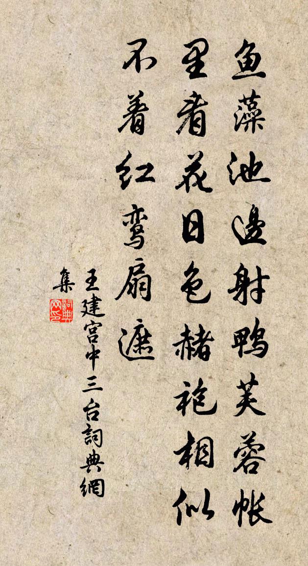魚藻池邊射鴨,芙蓉帳里看花。日色赭袍相似,不著紅鸞扇遮。