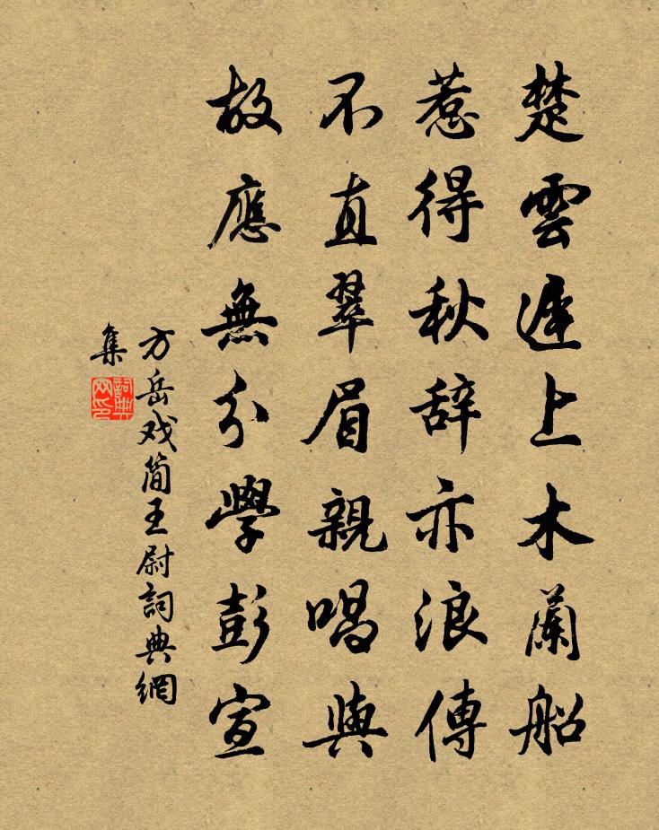 詩詞名句歷史字典書法欣賞書法字典國語詞典說文解字康熙字典古漢語字典標 題 作 者 詩 句 戲簡王尉作者:方岳 朝代:宋代戲簡王尉原文楚雲遲上木蘭船,惹得秋辭亦浪傳。不直翠眉親唱與,故應無分學彭宣。詩詞問答問:戲簡王尉的作者是誰?答:方岳問:戲簡王尉寫於哪個朝代?答:宋代方岳戲簡王尉書法欣賞戲簡王尉書法作品詩詞推薦尋陸鴻漸不遇僧皎然〔唐代〕移家雖帶郭,野逕入桑麻。近種籬邊菊,秋來未著花。扣門無犬吠,欲去問西家。報到山中去,歸來每日斜。入忠軒書院詠蘭丘葵〔宋代〕階庭暫托根,只與綠苔親。自少枝條分,不爭花卉春。輕寒青瘦硬,出檻紫鮮新。風雨時吹洗,含芬待主人。過孟浩然舊居朱慶餘〔唐代〕命合終山水,才非不稱時。冢邊空有樹,身後獨無兒。散盡詩篇本,長存道德碑。平生誰見重,應只是王維。劍門杜甫〔唐代〕唯天有設險,劍門天下壯。連山抱西南,石角皆北向。兩崖崇墉倚,刻畫城郭狀。一夫怒臨關,百萬未可傍。珠玉聞張逸人訃二首劉應時〔宋代〕梅子黃時麥已愀,野塘高下水交流。小窗聲切哀鴻雁,添我懷人一段愁。樓樞密輓詞二首蘇籀〔宋代〕決科騰踏無前勇,比牒聯飛第一流。召直毫端準謨誥,甄評皮里韞陽秋。槐班鼎輔膺柬,玉階封章究遠猷。楚挽淒夜泊荊溪陳羽〔唐代〕小雪已晴蘆葉暗,長波乍急鶴聲嘶。孤舟一夜宿流水,眼看山頭月落溪。賀新郎 送陳真州子華劉克莊〔宋代〕北望神州路。試平章、這場公事,怎生分付。記得太行山百萬,曾入宗爺駕馭。今把作、握蛇騎虎。君去京東豪傑淇上別業高適〔唐代〕依依西山下,別業桑林邊。庭鴨喜多雨,鄰雞知暮天。野人種秋菜,古老開原田。且向世情遠,吾今聊自然。上趙漕華岳〔宋代〕太山之巔有喬松,凜凜千丈摩蒼空。風雲有會直相際,轟雷制電蟠蛟龍。盤根錯節真天種,卿月郎星伴辰拱。高風楊岐會和尚贊釋智遇〔宋代〕灰頭士面,弄假像真。三腳肪子,獨角麒麟。患眼張籍〔唐代〕三年患眼今年校,免與風光便隔生。昨日韓家後園裡,看花猶似未分明。田舍即事十首劉克莊〔宋代〕此日田舍漢,當年省禁臣。絲綸隔世事,蓑笠暮年身。龍棄真初祖,羊求在近鄰。南朝足名士,吾獨愛吾真。禪定指迷歌張伯端〔宋代〕如來禪性如水,體靜風波自止。興居湛湛常清,不獨坐時方是。今人靜坐取證,不道全在見性。性於見里若明,見閒居諮〔宋代〕兀兀浮生水上萍,百年那得眼長青。醉中但愛杯呼月,鏡里驚看髩易星。瓶膽插花時過蝶,石拳栽草也留螢。瑤音紹興以後時享二十五首真宗〔宋代〕[黃鐘為宮]奉先嚴祀,率禮大經。時思致享,肅肅芳香。竭誠備物,樂奏和聲。真騷來止,熙事克成。熙台王洋〔宋代〕不將台榭壓城闉,爭奈長淮四面春。聞道公餘一吟嘯,滿天風月助精神。皇太后合春帖子周南〔宋代〕濯龍宮館漏聲徐,閒把黃庭味道腴。侍女不持珠玉玩,爭傳文母浣衣圖。秋日憫旱題香山庄舍王之道〔宋代〕千里驕陽稼穡枯,人心窮極但天呼。須煩岩壑為霖手,下澤蒼生慰海隅。春日書懷華岳〔宋代〕紫褪紅銷到海棠,幾多遊俠為渠忙。秋聲落盞鶯調曲,春色惱人花斗香。羝乳雖能屈蘇武,牛衣終不臥王章。男兒名句推薦問別來、解相思否。吳文英《惜秋華·七夕前一日送人歸鹽官》 真積力久則入。荀子《荀子·勸學》 草長鶯飛二月天,拂堤楊柳醉春煙。高鼎《村居》 金剛則折,革剛則裂。劉向《說苑·敬慎》 翠葉藏鶯,朱簾隔燕。晏殊《踏莎行·小徑紅稀》 醉中渾不記,歸路月黃昏辛棄疾《臨江仙·探梅》 似花還似非花,也無人惜從教墜。蘇軾《水龍吟·次韻章質夫楊花詞》 求則得之,舍則失之,是求有益於得也,求在我者也。孟子《孟子·盡心章句上·第三節》 記得短亭歸馬,暮衙蜂鬧。吳文英《天香·蠟梅》 天清一雁遠,海闊孤帆遲。李白《送張舍人之江東》
