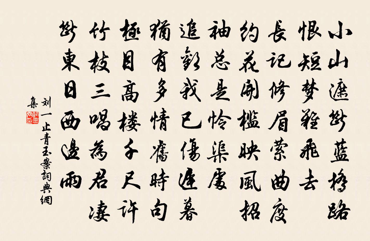 詩詞名句歷史字典書法欣賞書法字典國語詞典說文解字康熙字典古漢語字典標 題 作 者 詩 句 青玉案作者:劉一止 朝代:宋代青玉案原文小山遮斷藍橋路。恨短夢、難飛去。長記修眉縈曲度。約花開檻,映風招袖,總是憐渠處。追歡我已傷遲暮。猶有多情舊時句。極目高樓千尺許。竹枝三唱,為君淒斷,東日西邊雨。詩詞問答問:青玉案的作者是誰?答:劉一止問:青玉案寫於哪個朝代?答:宋代問:青玉案是什麼體裁?答:詞劉一止青玉案書法欣賞青玉案書法作品詩詞推薦憂旱李石〔宋代〕清和氣始交,候火未可熾。雨師偶失職,焰焰使人畏。東湖冷如水,舍此誰止沸。猊吻呀不吐,濁泥點枯翠。農田贈應天寺昭淨法華杜衍〔宋代〕出俗皆言為息機,性靈淨僻似師稀。前山月落夜吟罷,深院菊荒秋講歸。谿霧鎖窗燈焰短,雪風敲竹磬聲微。會期滿庭芳(伯父仲球生日)王之道〔宋代〕紫角初繁,青裳正好,充閭清露飄香。懸弧何早,烏轡上扶桑。試問椿齡幾許,逾萬計、才滿三章。佳辰樂,林塘送陳養晦赴松陽校官戴表元〔宋代〕書生不用世,什九隱儒官。抱璞豈不佳,居貧良獨難。陳子剡中秀,盛年早彈冠。嘗搴丹丘雲,亦窺滄海瀾。仙真哀江南詩五疊秋興韻八章姚燮〔清代〕颶風卷纛七星斜,白髮元戎誤歲華。隘岸射潮無勁弩,高天貫月有枯槎。募軍可按馮唐籍,解陣空吹越石笳。最惜從郭中隱覓酒併呈張君量楊冠卿〔宋代〕百斛龍文鼎可扛,揮毫曾寄碧油幢。酒兵若有三千崎,肯向詩壇築受降。秋湖上晚景四首宋庠〔宋代〕浦漵春初滿,風煙晚不銷。泛杯橫截竇,通舫小開橋。蓮葉抽萍面,藤梢落樹腰。此中無駭浪,容易打雙橈。讀韓信馬援傳一首劉克莊〔宋代〕伏波自托真主,淮陰願為假王。病厭鳶飛鼓躁,晚悲鳥盡弓藏。登閣釋清晦〔宋代〕小閣稱幽隱,登臨眺晚晴。暮雲埋落日,寒樹夾孤城。鳥道穿山色,人煙隔水聲。自憐疏散意,多不計浮名。言法華贊釋宗杲〔宋代〕旋陀羅尼三昧,語默元無罣礙。攬衣著屐走街,剛被時人笑怪。問伊住止何處,向道我儂弗會。進前擬議思量,咄賜崔日知往潞州李隆基〔唐代〕潞國開新府,壺關寵舊林。妙旌循吏德,持悅庶氓心。禮樂中朝貴,神明列郡欽。揚風非贈扇,易俗是張琴。藩鎮偈頌七十二首釋祖欽〔宋代〕一杯晴雪早茶香,午睡方醒春晝長。拶著通身俱是眼,半窗疏影轉斜陽。書樓考甫梅花百詠因徐直孺寄考甫方岳〔宋代〕以詩鳴者累百輩,誰與梅花可相配。只傳冰影月香詩,直到如今美無對。疏籬把住橫斜枝,了不肯受春風知。自非次韻徐廷獻機宜送自釀石室酒范成大〔宋代〕元亮折腰嘻已久,故山應有欲蕪田。因君辦作送酒客,憶我北窗清書眠。滿江紅佚名〔宋代〕學富胸襟,才名擅、菊潭第一。都緣是、文星在命,光聯南極。已向九霄橫鶚薦,詞埸獨步花生筆。況而今、好事薛道祖書簡重本三帖贊岳珂〔宋代〕帖之疑也,非取而並不足以為證,非視其印不足以信。既信矣,又何加焉,曰一以訂吾友之言,一以貽吾家之傳。香港感懷十首黃遵憲〔清代〕遣使初求地,高皇全盛時。六州誰鑄錯?一慟失燕脂。鑿空蠶叢辟,噓雲蜃氣奇。山頭風獵獵,猶自誤龍旗。和杜安行南湖泛筏詩郭印〔宋代〕翩翩小筏穩如船,十畝平湖碧浸天。不待乞身追賀監,君今已是吏中仙。題杭州靈隱寺張祜〔唐代〕峰巒開一掌,朱檻幾環延。佛地花分界,僧房竹引泉。五更樓下月,十里郭中煙。後塔聳亭後,前山橫閣前。溪沙偶題二首劉言史〔唐代〕金榜榮名俱失盡,病身為庶更投魑。春娥慢笑無愁色,別向人家舞柘枝。得罪除名謫海頭,驚心無暇與身愁。中使名句推薦更待菊黃家醞熟,共君一醉一陶然。白居易《與夢得沽酒閒飲且約後期》 兩鬢可憐青,只為相思老。晏幾道《生查子·關山魂夢長》 寂寞深閨,柔腸一寸愁千縷。李清照《點絳唇·閨思》 絮影苹香,春在無人處周晉《點絳唇·訪牟存叟南漪釣隱》 送君如昨日,檐前露已團。江淹《古離別》 口之宣言也,善敗於是乎興左丘明《國語·周語·邵公諫厲王弭謗》 石溪久住思端午,館驛樓前看發機。盧肇《競渡詩 / 及第後江寧觀競渡寄袁州剌史成應元》 中軍置酒飲歸客,胡琴琵琶與羌笛。岑參《白雪歌送武判官歸京》 山泉散漫繞階流,萬樹桃花映小樓。元稹《離思五首》 少年易老學難成,一寸光陰不可輕。朱熹《偶成》