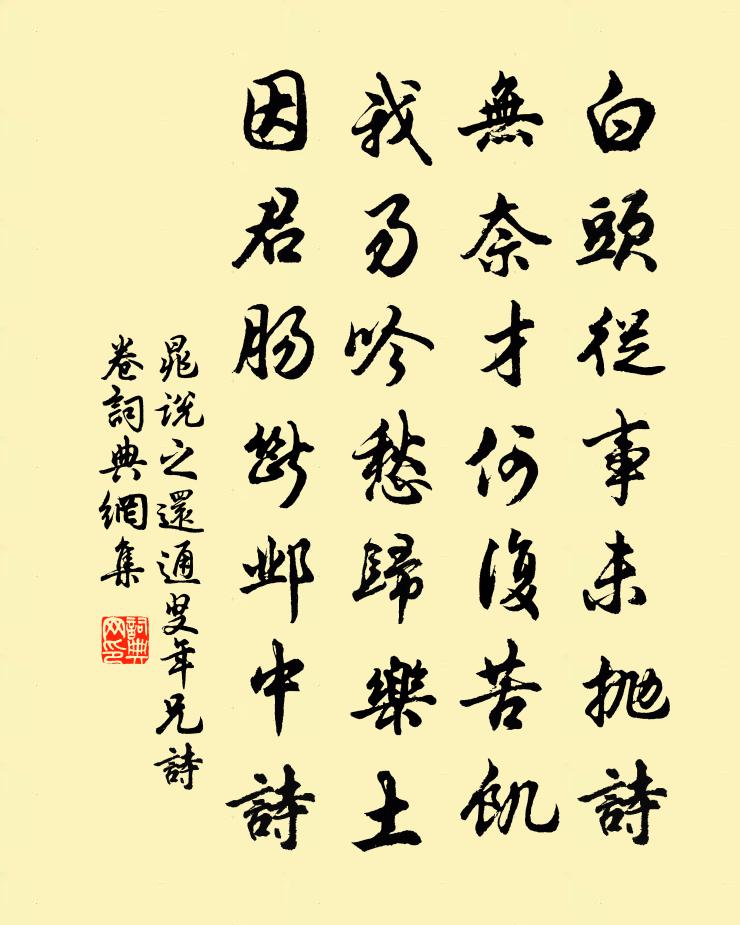 詩詞名句歷史字典書法欣賞書法字典國語詞典說文解字康熙字典古漢語字典標 題 作 者 詩 句 還通叟年兄詩卷作者:晁說之 朝代:宋代還通叟年兄詩卷原文白頭從事未拋詩,無奈才何復苦飢。我易吟愁歸樂土,因君腸斷鄴中詩。詩詞問答問:還通叟年兄詩卷的作者是誰?答:晁說之問:還通叟年兄詩卷寫於哪個朝代?答:宋代晁說之還通叟年兄詩卷書法欣賞還通叟年兄詩卷書法作品詩詞推薦知音者誠希韓愈〔唐代〕知音者誠希,念子不能別。行行天未曉,攜酒踏明月。春雨陳與義〔宋代〕花盡春猶冷,羈心只自驚。孤鶯啼永晝,細雨濕高城。擾擾成何事,悠悠送此生。蛛絲閃夕霽,隨處有詩情。以人生五馬貴莫受侵為韻送胡獻叔守邵陽方岳〔宋代〕吾道一而已,惟誠一之至。毋或參以三,亦勿貳以二。送才上人還雪竇寄達觀禪師梅堯臣〔宋代〕春雪滿蓑笠,海邊先燕歸。千林新改葉,百衲舊來衣。溪水從何至,山雲自解飛。報言岩下客,齋缽筍應肥。柳徐夤〔唐代〕漠漠金條引線微,年年先翠報春歸。解籠飛靄延芳景,不逐亂花飄夕暉。啼鳥噪蟬堪悵望,舞煙搖水自因依。五株自詠白居易〔唐代〕形容瘦薄詩情苦,豈是人間有相人?只合一生眠白屋,何因三度擁朱輪?金章未佩雖非貴,銀榼常攜亦不貧。唯是已亥雜詩 133龔自珍〔清代〕過江籍甚顏光祿,又作山中老樹看。賴是元龍樓百尺,雄談夜半鬥牛寒。和寄西山趙希逢〔宋代〕殘胡妄欲肆穿窬,憤激英雄起草廬。廣也數奇窮亦命,括之一敗罪非書。夢魂北闕常傾霍,餓死西山未分蔬。奮志跨馬過練墟喜晴范成大〔宋代〕稻穗初乾怕雨時,晚來蒸暖欲霏微。西風若肯吹雲盡,不惜飄飄側帽歸。飲桂香茶簡翁及甫李洪〔宋代〕午睡初醒緩注湯,一甌清露沃詩腸。疑君昔日探蟾窟,猶帶天邊桂子香。甥館五首許月卿〔宋代〕國士今為鬼,有棺空斷腸。綠衣長至節,丹旐短松罔。父乃哭泣其子,天乎殲此良。傷情皋某復,挽些謾巫陽。恭和聞喜宴御製魏了翁〔宋代〕祖宗德澤被生民,列服山川各效神。幾見高岡鳴鳳集,又盾層浪化魚新。升歌幸聽三間雅,佩印行紆五兩綸。聖世那日獲詣芳園竊見新栽叢竹蕭然可愛不能無詩李至〔宋代〕疏籬簇簇湘江畔,翠美森森淇水邊。爭似移歸深院裡,真同畫向後堂前。粉筠就惜裁龍笛,霜鍤還驚斷馬鞭。不是章獻明肅皇太后恭謝太廟佚名〔宋代〕苾芬既薦,溥碩鹹陳。禮國樂舉,先後有倫。以奉七室,齊潔惟寅。皇靈斯享,福祥荐臻。歸鄉二首姜特立〔宋代〕憶昔東坡老,曾吟陌上花。我今歸故里,卉木正光華。挽曹監丞二首程珌〔宋代〕學渺千江水,才雄百尺樓。鳧飛思葉縣,燕寐憶蘇州。有感珠還浦,無苛虎渡洲。浦江天閣處,缺月正如鉤。丙戌除夕次韻仁近二首方回〔宋代〕歲窮猶此客,不早見幾微。豈易賒鄰醞,何慚典故衣。余寒當有幾,小忍未為非。野燒回青潤,春山飽蕨薇。挽李仲輔三首張元乾〔宋代〕人生真寄爾,天問竟悠哉。三載重凶釁,一門皆異材。尚疑書未報,遽有訃先來。淚盡余青血,秋風萬壑哀。送四明方伯起陳傅良〔宋代〕世事關分合,人情看短長。君應愁富貴,人已畏文章。竚立親雙鬢,追隨客累觴。未知歸定否,吾亦愛吾鄉。三至堂黃庭堅〔宋代〕楊公父子孫,俱出文昌宮。朱轓與別駕,同最治民功。當年竹馬兒,市上白鬢翁。相語府門前,郎君有家風。築室名句推薦幸非一人,專固害。來俊臣《羅織經·治下卷第三》 莫笑他人老,終須還到老。佚名《增廣賢文·上集》 漁舟逐水愛山春,兩岸桃花夾古津。王維《桃源行》 垓下美人泣楚歌,定陶美人泣楚舞,真龍亦鼠虎亦鼠。王象春《書項王廟壁》 民惟邦本,本固邦寧。佚名《尚書·夏書·五子之歌》 想邊鴻孤唳,砌蛩私語。王沂孫《掃花游·秋聲》 德不孤,必有鄰。孔子弟子《論語·里仁篇》 人散市聲收,漸入愁時節。劉克莊《生查子·元夕戲陳敬叟》 竹憐新雨後,山愛夕陽時。錢起《谷口書齋寄楊補闕》 當場不論,過後枉然。佚名《增廣賢文·下集》