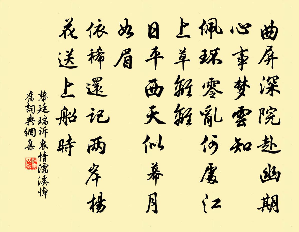 - 只向從前悔薄情,憑仗丹青重省識,盈盈,一片傷心畫不成。納蘭性德《南鄉子·為亡婦題照》