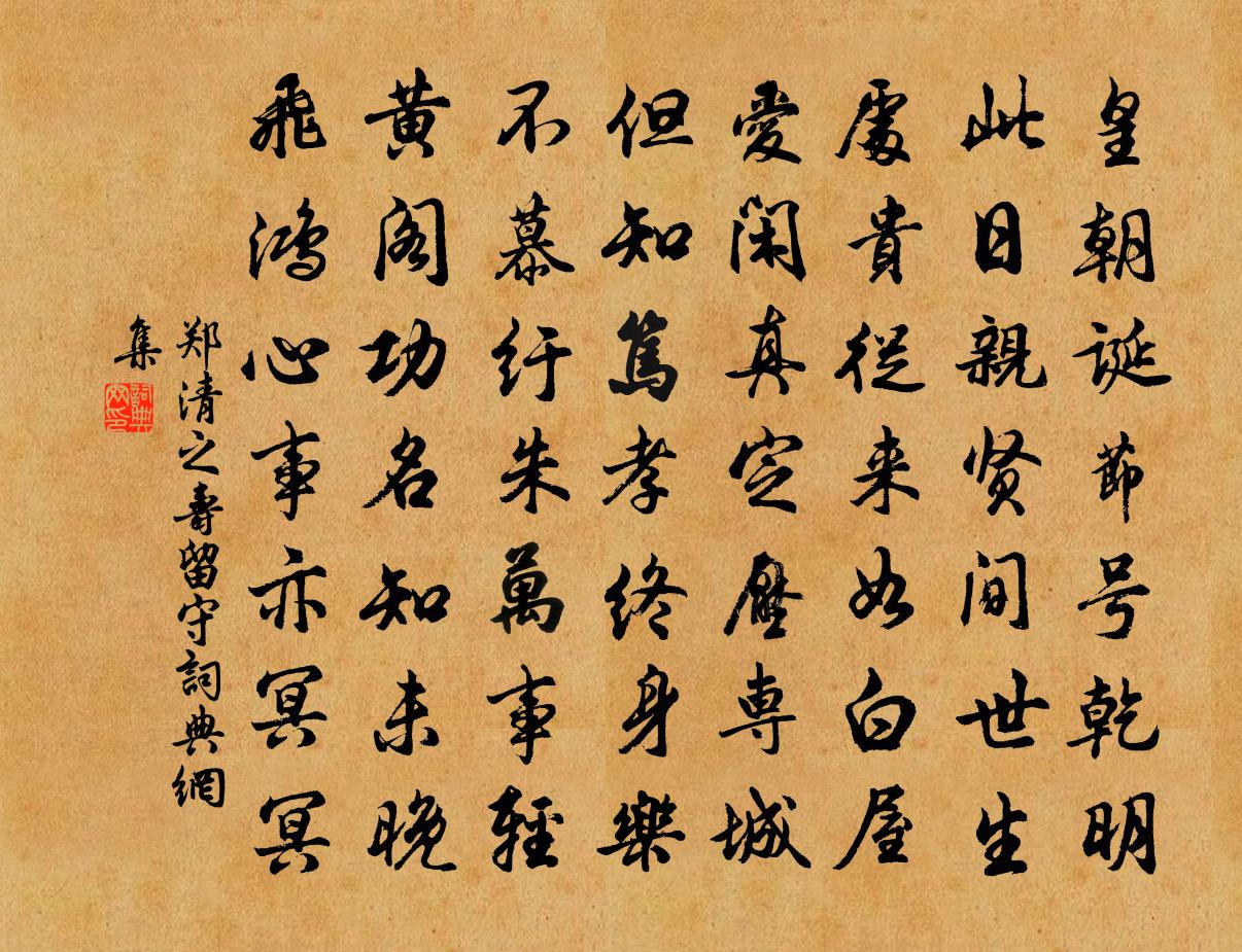 詩詞名句歷史字典書法欣賞書法字典國語詞典說文解字康熙字典古漢語字典標 題 作 者 詩 句 壽留守作者:鄭清之 朝代:宋代壽留守原文皇朝誕節號乾明,此日親賢間世生。處貴從來如白屋,愛閒真定壓專城。但知篤孝終身樂,不慕紆朱萬事輕。黃閣功名知未晚,飛鴻心事亦冥冥。詩詞問答問:壽留守的作者是誰?答:鄭清之問:壽留守寫於哪個朝代?答:宋代鄭清之壽留守書法欣賞壽留守書法作品詩詞推薦同吳王送杜秀芝赴舉入京李白〔唐代〕秀才何翩翩,王許回也賢。暫別廬江守,將游京兆天。秋山宜落日,秀水出寒煙。欲折一枝桂,還來雁沼前。林壑閒步二絕趙汝績〔宋代〕懶不看書不賦詩,樹陰濃處坐移時。世間此等清閒福,問著漁樵卻不知。水調歌頭盧炳〔宋代〕華亭新偉觀,勝地得高雄。憑欄徙倚要眇,萬里景無窮。好是江流縈繞,那更雲天舒闊,疊嶂倚晴空。眼界無盡藏和汝南秀才游淨土見寄李虛己〔宋代〕長松系馬駐吟鞭,水殿沈檀一樹煙。苔破閒階幽鳥立,草芳深院老僧眠。桃花欲放條風后,茶蕊新供穀雨前。衰會酹江月(瓜洲會趙南仲端明)吳潛〔宋代〕紅塵飛騎,報元戎小隊,踏青南陌。雪浪堆邊呼小渡,吳楚半江分坼。歲月驚心,風埃迷目,相對頭俱白。楊花撩時邁佚名〔先秦〕時邁其邦,昊天其子之,實右序有周。薄言震之,莫不震疊。懷柔百神,及河喬嶽,允王維後。明昭有周,式序在玉樓春·桃溪不作從容住周邦彥〔宋代〕桃溪不作從容住。秋藕絕來無續處。當時相候赤欄橋,今日獨尋黃葉路。煙中列岫青無數。雁背夕陽紅欲暮。人如送吳司令知金州王炎〔宋代〕曩時異姓新安王,中興功烈書旗常。邊兵不敢窺蜀塞,至今恃此為金湯。我生久恨在王后,幸識王孫人物秀。立朝丁采傑輓詩劉克莊〔宋代〕文字蜚聲早,功名入手遲。晚知書誤我,時以酒澆之。曠野靈均些,新墳貞曜碑。兩翁不在子,其必在孫枝。金錢花盧肇〔唐代〕輪郭休夸四字書,紅窠寫出對庭除。時時買得佳人笑,本色金錢卻不如。長安春暮潘鹹〔唐代〕客在關西春暮夜,還同江外已清明。三更獨立看花月,惟欠子規啼一聲。題稅軒新築送青亭四首張榘〔宋代〕花木中間著小亭,檐虛不礙兩峰青。數聲啼鳥鬧中過,不似家山子細聽。再用前韻張栻〔宋代〕元化首萬類,聖學極幾深。有如亞聖賢,尚謹殆與淫。淺見僅一斑,歡喜不自禁。豈知天地全,於穆千聖心。嗟哉依韻和酬邵不疑見答梅堯臣〔宋代〕君才若巨賈,既富仍深藏。遂兼碌碌貧,共處安可量。滔滔大澤陂,渺漫入幽荒。徒欲窮端倪,憑高何相望。一日後溪輓詩二首洪咨夔〔宋代〕玉佩華裾翠,霜髯睟頰紅。四朝天下老,百世後溪翁。綠竹猗重較,黃裳美在中。平生涵養力,於道有全功。宣武軍鎮作王彥威〔唐代〕天兵十萬勇如貔,正是酬恩報國時。汴水波瀾喧鼓角,隋堤楊柳拂旌旗。前驅紅旆關西將,坐間青娥趙國姬。寄語和之美舟行雜詩八首水鴨司馬光〔宋代〕褵縰出短蒲,毰毸浴清水。物忌太鮮明,何妨染泥滓。和張竹處韻錢陳匝峰之濂泉趙必象〔宋代〕不愁官冷客無氈,力欲回瀾障百川。無己晚年工覓句,元龍豪氣諱求田。焚章經解諸侯印,買酒時分司業錢。庭草次韻楊宰公田道士陳造〔宋代〕人有騫裳去,時閒野渡舟。知君問雕瘵,隨處訪深幽。歲事方關念,村醪不破憂。貰租仍已責,或可繼前修。贈聞人子進曹勛〔宋代〕丹地清江若有期,卜居仍俯小漣漪。頗憐松竹無多地,只頓琴書已近籬。久雨不妨田要潤,暫涼真與病相宜。何當名句推薦箭徑酸風射眼,膩水染花腥。吳文英《八聲甘州·靈岩陪庾幕諸公游》 一年春又盡,倚杖對斜暉。左緯《春晚》 寧我負人,毋人負我。陳壽《三國志·魏書·武帝紀》 綠鬢能供多少恨,未肯無情比斷弦晏幾道《破陣子·柳下笙歌庭院》 西風亂葉溪橋樹。秋在黃花羞澀處。張榘《青玉案·被檄出郊題陳氏山居》 青山一道同雲雨,明月何曾是兩鄉。王昌齡《送柴侍御》 涼月如眉掛柳灣,越中山色鏡中看。戴叔倫《蘭溪棹歌》 舉頭紅日近,回首白雲低。寇準《詠華山》 君子安禮樂利,謹慎而無斗怒,是以百舉而不過也。荀子《荀子·臣道》 兒童相見不相識,笑問客從何處來。賀知章《回鄉偶書二首·其一》