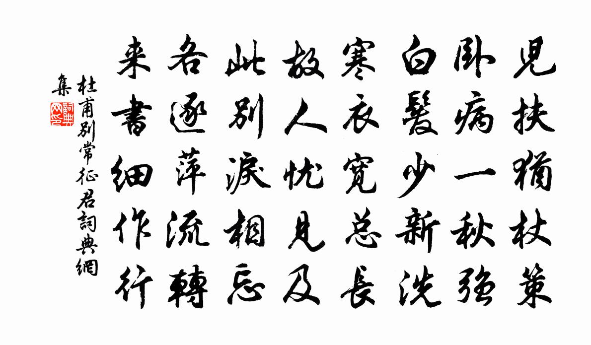 兒扶猶杖策,臥病一秋強。白髮少新洗,寒衣寬總長。