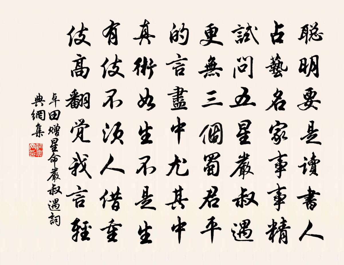 詩詞名句歷史字典書法欣賞書法字典國語詞典說文解字康熙字典古漢語字典標 題 作 者 詩 句 贈星命嚴叔遇作者:卓田 朝代:宋代贈星命嚴叔遇原文聰明要是讀書人,占藝名家事事精。試問五星嚴叔遇,更無三個蜀君平。的言盡中尤其中,真術如生不是生。有伎不須人借重,伎高翻覺我言輕。詩詞問答問:贈星命嚴叔遇的作者是誰?答:卓田問:贈星命嚴叔遇寫於哪個朝代?答:宋代卓田贈星命嚴叔遇書法欣賞贈星命嚴叔遇書法作品詩詞推薦和孫廷平坦嵩山十首幽谷泉韓維〔宋代〕鳴泉瀉幽谷,谷響聲又激。上蔭百丈松,下有無數石。會脫炎天屨,坐浸兩腳赤。絕句九首張耒〔宋代〕老去不禁茶力悍,兩甌破盡五更眠。月團三百真魔物,欲乞當壚當酒錢。大江東去王寂〔元代〕芳姿蕙態,笑人間、脂粉尋常紅白。大抵風流天也惜,賦與梅魂蘭魄。元相名姝,謝家尤物,縹緲真仙格。朝來酒送客至西湖李復〔宋代〕湖亭獨往客初歸,春去春來盡不知。新竹出梢才放籜,斷蒲經雨別生枝。山寒藏雪生雲濕,風送飛鷗過水遲。卻笑和丘師悅二首白菊卷剛中〔宋代〕先放恐輪梅,籬邊趁早開。素心甘冷澹,秀色肯塵埃。眼老書慵看,官閒吏不催。煩君助幽勝,小鍤為移來。溪村滕塛〔宋代〕獨步溪村午,時時一二家。綠波浮錦鴨,翠草點黃花。釣石臨溪古,連山繞徑斜。幽人吟未極,西日散平沙。寄雪竇千峰琬西堂釋如珙〔宋代〕千丈崖根芋火香,天上日輪正卓午。東土西乾無祖師,白頭老僧七十五。記夢回文二首蘇軾〔宋代〕酡顏玉碗捧纖纖,亂點余花唾碧衫。歌咽水雲凝靜院,夢驚松雪落空岩。仙學堂李仲光〔宋代〕天人異所稟,事物皆生知。強名仙學堂,此語將誰欺。我欲借隙地,虛檐敞茅茨。琅琅誦玉章,勉力探希夷。醉落魄/一斛珠石孝友〔宋代〕友鶯夢蝶。尋花問柳深相結。教春去後群芳歇。零落朋游,辜負好時節。眼邊愁緒多於發。迢迢一水通吳越。舊歡高郵野望二首楊萬里〔宋代〕江南十里九青山,江北無山只野田。更遣野田無遠樹,郭熙盡巧若為傳。種柏寄蘇子美韓維〔宋代〕人皆種花我種柏,為此勁性寒不易。三春雖憐少姿媚,歲暮方看靄顏色。南堂之南可數到,列樹六本翠磔磔。安得壬辰天中節,赴平江錫燕,因懷去年以侍臣攝范成大〔宋代〕去歲排場德壽宮,薰風披拂酒鱗紅。小臣供奉金龍醆,親到虛皇玉座東。天中繖動玉輿來,萬歲三聲徹九街。想見送王晉卿赴廷試李呂〔宋代〕怪底先生思湧泉,少年筆勢已翩翩。馬嘶長道空驤首,龍擘滄波竟上天。分付風雲身九萬,更看禮樂字三千。期君寄四侄旊二首王安石〔宋代〕數篇持往助歡咍,想見封題手自開。春草已生無可句,阿連空復夢中來。慶壽寺 其二王冕〔元代〕書記去已久,令人動慨慷。但能成事業,不解制綱常。花落重城晚,雲沉大野荒。盧溝三尺土,春雨樹蒼蒼。漢宮春沈蔚〔宋代〕別酒初醒。似一番夢覺,屈指堪驚。猶疑送消寄息,遇著人聽。當初喚作,據眼前、略略看承。及去了,從頭想伊獨坐徐集孫〔宋代〕老屋蕭條半欲斜。繩床獨坐看蜂衙。經年官況渾如客,計日安書已到家。策策冷風刪樹葉,絲絲暮雨織檐花。夢魂詠史下司馬宣王陳普〔宋代〕偷殺淮南炎殺攸,天將造化馬為牛。古來逆種並奸息,不問賢愚統是愁。皇后閣端午帖子詞宋庠〔宋代〕楚筒結棕金盤麗,班{上竹下捷右半}裁紈玉字輕。琥枕透蚊光不滅,瑤箱乳燕羽初成。名句推薦人不通今古,馬牛如襟裾。佚名《增廣賢文·上集》 酒意詩情誰與共?淚融殘粉花鈿重。李清照《蝶戀花·暖雨晴風初破凍》 智欲圓而行欲方,膽欲大而心欲小。程登吉《幼學瓊林·卷三·人事》 舉頭紅日近,回首白雲低。寇準《詠華山》 人生不滿百,常懷千歲憂。佚名《增廣賢文·上集》 回看射鵰處,千里暮雲平。王維《觀獵》 發短愁催白,顏衰酒借紅。陳師道《除夜對酒贈少章》 向露冷風清,無人處,耿耿寒漏咽。周邦彥《浪淘沙慢·曉陰重》 雪紛紛,掩重門,不由人不斷魂,瘦損江梅韻。關漢卿《大德歌·冬》 明月樓高休獨倚。酒入愁腸,化作相思淚。范仲淹《蘇幕遮·懷舊》
