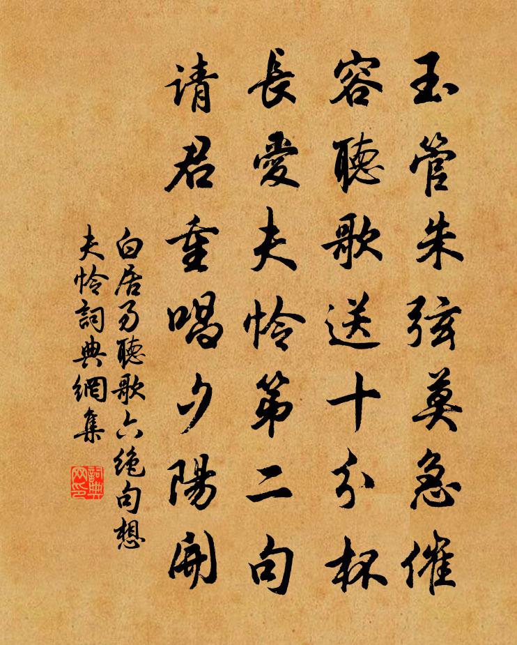玉管朱弦莫急催,容聽歌送十分杯。長愛夫憐第二句,請君重唱夕陽開。