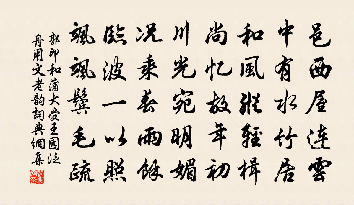 詩詞名句歷史字典書法欣賞書法字典國語詞典說文解字康熙字典古漢語字典標 題 作 者 詩 句 和蒲大受王園泛舟用文老韻作者:郭印 朝代:宋代和蒲大受王園泛舟用文老韻原文邑西屋連雲,中有水竹居。和風縱輕楫,尚憶故年初。川光宛明媚,況乘春雨餘。臨波一以照,颯颯鬢毛疏。詩詞問答問:和蒲大受王園泛舟用文老韻的作者是誰?答:郭印問:和蒲大受王園泛舟用文老韻寫於哪個朝代?答:宋代郭印和蒲大受王園泛舟用文老韻書法欣賞和蒲大受王園泛舟用文老韻書法作品詩詞推薦喜歡吟邵雍〔宋代〕平生喜飲酒,飲酒喜輕醇。不喜大段醉,只便微帶醺。融怡如再少,和煦似初春。亦恐難名狀,兩儀仍未分。十月二十九日雪四首蘇轍〔宋代〕幽居漫爾存三徑,燕坐何妨應六窗。老憶舊書時展卷,病封藥酒旋開缸。小園搖落黃花盡,古檜飛鳴白鶴雙。珍重上西平(會稽秋風亭觀雪)辛棄疾〔宋代〕九衢中,杯逐馬,帶隨車。問誰解、愛惜瓊華。何如竹外,靜聽窣窣蟹行沙。自憐是,海山頭,種玉人家。紛如斗上知府大同王太尉六首魏野〔宋代〕暫輟居留從洛邑,坐棠亦恐不多時。皇儲新策聞求輔,位冠 * 更是誰。和張少監舟中望蔣山徐鉉〔唐代〕谿路向還背,前山高復重。紛披紅葉樹,間斷白雲峰。盡日慵移棹,何年醉倚松。自知閒未得,不敢笑周顒。游馬耳山蕭穎士〔唐代〕茲山表東服,遠近瞻其名。合沓盡溟漲,渾渾連太清。我來疑初伏,幽路無炎精。流水出溪盡,覆蘿搖風輕。高深次韻曾存之宜舍種竹張耒〔宋代〕曾郎風塵表,不似宰官身。吏舍數竿竹,鑿池水粼粼。此君不可疏,亦復未易親。虛心澹相授,頗似南郭鄰。我知家有白雞蓄之三年矣馴熟可愛謙之讀書山中一方翥〔宋代〕羽儀潔白如自修,風雨晦冥那失曉。沙頭鷗鳥不馴熟,雪裡鷺絲太孤皎。山寒夜半落葉深,閉門垂荑偎重衾。聞雞宮詞王仲修〔宋代〕簾重珠閣對遙津,燕罷芳菲已半春。四部笙歌初散後,花前紅燭引妃嬪。正月十四日大雪上信國公冢趙文〔宋代〕氣概堂堂壓九州,誰知零落此荒丘。卻煩野老編松葉,怕有牛羊上冢頭。浣溪沙 內黃道中王惲〔元代〕風柳婆娑半畝陰。兩枝巧與道相鄰。樹頭幽鳥似知音。馬上行人思困睡,天邊赤日欲流金。解鞍休惜濯煩襟。獻王中丞時有除拜李群玉〔唐代〕登仙望絕李膺舟,從此青蠅點遂稠。半夜劍吹牛斗動,二年門掩雀羅愁。張儀會展平生舌,韓信那慚跨下羞。他日送普上人還陽羨(一作皇甫冉詩)皇甫曾〔唐代〕花宮難久別,道者憶千燈。殘雪入林路,暮山歸寺僧。日光依嫩草,泉響滴春冰。何用求方便,看心是一乘。盛化州挽些王柏〔宋代〕悼世習之緯繣兮,爭騖乎險阨。蘊異乎而儃佪兮,已喧豗而吠怪。孰視衣冠之故宇兮,腥羶菅蒯。酣一盎之醯蚋兮溪閣呈陸太初方回〔宋代〕臨水看山日百遍,等閒收拾有詩才。老松於我幾年長,啼鳥無名何處來。病發漸應雕翠葆,衰蹤那復夢金台。鷫鸘讀秦紀七絕劉克莊〔宋代〕逐客古人先後相,絕它柏翳皆蘭陵。況書舊德優諸子,呂覽今編入六經。題忠憫公送婿邢得昭歸婺女詩後徐木潤〔宋代〕仲方主和局忝祖,保蜀功勞不自多。諸葛大名垂宇宙,北山千古共巍峨。四柏亭孔夢斗〔宋代〕道鄉采芹暇,手植四株柏。相對有正味,愛此歲寒格。忠言賈奇禍,幾削諫臣跡。柏亦助道鄉,每號風雨夕。柏死贈江湖隱者蔡槃〔宋代〕湖上人家住最幽,檐牙倒影落滄洲。詩成梅塢三更月,酒醒蓬窗午夜秋。移石為添燒藥灶,賣金因起讀書樓。經年寄紫微高侍郎三首岳珂〔宋代〕人生憂患偶同時,曾見驚塵傍紫微。坡老鶻巢尚堪俯,周郎羽扇想重揮。望風自絕胡南牧,齧雪應遲使北歸。從此名句推薦君子求諸己,小人求諸人。孔子弟子《論語·衛靈公篇》 遲日江山麗,春風花草香。杜甫《絕句二首》 綠杯紅袖趁重陽。人情似故鄉。晏幾道《阮郎歸·天邊金掌露成霜》 不用憑欄苦回首,故鄉七十五長亭。杜牧《題齊安城樓》 夜深知雪重,時聞折竹聲。白居易《夜雪》 黃蘆岸白蘋渡口,綠柳堤紅蓼灘頭白樸《沉醉東風·漁夫》 少年射虎名豪,等閒赤羽千夫膳元好問《水龍吟·從商帥國器獵於南陽同仲澤鼎玉賦此》 得不為喜,去不為恨。司馬遷《史記·日者列傳》 世事漫隨流水,算來一夢浮生。李煜《烏夜啼·昨夜風兼雨》 講大經綸,只是實實落落;有真學問,決不怪怪奇奇。王永彬《圍爐夜話·第三一則》