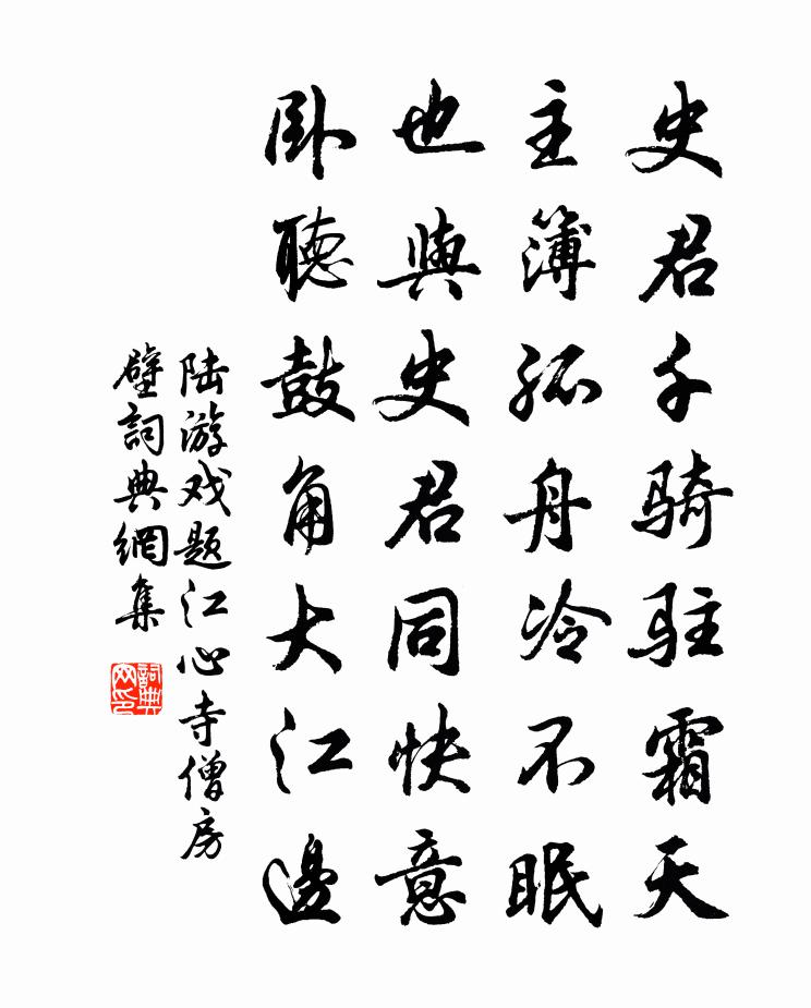 史君千騎駐霜天,主簿孤舟冷不眠。也與史君同快意,臥聽鼓角大江邊。