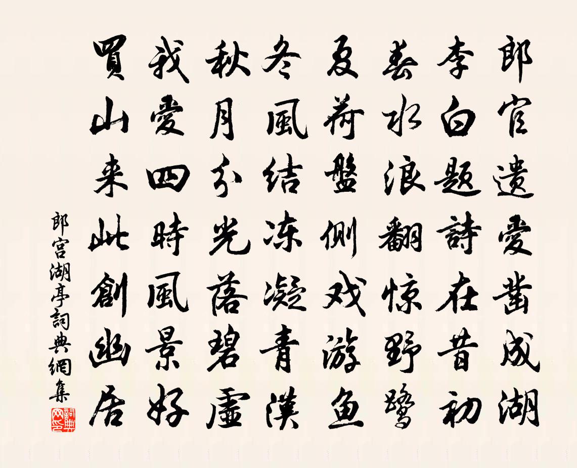 郎官遺愛鑿成湖,李白題詩在昔初。春水浪翻驚野鷺,夏荷盤側戲游魚。