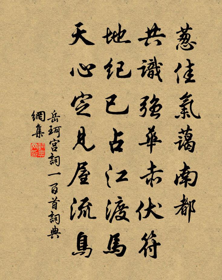 詩詞名句歷史字典書法欣賞書法字典國語詞典說文解字康熙字典古漢語字典標 題 作 者 詩 句 宮詞一百首作者:岳珂 朝代:宋代宮詞一百首原文-蔥佳氣藹南都,共識強華赤伏符。地紀已占江渡馬,天心定見屋流鳥。詩詞問答問:宮詞一百首的作者是誰?答:岳珂問:宮詞一百首寫於哪個朝代?答:宋代岳珂宮詞一百首書法欣賞宮詞一百首書法作品詩詞推薦頌證道歌證道歌釋印肅〔宋代〕非但我今獨達了,萬古宗心應不少。皆從非相入無餘,未離形名終莫曉。會稽婦梅堯臣〔宋代〕食藕莫問濁水泥,嫁婿莫問寒家兒。寒兒黧黑面無脂,驥子縱瘦骨骼奇。買臣貧賤妻生離,行歌負薪何媿之。高車蝶戀花王安中〔宋代〕花發自迎春。雪霽花梢春欲到。餞臘迎春,一夜花開早。青帝回輿雲縹緲。鮮鮮金雀來飛繞。繡閣紗窗人窈窕。翠題墨竹釋慧遠〔宋代〕通乎筆端之有神,妙乎造化之有功。戲蒼龍之引尾,背皓月而搖風。疏影無聲亂寒墨,瘦枝有葉翻秋空。淳熙乙未春予有桂林之役自湘潭往省先塋以二張栻〔宋代〕下馬步深徑,洗盞酌寒泉。念不踐此境,於今復三年。人事苦多變,泉色故依然。緬懷德人游,物物生春妍。當時和裴傑秀才新櫻桃杜牧〔唐代〕新果真瓊液,未應宴紫蘭。圓疑竊龍頷,色已奪雞冠。遠火微微辨,繁星曆歷看。茂先知味好,曼倩恨偷難。忍用壬辰日蝕陳普〔宋代〕憶昔度宗皇帝時,十年十三日食之。似道屓贔湖海曲,天 * 庭耽樂嬉。滿朝翕翕皆婦人,禍來照鏡方畫眉。北軍送河陽通判張寺丞從富公辟梅堯臣〔宋代〕張公愛神鍔,佩服近玉麟。又拭華陰土,光彩一以新。百里無惡獸,千里無冤人。今朝欲何人,去去延平津。應當明末民謠佚名〔明代〕朝求升,暮求合,近來貧漢難存活。早早開門拜闖王,管教大小都歡悅。 殺牛羊,備酒漿,開了城門迎闖王,闖夜坐懷莘老司諫秦觀〔宋代〕六合寥寥信茫昧,中有日月無根柢。古往今來漫不休,青發素顏從此逝。嗟予自少多邅回,氣血未衰心已艾。北渡題何靖山人隱居二首文同〔宋代〕錦屏山下何夫子,鐵帶 * 真古人。苦學詩來偷鬢老,樂為儒後卻家貧。酒中酌月江村夜,琴上彈風鶴寺春。君已上封戴復古〔宋代〕樓台逼霄漢,窗戶納雲霓。回顧千岩路,如登萬仞梯。泉從山頂出,雪壓樹頭低。高絕無人境,非僧不可棲。王修竹館舍即事黃庚〔宋代〕池館翠深處,寬間稱客居。未仙猶閬苑,不夢亦華胥。竹淨堪居鶴,荷香欲醉魚。心清無個事,長日一編書。阮郎歸秦觀〔宋代〕褪花新綠漸團枝,撲人風絮飛。鞦韆未拆水平堤,落紅成地衣。 游蝶困,乳鶯啼,怨春春怎知。日長早被酒禁連雪不已復作絕句詠之及六而止殆未免不愁凍趙蕃〔宋代〕不假丹青手,居成水墨圖。莫嗟玄尚白,靡嘆糞難污。題紫微觀建業卜者〔唐代〕昨日朝天過紫微,醮壇風冷杏花稀。碧桃泥我傳訊息,何事人間更不歸。登封道中三絕 緱山祠蘇轍〔宋代〕飛仙不返周王子,重阜相連少室孫。夜靜笙聲兼鶴下,回看惟有故山存。偈釋辯〔宋代〕毫釐有差,天地懸隔。隔江人唱鷓鴣詞,錯認胡笳十八拍。欲得現前,莫存順逆。五湖煙浪有誰事,自是不歸歸便伏闕辭歸程康國〔宋代〕偶逢豺虎寢天關,事有當言恥口緘。不建侯藩控西北,別求何策保東南。幸投草野言無棄,退就山林老亦甘。束起清州書事歐陽修〔宋代〕年豐千里無夜警,吏退一室焚清香。青春固非老者事,白日自為閒人長。祿厚豈惟◇飽食,俸余仍足買輕裝。君恩名句推薦綠波春浪滿前陂,極目連雲稏肥。韋莊《稻田》 杜漸防萌,慎之在始。房玄齡《晉書·列傳·第六十八章》 數回細寫愁仍破,萬顆勻圓訝許同杜甫《野人送朱櫻》 山從人面起,雲傍馬頭生。李白《送友人入蜀》 霜雪兮漼溰,冰凍兮洛澤。王逸《九思》 傷心庾開府,老作北朝臣。司空曙《金陵懷古》 欲人不知,莫若不為;欲人不聞,莫若勿言。吳兢《貞觀政要·卷五· * 平》 金剛則折,革剛則裂。劉向《說苑·敬慎》 君問歸期未有期,巴山夜雨漲秋池。李商隱《夜雨寄北》 唯有門前鏡湖水,春風不改舊時波。賀知章《回鄉偶書二首》