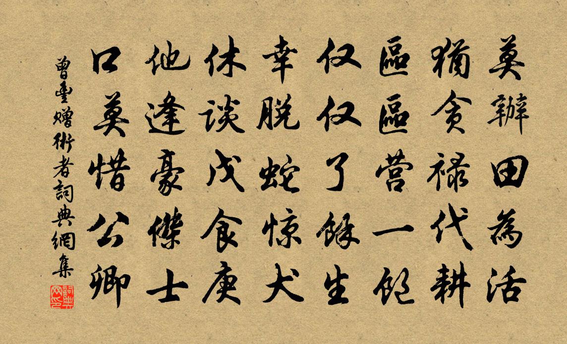 詩詞名句歷史字典書法欣賞書法字典國語詞典說文解字康熙字典古漢語字典標 題 作 者 詩 句 贈術者作者:曾豐 朝代:宋代贈術者原文莫辦田為活,猶貪祿代耕。區區營一飽,僅僅了餘生。幸脫蛇驚犬,休談戊食庚。他逢豪傑士,口莫惜公卿。詩詞問答問:贈術者的作者是誰?答:曾豐問:贈術者寫於哪個朝代?答:宋代曾豐贈術者書法欣賞贈術者書法作品詩詞推薦摸魚兒 賦潮吳存〔元代〕定何人、鞭蛟笞蜃,盡驅山石填海。海波坌涌三千丈,蓬嶠落翻鰲背。天晝晦。似睢水、揚沙漢楚三軍潰。東皇翠六代祖師贊釋心月〔宋代〕能與麽去,能與麽回。青松郁密,白髮摧頹。嶺南訊息幾時來。官況虞儔〔宋代〕流落經年別,平安只信通。宦情元自薄,春色為誰濃。撫字愁眉上,青紅醉眼中。著詩無好語,還往負筠筒。千葉石榴鄧深〔宋代〕誰家巧歸為花謀,針絲殘零細意收。不管生紅難熨貼,從教百皺綴枝頭。廄馬夏竦〔宋代〕萬里無塵塞草秋,玉輪金軛未巡遊。上林苜蓿天池水,館食長鳴可自羞。臨江仙周紫芝〔宋代〕水遠山長何處去,欲行人似孤雲。十分瘦損沈休文。忍將秋水鏡,容易與君分。試問梨花枝上雨,為誰彈滿清尊。臨終偈釋梵卿〔宋代〕五陰山頭乘駿馬,一鞭策起疾如飛。臨行莫問棲真處,南北東西隨處歸。綿王夢應〔宋代〕既庶既繁,既多受祉。厥胤維何,宜兄宜弟。兄弟求矣,以燕翼子。立春日李遠〔唐代〕暖日傍簾曉,濃春開篋紅。釵斜穿彩燕,羅薄剪春蟲。巧著金刀力,寒侵玉指風。娉婷何處戴,山鬢綠成叢。禱雨宿九曲池上三首晁補之〔宋代〕荒城孤絕處,猶指玉鉤亭。涼月遍宜上,江南山更青。句曾鞏〔宋代〕濯殘暑氣朝來雨,助作秋聲夜半風。鷗渚亭次韻茂洪西湖三詩張鎡〔宋代〕老了看山今益工,只憐雲氣不憐峰。抬頭斗餉無人說,自向波心汎短篷。讀樂天詩陸游〔宋代〕放姬鬻駱初何有?常笑香山恨不攄。輸與此翁容易死,一身之外更無餘。贈萬生下第還吳)郎士元〔唐代〕直道多不偶,美才應息機。灞陵春欲暮,雲海獨言歸。為客成白首,入門嗟布衣。蓴羹若可憶,慚出掩柴扉。句劉師道〔宋代〕逝波帝子魂何在,芳草王孫怨未歸。魯直上東坡古風坡和之因次其韻張九成〔宋代〕幽蘭如君子,閒雅翰墨場。春風曉畦暖,斜日半窗光。竟夕澹相對,菲菲吐暗香。掩關清杖屨,簾卷度修廊。釵玉春日書懷寇準〔宋代〕曾讀前書笑古今,恥隨流俗信浮沉。終期直道扶元化,敢為虛名役片心。默坐野禽啼晝景,閉門官柳長春陰。世間初晴出南山過西湖往九峰復飲於湖光徐僑〔宋代〕積雨郁愁思,初日破春泥。勝處欲何往,游情翻自迷。柳招追綠渡,梅引逐香蹊。卻憶杜陵老,殷勤出碧雞。失調名佚名〔宋代〕岩玉枝頭金粟斗。題范文正公書伯夷頌後秦檜〔宋代〕高賢邈已遠,凜凜生氣存。韓范不時有,此心誰與論。名句推薦不虛美,不隱惡司馬光《資治通鑑·唐紀·唐紀十三》 已從招提游,更宿招提境杜甫《游龍門奉先寺》 樓頭小婦鳴箏坐,遙見飛塵入建章。王昌齡《青樓曲二首》 何日功成名遂了,還鄉,醉笑陪公三萬場。蘇軾《南鄉子·和楊元素時移守密州》 何當痛飲黃龍府,高築神州風雨樓李大釗《口占一絕(壯別天涯未許愁)》 笙歌散盡遊人去,始覺春空。歐陽修《採桑子·群芳過後西湖好》 埋骨何須桑梓地,人生無處不青山。 * 《七絕·改西鄉隆盛詩贈父親》 弱冠弄柔翰,卓犖觀群書。左思《詠史八首·其一》 桃李待日開,榮華照當年。李白《長歌行》 榮寵有初,鮮有終者;吉凶無常,智者少禍。來俊臣《羅織經·固榮卷第六》