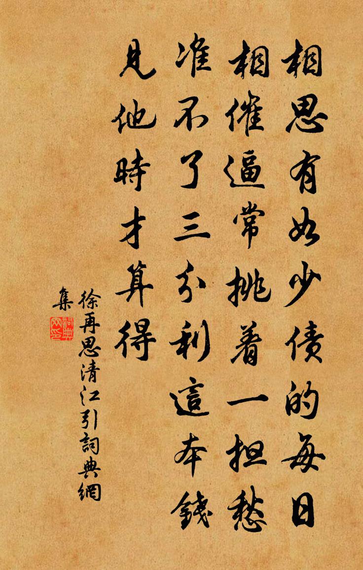 相思有如少債的,每日相催逼。常挑著一擔愁,準不了三分利。