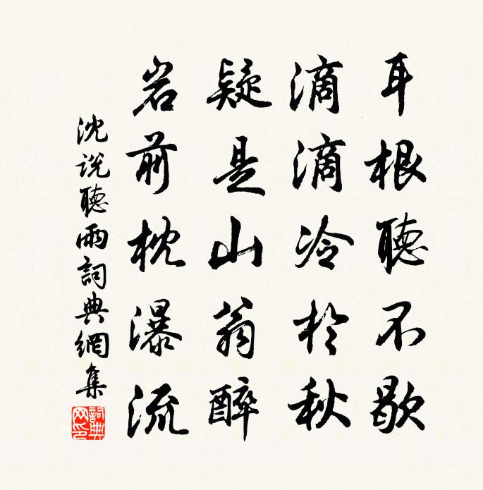 詩詞名句歷史字典書法欣賞書法字典國語詞典說文解字康熙字典古漢語字典標 題 作 者 詩 句 聽雨作者:沈說 朝代:宋代聽雨原文耳根聽不歇,滴滴冷於秋。疑是山翁醉,岩前枕瀑流。詩詞問答問:聽雨的作者是誰?答:沈說問:聽雨寫於哪個朝代?答:宋代沈說聽雨書法欣賞聽雨書法作品詩詞推薦金陵雜興二百首蘇泂〔宋代〕春風動地卷紅旌,人在清溪闊上行。歌舞洗空亡國恨,風流太守亦多情。馬殿丞通判密州梅堯臣〔宋代〕晨裝辭北闕,懷紱貳東侯。地本全齊勝,風仍變魯優。危帆淮上去,古木海邊秋。相送江潭客,曾同十載游。近陋室以斗升釀家婦謂予未飲不以見告昨夜偷王洋〔宋代〕斗米蒸炊入小罌,未應訊息到比鄰。靜思懷璧真成罪,恐是糟床夜滴聲。喜遷鶯馮去非〔宋代〕涼生遙渚。正綠芰擎霜,黃花招雨。雁外漁村,蛩邊蟹舍,絳葉滿秋來路。世事不離雙鬢,遠夢偏欺孤旅。送望眼以端溪硯酬張員外水精珠兼和來篇徐鉉〔唐代〕請以端溪潤,酬君水玉明。方圓雖異器,功用信俱呈。自得山川秀,能分日月精。巾箱各珍重,所貴在交情。酬南洛陽早春見贈白居易〔唐代〕物華春意尚遲回,賴有東風晝夜催。寒縋柳腰收未得,暖熏花口噤初開。[古詩云:口噤不能開。]欲披雲霧聯襟估客有自蔡州來者感悵彌日陸游〔宋代〕百戰元和取蔡州,如今胡馬飲淮流。和親自古非長策,誰與朝家共此憂?送李潛歸綿州覲省姚鵠〔唐代〕朱樓對翠微,紅旆出重扉。此地千人望,寥天一鶴歸。雪封山崦白,鳥拂棧梁飛。誰比趨庭戀,驪珠耀彩衣。奉和史館張閣老以許陳二閣長…南北省會於左掖因而有詠權德輿〔唐代〕伯仲盡時賢,平輿與潁川。桂枝嘗遍折,棣萼更相鮮。丹地晨趨並,黃扉夕拜聯。豈如分侍從,來就鳳池邊。哭故主人陳太師李中〔唐代〕十年孤跡寄侯門,入室升堂忝厚恩。游遍春郊隨茜旆,飲殘秋月待金尊。車魚鄭重知難報,吐握周旋不可論。長慟次韻上雪樓程侍御王奕〔宋代〕當年雪片大如席,獨立樓頭有此翁。集霰已知漫大地,行窗轉覺舞迴風。洛陽公子衾誰共,姑射仙人夢不同。且倚春雨中偶成四首張耒〔宋代〕春陰只與睡相宜,臥聽鳴禽語復飛。一縷斷香浮不散,何人深院晝熏衣。郡樓對雨和周守韻二首張嵲〔宋代〕暮雨昏平遠,南山漸不分。濛濛連楚塞,細細濕行雲。從宦成羇束,登危厭糾紛。何時疏竹里,還向舊山聞。遣懷陸游〔宋代〕寬袂新裁大布裘,低篷初買小漁舟。舊交只有青山在,壯志皆因白髮休。漫道臥羆吞貉子,安能淅米向矛頭?山園迓王書史六邑勸課回四絕楊公遠〔宋代〕杜鵑聲里莫春天,桑柘村村綠似煙。分趼稱絲將有日,吳蠶今已起三眠。任伯仲時德升用均你韻送德父守菑川邀奈同賦傅察〔宋代〕妙齡擢秀如黃童,藉甚詞林振古風。瀾翻千載常在口,磊落萬卷獨蟠胸。不將龜筮論從逆,獨向詩書有高識。琳宮維摩贊李昴英〔宋代〕丈室著不得文殊,眾香國里薰教臭。無端詐病卻成喑,只為從前多業口。朱買臣徐鈞〔宋代〕長歌負擔久棲棲,一旦高車守會稽。衣錦還鄉成底事,只將富遺耀前妻。出行湖山間雜賦陸游〔宋代〕老入新年健,春逢小雨晴。偶因尋酒去,又作繞村行。塘水蒼鵝戲,郊原黃犢鳴。閒身有樂事,倚杖看農耕。題大龍湫陳與義〔宋代〕曉行蒼壁中,窮處仍高崖。白龍三百丈,欲下層顛來。映日灑飛雨,繞山行怒雷。潭影納浩蕩,雲氣扶崔嵬。小儒名句推薦疏籬下、試覓重陽,醉擘青露菊。吳文英《一寸金·秋感》 自見之謂明。韓非及後人《韓非子·喻老》 願月常圓,休要暫時缺。趙佶《醉落魄·預賞景龍門追悼明節皇后》 晨昏滾滾水東流,今古悠悠日西墜。錢福《明日歌》 箭徑酸風射眼,膩水染花腥。吳文英《八聲甘州·靈岩陪庾幕諸公游》 夫民勞則思,思則善心生;逸則淫,淫則忘善,忘善之噁心生。左丘明《國語·魯語·公父文伯之母論勞逸》 鈍學累功,不妨精熟顏之推《顏氏家訓·文章篇》 故人南燕吏,籍籍名更香。岑參《至大梁卻寄匡城主人》 王孫莫把比蓬蒿,九日枝枝近鬢毛。鄭谷《菊》 賊是小人,智過君子。佚名《增廣賢文·上集》