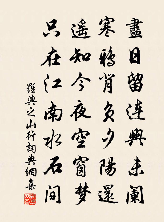 詩詞名句歷史字典書法欣賞書法字典國語詞典說文解字康熙字典古漢語字典標 題 作 者 詩 句 山行作者:羅與之 朝代:宋代山行原文盡日留連興未闌,寒鴉背負夕陽還。遙知今夜空窗夢,只在江南水石間。詩詞問答問:山行的作者是誰?答:羅與之問:山行寫於哪個朝代?答:宋代羅與之山行書法欣賞山行書法作品詩詞推薦馬援陳造〔宋代〕朱勃風標似可親,文淵竟作白頭新。平時輕侮知何事,辨雪冤誣獨此人。西京道中聞蛙吳融〔唐代〕雨餘林外夕煙沉,忽有蛙聲伴客吟。莫怪聞時倍惆悵,稚圭蓬蓽在山陰。重題釣台吳錫疇〔宋代〕不向雲台戀故袍,清風固自釣台高。渭川八十年煙雨,豈是漁竿把不牢。送鄭丞之羅浮中習業楊衡〔唐代〕百年泛飄忽,萬事系衰榮。高鴻脫矰繳,達士去簪纓。始從天目游,復作羅浮行。雲臥石林密,月窺花洞明。全形題九歌圖方回〔宋代〕惟此楚騷,能歌蓋寡。我醉友能老嚴灘者,駕風驂雲。此誰其寫,是常夢中與之游也。送從叔尉澠池顧非熊〔唐代〕同登科第皆清列,尚愛東畿一尉閒。雖有田園供海畔,且無宗黨在朝班。甘貧只為心知道,晚達多緣性好山。白首寶林寺二首宋日隆〔宋代〕年來試凋邑,如僧住破庵。頗識眾因果,寧忍事嗔貪。晨飧雖不飽,夜夢卻自安。緬懷百里內,何異一室間。痛癢題常樂寺五雲堂韋謙〔宋代〕吾匠慕先哲,至理皆融通。一法果有至,五雲凝在空。講香侵棐幾,夜月鎖簾櫳。弋者何須預,冥冥出塞鴻。夏日田園雜興范成大〔宋代〕黃塵行客汗如漿,少住儂家漱井香;借與門前磐石坐,柳陰亭午正風涼。偈頌三十八首釋如淨〔宋代〕掩室摩竭國,老胡豁開頂門。杜口毗耶城,淨名敗缺話柄。提上古兩端公案,發今朝一段威光。游雲居寺,贈穆三十六地主白居易〔唐代〕亂峰深處雲居路,共蹋花行獨惜春。勝地本來無定主,大都山屬愛山人。滿江紅辛棄疾〔宋代〕宿酒醒時,算只有、清愁而已。人正在、青塗堂上,月華如洗。紙帳梅花歸夢覺,蓴羹鱸鱠秋風起。問人生、得意步蟾宮(木犀)蔣捷〔宋代〕綠華翦碎嬌雲瘦。剩妝點、菊前蓉後。娟娟月也染成香,何況、纖羅襟袖。秋窗一夜西風驟。翠奩鎖、瓊珠花鏤。有感王珪〔唐代〕聞笛更懷舊,望鴻難寄音。西風行客淚,明月故人心。離恨江波闊,歸期歲景深。何時紫溪隱,尊酒起狂吟。次韻時瑞見寄方翥〔宋代〕吟詩夜半霜月白,胡床夢作乘槎客。醉中入月捉玉免,手摵桂枝鳴策策。風吹天河銀浪高,月邊星宿相周遭。五色木蘭花慢周密〔宋代〕疏鐘敲暝色,正遠樹、綠愔愔。看渡水僧歸,投林鳥聚,煙冷秋屏。孤雲。漸沈雁影,尚殘簫、倦鼓別遊人。宮柳戲題致遠書房范成大〔宋代〕照叢菊靨萬黃金,欹架薇條半綠陰。逋客已隨丹鳳詔,但余花草怨秋深。述志方鳳〔宋代〕只因生在胡元世,豈將襤褸換羅衣。壯圖落落還中止,高蹈悠悠且遁肥。松竹森然真有味,衣冠整傷不須題。優遊絕句一首蘇軾〔宋代〕蒙蒙春雨濕邗溝,篷底安眠晝擁裘。知有故人家在此,速將詩卷洗閒愁。至滑州隔河望黎陽憶丁三王維〔唐代〕隔河見桑柘,藹藹黎陽川。望望行漸遠,孤峰沒雲煙。故人不可見,河水復悠然。賴有政聲遠,時聞行路傳。名句推薦不可以一時之譽,斷其為君子;不可以一時之謗,斷其為小人。馮夢龍《警世通言·卷四》 一身轉戰三千里,一劍曾當百萬師。王維《老將行》 夕陽西下,斷腸人在天涯。馬致遠《天淨沙·秋思》 悠悠卷旆旌,飲馬出長城。李世民《飲馬長城窟行》 拔劍擊大荒,日收胡馬群。杜甫《後出塞五首》 琴書倦,鷓鴣喚起南窗睡。謝逸《千秋歲·詠夏景》 布衣得暖真為福,千金平安即是春。佚名《增廣賢文·下集》 凡百事之成也,必在敬之;其敗也,必在慢之。荀子《荀子·議兵》 日射人間五色芝,鴛鴦宮瓦碧參差。元好問《浣溪沙·日射人間五色芝》 焚琴煮鶴從來有,惜玉憐香幾個知!馮夢龍《醒世恆言·卷三》