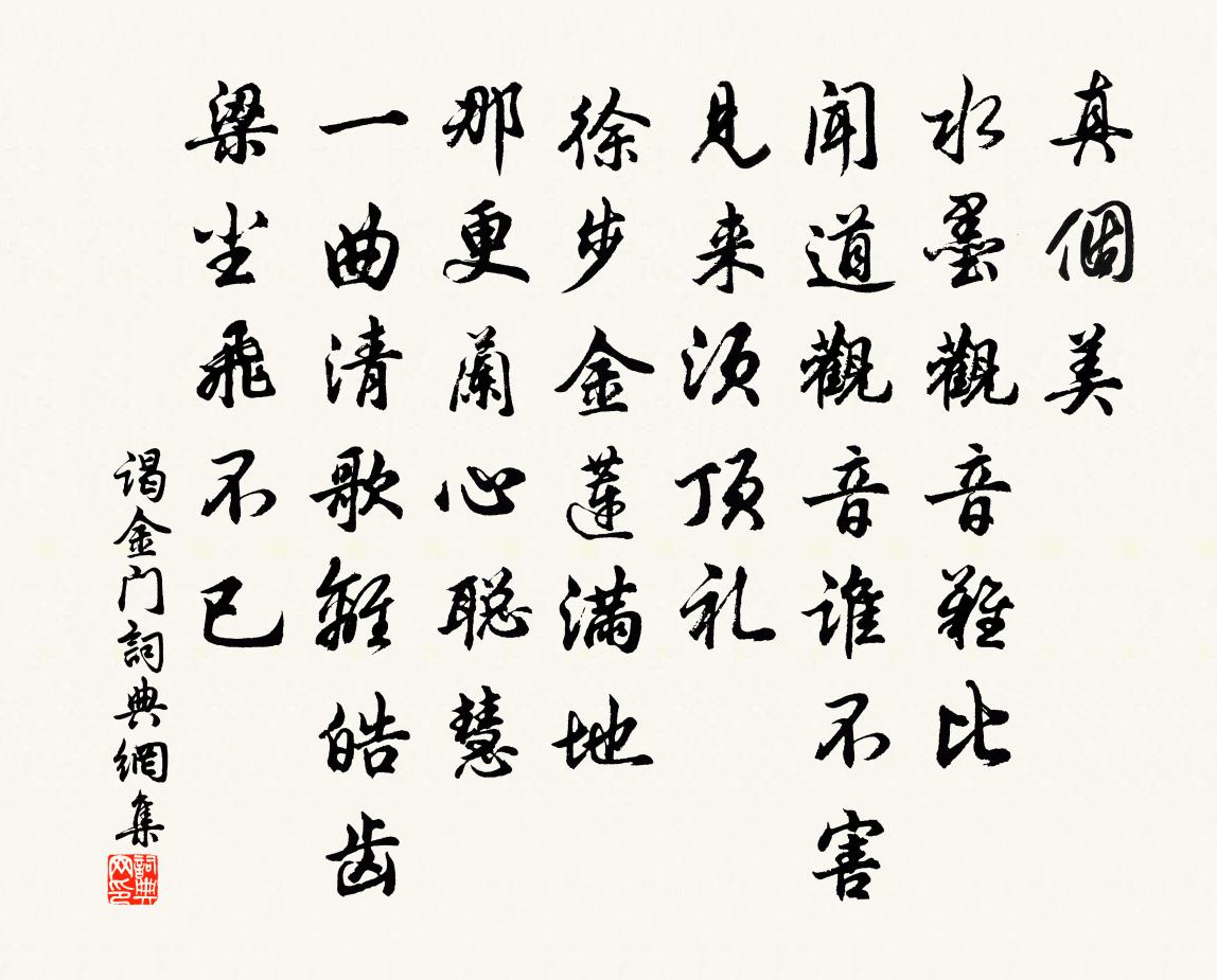 真箇美。水墨觀音難比。