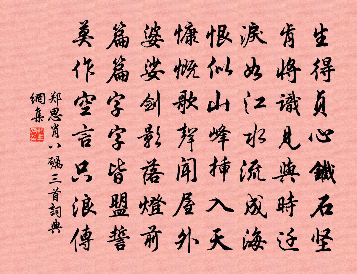 生得貞心鐵石堅,肯將識見與時遷。淚如江水流成海,恨似山峰插入天。