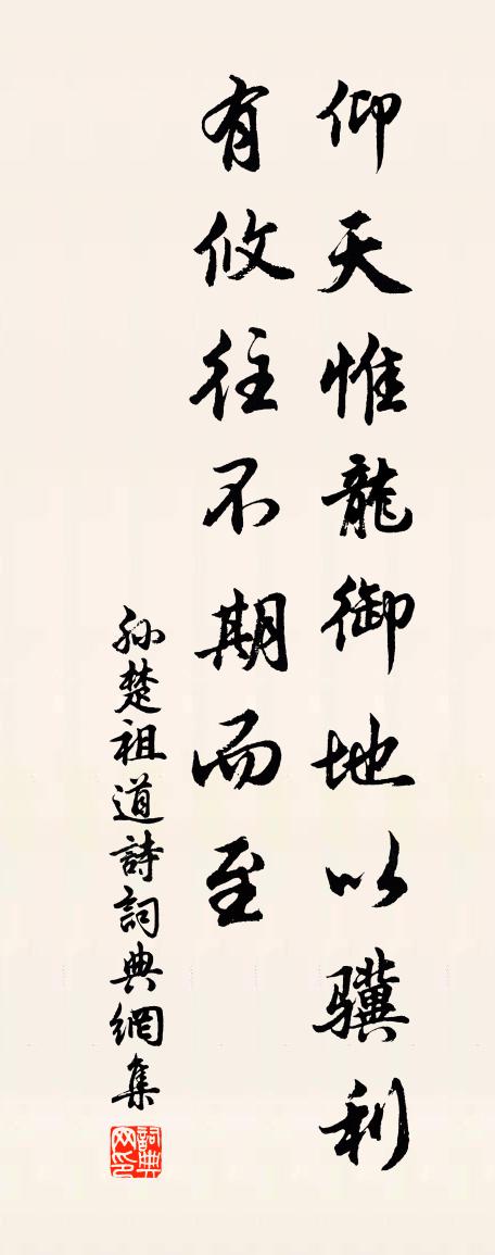 詩詞名句歷史字典書法欣賞書法字典國語詞典說文解字康熙字典古漢語字典標 題 作 者 詩 句 祖道詩作者:孫楚 朝代:魏晉祖道詩原文仰天惟龍。御地以驥。利有攸往。不期而至。詩詞問答問:祖道詩的作者是誰?答:孫楚問:祖道詩寫於哪個朝代?答:魏晉孫楚祖道詩書法欣賞祖道詩書法作品詩詞推薦送居厚弟二首劉克莊〔宋代〕少日魚同隊,中年雁失群。寧師楚勝舍,不羨洛機雲。春夢謝池草,冰銜漢合人。向來麾節處,盡說小馮君。偈頌十八首釋師體〔宋代〕一拳也是打爺來,未有輸贏莫放開。割捨拍盲窮性命,觜喎鼻塌見全材。偈頌一百二十三首釋崇岳〔宋代〕一二三四五,五四三二一。風過樹頭搖,天晴日頭出。會得日頭出,不公而自屈。奉和幸三會寺應制宋之問〔唐代〕六飛回玉輦,雙樹謁金仙。瑞鳥呈書字,神龍吐浴泉。淨心遙證果,睿想獨超禪。塔涌香花地,山圍日月天。梵音右省張補闕茂樞同在諫垣連居光德新春賦詠聊以寄懷鄭谷〔唐代〕小梅零落雪欺殘,浩蕩窮愁豈易寬。唯有朗吟償晚景,且無濃醉厭春寒。高齋每喜追攀近,麗句先憂屬和難。十五梅花 / 梅王安石〔宋代〕牆角數枝梅,凌寒獨自開。遙知不是雪,為有暗香來。正月十日始晴方回〔宋代〕穗歷桃符漫告新,漆肌蓬鬢轉成陳。暮年多病全無賴,積雨初晴略似春。香火荒山猶古廟,兵戈故國僅遺民。承平又送劉著作文同〔宋代〕北地戎馬後,凋殘今幾年。邊民此天幸,縣令若君賢。況自儲蓄久,定知摩撫全。好須圖善政,能為作詩傳。立春謝司法有詩次韻方岳〔宋代〕誰將健筆破天葩,清曉園林儘是花。寒人崖雲齋未久,詩腸雖吼尚禁茶。又次韻彥博游無為寺二首李流謙〔宋代〕靈蛻巋然謝垢埃,焚香卻立嘆奇哉。自從新歲門常掩,不見青山眼懶開。飛觀千楹孤鳥墮,齋盂萬指曉鯨催。亦知句趙企〔宋代〕四山來不斷,一水去無窮。菩薩蠻·憶郎還上層樓曲張先〔宋代〕憶郎還上層樓曲。樓前芳草年年綠。綠似去時袍。回頭風袖飄。郎袍應已舊。顏色非長久。惜恐鏡中春。不如花草題徑山一覽亭喻良能〔宋代〕歷覽眾峰頂,下視飛鳥背。一身凌紫霞,迥出塵寰外。湖上鄭獬〔宋代〕秋影落西湖,淥波淨如眼。搖船入芰荷,船里清香滿。花深不見人,但聽歌聲遠。還從過船處,折倒青荷傘。為采過祿氏山齊文同〔宋代〕過水得憑檻,滿川皆夕陽。江山逢勝絕,手筆恨荒唐。城郭蒙籠近,汀州杳靄長。明朝又東去,塵土入衣裳。送王太尉赴詔二首魏野〔宋代〕三朝元老狀元稀,乞赴彤庭詔便依。金鼎位高將正拜,璧田家近恐妨歸。殊恩每過莓苔徑,別淚偏沾薜荔衣。從此寒菊 / 畫菊鄭思肖〔宋代〕花開不並百花叢,獨立疏籬趣未窮。寧可枝頭抱香死,何曾吹墮北風中。題施山人野居白居易〔唐代〕得道應無著,謀生亦不妨。春泥秧稻暖,夜火焙茶香。水巷風塵少,松齋日月長。高閒真是貴,何處覓侯王?過天台翁森〔宋代〕日落千山外,悠然一望賒。黃檀六七里,綠竹兩三家。幽步窺殘雪,孤愁入遠霞。今宵何處宿,茆屋有梅花。贈相士郭少仙洪咨夔〔宋代〕崇蘭生深林,澹泊一點芳。江梅倚修竹,醖藉萬斛香。氣骨抱金玉,精神貯冰霜。若以色見我,照紅還海棠。名句推薦記得年時,相見畫屏中。謝逸《江神子·杏花村館酒旗風》 無言暗將紅淚彈。闌珊,香銷輕夢還。納蘭性德《河傳·春淺》 認得醉翁語,山色有無中蘇軾《水調歌頭·黃州快哉亭贈張偓佺》 聞道故林相識多,罷官昨日今如何李頎《送陳章甫》 在家不會迎賓客,出門方知少主人。佚名《增廣賢文·上集》 山一程,水一程,身向榆關那畔行,夜深千帳燈。納蘭性德《長相思·山一程》 幸回郎意且斯須,一年中別今始初。王建《七夕曲》 永豐柳,無人盡日飛花雪。張先《千秋歲·數聲鶗鴂》 一郡官閒唯副使,一年冷節是清明。王禹偁《清明日獨酌》 大哉,時之相生也!達者可與幾矣。王通《中說·卷五·問易篇》