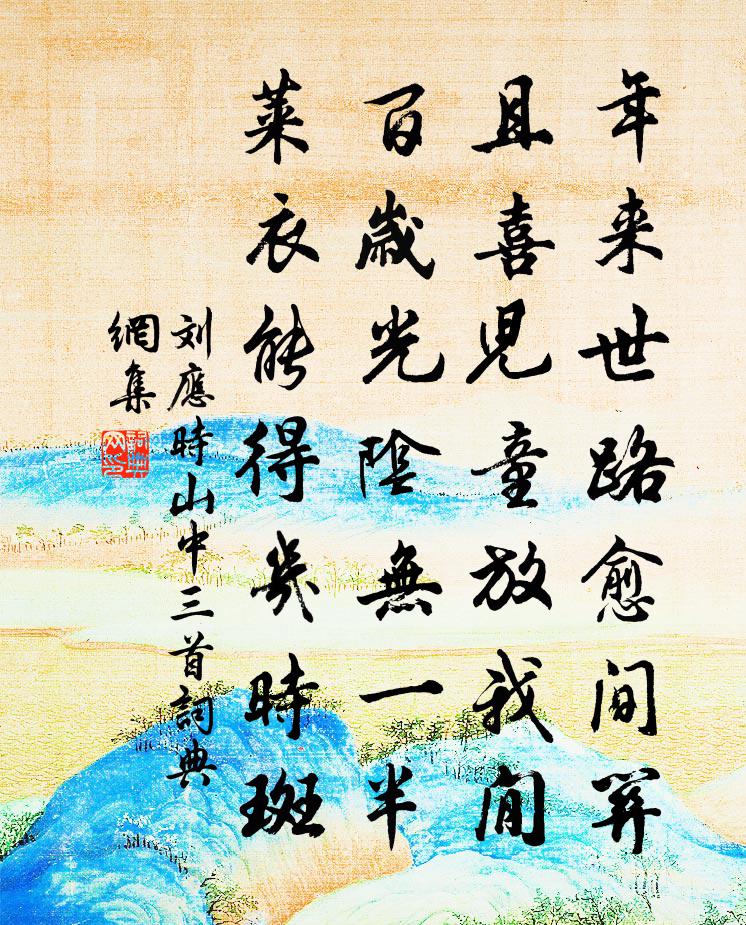 詩詞名句歷史字典書法欣賞書法字典國語詞典說文解字康熙字典古漢語字典標 題 作 者 詩 句 山中三首作者:劉應時 朝代:宋代山中三首原文年來世路愈間關,且喜兒童放我閒。百歲光陰無一半,萊衣能得幾時斑。詩詞問答問:山中三首的作者是誰?答:劉應時問:山中三首寫於哪個朝代?答:宋代劉應時山中三首書法欣賞山中三首書法作品詩詞推薦何君智父之堂名以雲岫袁蒙齋記之智父以示余杜范〔宋代〕谷里深藏豈自珍,須臾觸石上天津。悠然一片心何在,說道無心卻誤人。偈頌一百二十三首釋崇岳〔宋代〕薦福少方便,拳頭如掣電。千眼地摸索,千耳不可見,家家門首透長安。子遠使君出守廣漢始獲傾蓋諸官賦詩贈別某廣張栻〔宋代〕地生落南州,分與岷峨疎。朅來荊江上,所忻近鄉閭。吾鄉多雋豪,雜遝來舟車。時從說情話,頗覺中懷舒。中間感遇之十八陳子昂〔唐代〕逶迤勢已久。骨鯁道斯窮。豈無感激者。時俗頹此風。灌園何其鄙。皎皎於陵中。世道不相容。喈喈張長公。句劉筠〔宋代〕醉令難同社,仙鵝肯換書。句莫漳〔宋代〕一麾出守山水郡,陽山正在君提封。太上感應篇李昌齡〔宋代〕太上曰:禍福無門,唯人自召。善惡之報,如影隨形。是以天地有司過之神依人所犯輕重,以奪人算。算減則貧耗梅花喜神譜蓓蕾四枝宋伯仁〔宋代〕靜看隋堤人,紛紛幾榮辱。蠻腰休逞妍,所見元非俗。洪橋客窗枕上陳郁〔宋代〕桐葉飄零月似冰,並河燈火夜寒生。闌乾倦倚投床去,臥聽趨朝過馬聲。雜曲歌辭。邯鄲才人嫁為廝養卒婦李白〔唐代〕妾本叢台女,揚蛾入丹闕。自倚顏如花,寧知有凋歇。一辭玉階下,去若朝雲沒。每憶邯鄲城,深宮夢秋月。君王觀劍南獻捷佚名〔宋代〕遐圻新破虜,名將舊登壇。戎馘西南至,氈裘長幼觀。邊疆氛已息,矛戟血猶殘。紫陌歡聲動,丹墀喜氣盤。唐虞陌上花 使歸閩浙,歲暮有懷張翥〔元代〕關山夢裡,歸來還又、歲華催晚。馬影雞聲,諳盡倦郵荒館。綠箋密記多情事,一看一迴腸斷。待殷勤寄與,舊遊朝中措(聞桂香)吳文英〔宋代〕海東明月鎖雲陰。花在月中心。天外幽香輕漏,人間仙影難尋。並刀翦葉,一枝曉露,綠鬢曾簪。惟有別時難忘,達磨渡江贊釋紹曇〔宋代〕聖諦義中猶不識,透清波路想應難。九年鬼窟深藏拙,卻被神光冷眼看。宜陽別元明用觴字韻黃庭堅〔宋代〕霜須八十期同老,酌我仙人九醞觴。明月灣頭松老大,永思堂下草荒涼。千林風雨鶯求友,萬里雲天雁斷行。別夜皇雅十首《皇治》三章尹洙〔宋代〕皇德在仁,寖而成風。公侯卿士,靡不率從。麛卵萌生,鹹保厥終。不鄙不夭,樂哉融融。偈公六十五首釋鹹傑〔宋代〕雲開千嶂出,木落一枝分。相見又無事,不來還憶君。北樓三首宋庠〔宋代〕地迥樓堪倚,天長日更勞。何須雲渺渺,況自葉騷騷。脫兔橫岡遠,冥鴻避弋高。四愁休偏詠,俱是一沾袍。盛夫人輓詞樓鑰〔宋代〕婉嫕閨中秀,清高林下風。相夫能盡禮,教子使移忠。邊郡官無曠,都城養得終。壺彜今具在,流慶復何窮。夢遊秦宮(一作題宮門)沈亞之〔唐代〕君王多感放東歸,從此秦宮不復期。春景似傷秦喪主,落花如雨淚胭脂。名句推薦總把春山掃眉黛,不知供得幾多愁?李商隱《代贈二首》 錢財如糞土,仁義值千金。馮夢龍《醒世恆言·卷十七》 亂碧萋萋,雨後江天曉。梅堯臣《蘇幕遮·草》 良農不為水旱不耕,良賈不為折閱不市。荀子《荀子·修身》 喜怒不形於色。房玄齡《晉書·列傳·第十九章》 試上超然台上看,半壕春水一城花。蘇軾《望江南·超然台作》 奢侈之敗家,猶出常情;而慳吝之敗家,必遭奇禍。王永彬《圍爐夜話·第五九則》 潯陽江頭夜送客,楓葉荻花秋瑟瑟。白居易《琵琶行 / 琵琶引》 山荒聊可田,錢鎛還易辦。王守仁《謫居糧絕請學於農將田南山詠言寄懷》 日上,正赤如丹,下有紅光,動搖承之。姚鼐《登泰山記》