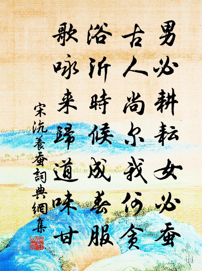 詩詞名句歷史字典書法欣賞書法字典國語詞典說文解字康熙字典古漢語字典標 題 作 者 詩 句 養蠶作者:宋沆 朝代:宋代養蠶原文男必耕耘女必蠶,古人尚爾我何貪。浴沂時候成春服,歌詠來歸道味甘。詩詞問答問:養蠶的作者是誰?答:宋沆問:養蠶寫於哪個朝代?答:宋代宋沆養蠶書法欣賞養蠶書法作品詩詞推薦送李鉶赴舉貫休〔唐代〕詩業務經綸,新皆意外新。因知登第榜,不著不平人。句得孤舟月,心飛九陌塵。明年相賀日,應到曲江濱。曉晴(一作晚晴)李白〔唐代〕野涼疏雨歇,春色遍萋萋。魚躍青池滿,鶯吟綠樹低。野花妝面濕,山草紐斜齊。零落殘雲片,風吹掛竹谿。看鏡陸游〔宋代〕侷促人間百不如,每看清鏡嘆頭顱。醉來風月心雖在,老去軒裳夢已無。棋劫正忙停晚餉,詩聯未穩畫寒爐。乘除行香子(雲岩道中)辛棄疾〔宋代〕雲岫如簪。野漲挼藍。向春闌、綠醒紅酣。青裙縞袂,兩兩三三。把曲生禪,玉版句,一時參。拄杖彎環。過眼嵌剔銀燈杜安世〔宋代〕昨夜一場風雨。催促牡丹歸去。孫武宮中,石崇樓下,多情怎生為主。真疑洛浦。雲水算、杳無重數。獨倚闌乾凝此君室方蒙仲〔宋代〕清神造物慳,數竿自超俗。苦覓渭濱封,萬此豈有足。課詩趙蕃〔宋代〕灘長有餘逸,灘迥不勝遲。山帽堆雲絮,水紋飛雨絲。鷗鳴如避弋,鳥倦盍投枝。無計繁憂整,聊因課小詩。春日湖上武衍〔宋代〕飛鷁鳴鑣鼓吹喧,繁華應勝渡江前。吟梅處士今還在,肯住孤山爾許年。記夢釋文珦〔宋代〕神清發幽夢,夢到仙人峰。老仙啟玄門,問我來何從。仙發映山綠,仙顏眩日紅。高低種玉田,異植方茸茸。里閭雪中會飲李倅鈞東軒三絕蘇轍〔宋代〕竹里茅庵雪覆檐,爐香藹藹著蒲簾。欲求初祖安心法,笑我醺然已半酣。送山茶上知府郎給事釋重顯〔宋代〕穀雨前收獻至公,不爭春力避芳叢。煙開曾入深深塢,百萬槍旗在下風。秋夜長曹勛〔宋代〕秋夜長,秋夜長,風高月落飛清霜。征鴻蕭蕭度湘水,草木露冷蒹葭黃。鐵衣老將尚橫槊,胡兒甲馬爭騰驤。閨中近吟衛宗武〔宋代〕歷歷疏林點暮鴉,幽幽雨砌菊猶花。浮雲卷盡四山碧,倚遍喬松待月華。贈高待聘陳藻〔宋代〕待聘先生二十六,弟子滿堂修幾束。下床一面月幾千,有客市廛錢別錄。為兒不誦杞菊篇,舉籌欠魚須要肉。老夫假山蘇軾〔宋代〕安石作假山,其中多詭怪。雖然知是假,爭奈主人愛。中秋月彩如晝,寄上南海從翁侍御李群玉〔唐代〕海靜天高景氣殊,鯨睛失彩蚌潛珠。不知今夜越台上,望見瀛洲方丈無。月夜江瀆池納涼陸游〔宋代〕微逕荒城曲,叢祠野水邊。月能從我醉,風欲駕人僊。靜看黏螢草,遙聞采茨船。熱官那有此,留滯莫尤天。北陂杏花王安石〔宋代〕一陂春水繞花身,花影妖饒各占春。縱被春風吹作雪,絕勝南陌碾成塵。偈頌七十一首釋了惠〔宋代〕滿目荊榛,亘天烈焰。百匝千重,四方八面。趙州拿得七斤衫,普化走入大悲院,蠟人眼光如掣電。西齋新植萱草甚多作問答絕句二首問宋祁〔宋代〕膩花金英撲,織莛玉段抽。萱如解榮悴,爭合自忘憂。名句推薦事親孝,與士信,臨財廉,取予義,分別有讓,恭儉下人,常思奮不顧身以徇國家之急。班固《漢書·傳·司馬遷傳》 故人何不返,春華復應晚。柳惲《江南曲》 手如柔荑,膚如凝脂佚名《碩人》 攻人之惡毋太嚴,要思其堪受;教人以善毋過高,當使其可從。洪應明《菜根譚·概論》 誰言寸草心,報得三春暉。孟郊《遊子吟 / 迎母漂上作》 而浮生若夢,為歡幾何?李白《春夜宴桃李園序 / 春夜宴從弟桃花園序》 修身以敬,勿托以尊。房玄齡《晉書·列傳·第八章》 推手遽止之,濕衣淚滂滂韓愈《聽穎師彈琴》 入苑白泱泱,宮人正靨黃。李賀《同沈駙馬賦得御溝水》 秋鬢含霜白,衰顏倚酒紅。尹式《別宋常侍》