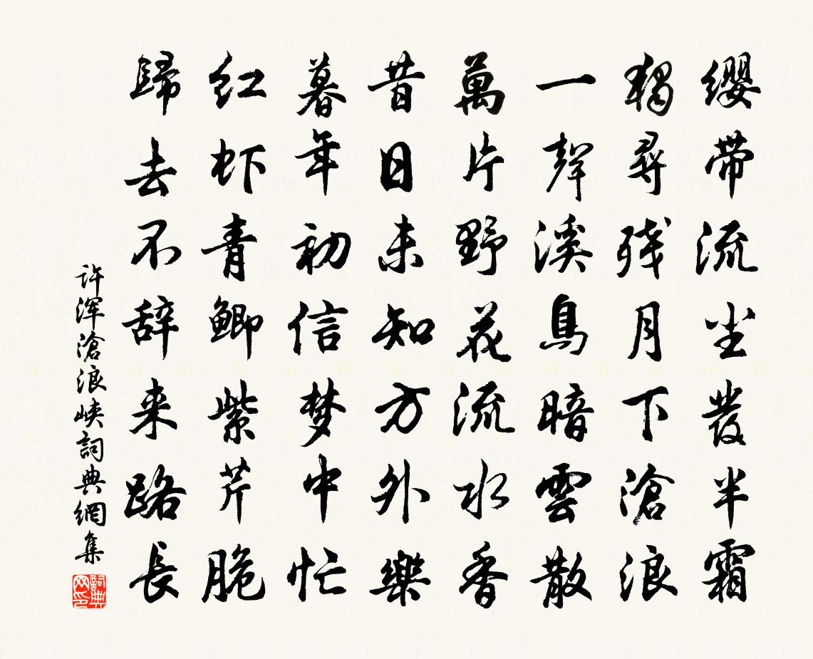 纓帶流塵發半霜,獨尋殘月下滄浪。一聲溪鳥暗雲散,萬片野花流水香。