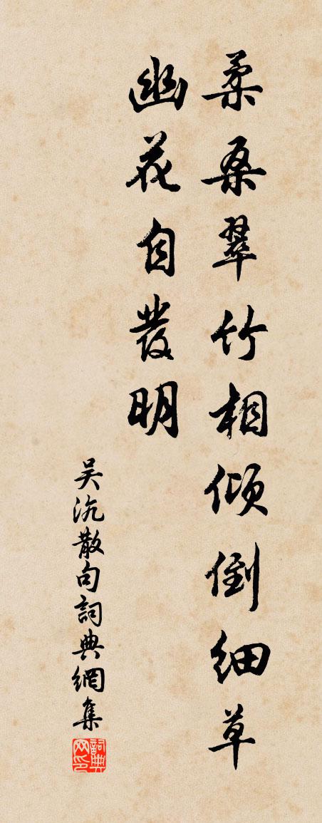 詩詞名句歷史字典書法欣賞書法字典國語詞典說文解字康熙字典古漢語字典標 題 作 者 詩 句 句作者:吳沆 朝代:宋代句原文柔桑翠竹相傾倒,細草幽花自發明。詩詞問答問:句的作者是誰?答:吳沆問:句寫於哪個朝代?答:宋代吳沆句書法欣賞句書法作品詩詞推薦偈頌七十一首釋了惠〔宋代〕投胎不著,一錯百錯。周行七步惹塵埃,直至如今抖不落。抖不落,定慧只將將錯就錯。送喻介夫文同〔宋代〕介夫陵陽奇男子,節義素為人所談。身長七尺氣萬丈,自謂流落誰能甘。去將舊學中新格,坐取高第如手探。明年清平樂劉敞〔宋代〕小山業桂。最有留人意。拂葉攀花無限思。雨濕濃香滿袂。別來過了秋光。翠簾昨夜新霜。多少月宮閒地,姮娥與望卞山懷石林翁韓元吉〔宋代〕卞山苕水共蒼蒼,中有先生萬古堂。早歲英名類終賈,墓年收壽到劉楊。人琴遂欲成千載,雞酒猶能酹一觴。身後謝彭守送花李石〔宋代〕別去名園走路塵,啼妝猶浥露痕新。且陪東閣諸侯客,粗了西湖一半春。試與清泉召魂魄,已驚黃蠟損精神。回頭次吳文之韻丘葵〔宋代〕江湖漫浪兩狂生,別後相思月一庭。期子未來燈是伴,逐貧不去筆無靈。詩書東閣頭空白,勢利迷人眼孰青。安得有山堂曾幾〔宋代〕江南家家窗,何處無遠岫。唯有謝玄暉,眼中揖其秀。採桑子謝逸〔宋代〕冷猿寒雁淮山遠,風裊青簾。飛雪廉纖。莫道空中是撒鹽。到時乳鵲喧梧影,曉卷疏簾。彩服巡檐。索共梅花笑語聞鼓角感懷陸游〔宋代〕鼓坎坎,角嗚嗚,四鼓欲盡五鼓初,老眼不寐如鰥魚,撫枕起坐涕泗濡。平生空讀萬卷書,白首不識承明廬。時多題徐子由菊坡圖喻良能〔宋代〕先生萬事不掛眼,獨向秋叢餐落英。未省折腰營五斗,懸知今日有淵明。諸暨道中五首葛紹體〔宋代〕極目田疇似掌平,遠山依約畫難成。天寬地大空明處,漸近稽山接帝城。次韻溫守李韻見寄兼簡毛大夫蘇轍〔宋代〕梁苑相從簿領中,清風相逐畫船東。婆娑江海凌雲鶴,飲啄籠樊失渚鴻。別後丹砂迷舊訣,愁來白髮變衰翁。此間再用恢大山韻三首方回〔宋代〕官罷賓客散,家貧僮僕頑。尚有此阿堵,苔錢何斑斑。酒從田父飲,果聽鄰人攀。四壁夜無盜,焉在門常關。浪作詠雲酒駱賓王〔唐代〕朔空曾紀曆,帶地舊疏泉。色泛臨碭瑞,香流赴蜀仙。款交欣散玉,洽友悅沉錢。無復中山賞,空吟吳會篇。潮月亭陶弼〔宋代〕角聲吹送小單于,薄霧稀星乍有燕。坐看月從潮上出,水晶盤裡夜明珠。久雨強至〔宋代〕雨師握天令,汲汲不停駕。疾驅鞭群龍,俛首隨叱吒。乘怒作滂霈,不復息晝夜。羲和久埋輪,縮手喜閒暇。山川題真州精舍齊己〔唐代〕波心精舍好,那岸是繁華。礙目無高樹,當門即遠沙。晨齋來海客,夜磬到漁家。石鼎秋濤靜,禪回有岳茶。念奴嬌(餘年十八寓符離,臨行,作此詞)曾覿〔宋代〕媚容素態,比群花、贏了風流顏色。昵枕低幃銷受得,□□輕憐深惜。怎望如今,瓶沈簪折,驀地成疏隔。□□夕寫林和靖梅花詩後蕭澥〔宋代〕西湖幽處臥煙霞,湖裡荷花匝四涯。何事先生得佳句,荷花卻不似梅花。戲書效樂天黃庭堅〔宋代〕造物生成嵇叔嬾,好人容縱接輿狂。鳥飛魚泳隨高下,蟻集蜂衙聽典常。母惜此兒長道路,兄嗟予弟困冰霜。酒壼名句推薦鎮日思歸歸未得,孤負殷勤杜宇。王瀾《念奴嬌·避地溢江書於新亭》 一日不見,如三月兮。佚名《子衿》 故人不可見,新知萬里外。文天祥《端午即事》 別有世間曾未見,一行一步一花新。吳承恩《西遊記·第三十八回》 物舍其所長,之其所短,堯亦有所不及矣劉向《戰國策·齊三·孟嘗君有舍人而弗悅》 美人慵翦上元燈,彈淚倚瑤瑟。朱敦儒《好事近·春雨細如塵》 夫兩貴之不能相事,兩賤之不能相使,是天數也。荀子《荀子·王制》 金風細細。葉葉梧桐墜。晏殊《清平樂·金風細細》 語之所貴者意也,意有所隨。意之所隨者,不可言傳也。莊子《莊子·外篇·天道》 倦遊京洛風塵,夜來病酒無人問。晁端禮《水龍吟·詠月》