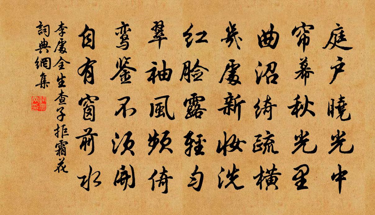 詩詞名句歷史字典書法欣賞書法字典國語詞典說文解字康熙字典古漢語字典標 題 作 者 詩 句 生查子(拒霜花)作者:李處全 朝代:宋代生查子(拒霜花)原文庭戶曉光中,簾幕秋光里。曲沼綺疏橫,幾處新妝洗。紅臉露輕勻,翠袖風頻倚。鸞鑑不須開,自有窗前水。詩詞問答問:生查子(拒霜花)的作者是誰?答:李處全問:生查子(拒霜花)寫於哪個朝代?答:宋代李處全生查子(拒霜花)書法欣賞生查子(拒霜花)書法作品詩詞推薦山棗道中廖行之〔宋代〕疾雷將雨風怒號,夜半破屋聲嘈嘈。平明野水一犂滿,浮雲忽散青山高。三湘歸來故清絕,半載何事徒捐勞。可憐答顏復國博蘇轍〔宋代〕歲晚河水留畫船,一軒修竹喜蕭然。詩詞溫厚新成格,道論精微近入禪。病後不勝清醑釅,別時仍得舊書傳。欲成鴛鴦篇陳子昂〔唐代〕飛飛鴛鴦鳥。舉翼相蔽虧。俱來綠潭裡。共向白雲涯。音容相眷戀。羽翮兩逶迤。苹萍戲春渚。霜霰繞寒池。浦沙益壽美金花侯善淵〔元代〕玄元微密。寂寂寥寥無縫入。探賾功奇。易象先天合聖機。混然一*。拍塞沖虛無不濟。極目清光。頓覺融風天地皇極經世一元吟邵雍〔宋代〕天地如蓋軫,覆載何高極。日月如磨蟻,徃來無休息。上下之歲年,其數難窺測。且以一元言,其理尚可識。一十長安春暮潘鹹〔唐代〕客在關西春暮夜,還同江外已清明。三更獨立看花月,惟欠子規啼一聲。減字木蘭花(貽亢之)吳則禮〔宋代〕淮山清夜。鏡面平鋪纖月掛。端是生還。同倚西風十二欄。休論往事。投老相逢真夢寐。兩鬢疏疏。好在松江一尺和王師中胡宏〔宋代〕誰驚河凍履秋霜,今日金湯古壞牆。未見主人來北道,但聞群盜去南塘。憂時我不嗟留滯,訪道公能適莽蒼。絳帳迎春樂 贈劉先生馬鈺〔元代〕斗杓運轉初臨陣。自然陽氣騰騰。那堪青鳥傳消信。土牛擊,知時分。日行西陸金光瑩。黃芽瑞草靈芝潤。賞玩九大堤女袁宏道〔明代〕文窗斜對木香籬,胡粉薄施細作眉。貪向牆頭看車馬,不知裙著刺花兒。 頌十六首釋慧暉〔宋代〕武帝功德人天果,圓覺無功真到心。清淨本然誰會得,碧蘿深鎖古山岑。貽富室翁杜范〔宋代〕蔥療丹田麥療飢,蔥羹麥飯兩相宜。請君試上城頭望,多少人家午未炊。臨江仙(為顧致堯生日)韓淲〔宋代〕難老一杯春酒美,主人玉鑒清秋。九華山下共追游。朝來多爽氣,都向筆端收。台閣功名歸去好,便應袞袞公侯。寢室二絕劉克莊〔宋代〕眾已咍噎猶待月,身堪扶策便尋春。漏名牛黨贊皇黨,尚有蒙人苦縣人。隋柳汪遵〔唐代〕夾浪分堤萬樹余,為迎龍舸到江都。君看靖節高眠處,只向衡門種五株。臘日宣詔幸上苑 / 催花詩武則天〔唐代〕明朝游上苑,火速報春知。花須連夜發,莫待曉風吹。似告成寺主僧蟾秋海陳著〔宋代〕出宮牆外步冬暄,轉憩黃花翠竹邊。一笑偈言非本色,相留清供亦前緣。土酥飣潔昏眵醒,湯乳包香老齒便。只恐玉樓春·驚沙獵獵風成陣元好問〔金代〕驚沙獵獵風成陣,白雁一聲霜有信。琵琶腸斷塞門秋,卻望紫台知遠近。深宮桃李無人問,舊愛玉顏今自恨。明妃會同年共樂台黃公度〔宋代〕蘭省三千士,莆陽十五人。此時鄉曲會,異日廟堂身。名塞乾坤隘,恩沾雨露新。天邊三雁遠,回首獨凝神。和王和禮留別韻胡仲參〔宋代〕歸騎匆匆十日程,客身猶自戀桐城。未應江左追王建,且去隆中臥孔明。雞黍幾番陪夜話,鶯花一路伴伶聲。秦溪名句推薦柳鎖鶯魂,花翻蝶夢,自知愁染潘郎史達祖《夜合花·柳鎖鶯魂》 賞罰如加於身,賦斂如取己物。此愛民之道也。姜子牙《六韜·文韜·國務》 燕支長寒雪作花,蛾眉憔悴沒胡沙。李白《王昭君二首》 半天涼月色,一笛酒人心。袁枚《夜過借園見主人坐月下吹笛》 殘雪庭陰,輕寒簾影,霏霏玉管春葭。王沂孫《高陽台·和周草窗寄越中諸友韻》 鹿車何日駕,歸去潁東田。歐陽修《秋懷》 此去與師誰共到,一船明月一帆風。韋莊《送日本國僧敬龍歸》 聞名不如見面,見面勝似聞名。施耐庵《水滸傳·第三回》 滄江好煙月,門系釣魚船。杜牧《旅宿》 早成者未必有成,晚達者未必下達。不可以年少而自恃,不可以年老而自棄。馮夢龍《警世通言·卷十八》