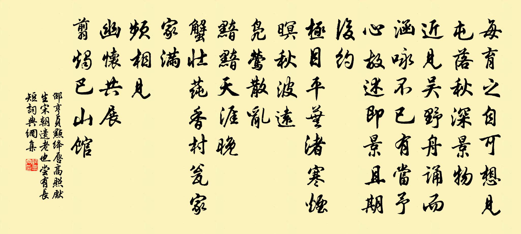 詩詞名句歷史字典書法欣賞書法字典國語詞典說文解字康熙字典古漢語字典標 題 作 者 詩 句 點絳唇 高照 先生,宋朝遺老也,嘗有長短作者:邵亨貞 朝代:元代原文每育之,自可想見屯落秋深景物。近見吳野舟誦,而涵詠不已,有當予心,故述即景,且期後約。極目平蕪,渚寒煙暝秋波遠。鳧鶯散亂。黯黯天涯晚。蟹壯蓴香,村瓮家家滿。頻相見。幽懷共展。翦燭巴山館。詩詞問答問:《點絳唇 高照 先生,宋朝遺老也,嘗有長短》的作者是誰?答:邵亨貞問:該詩寫於哪個朝代?答:元代問:該詩是什麼體裁?答:詞書法欣賞點絳唇 高照 先生,宋朝遺老也,嘗有長短書法作品詩詞推薦詠懷阮籍〔魏晉〕駕言發魏都,南向望吹台。蕭管有遺音,梁王安在哉?戰士食糟糠,賢者處蒿萊。歌舞曲未終,秦兵已復來。夾林巴嶺張至龍〔宋代〕處處柴門掩半邊,鶯啼綠樹隔炊煙。竹梯閒倚柔桑畔,定是人家蠶正眠。初除主客郎中知制誥,與王十一、李七、元九白居易〔唐代〕閒宵靜話喜還悲,聚散窮通不自知。已分雲泥行異路,忽驚雞鶴宿同枝。紫垣曹署榮華地,白髮郎官老丑時。莫怪偈頌三首釋先〔宋代〕十二月初一,歲事將周畢。臘月火燒山,旱雷轟霹靂。瞌睡師僧驚覺來,三九依前二十七。隆興書堂自警三十五首陳淳〔宋代〕顏子不貳境,如判桐葉然。一絕不復續,何嘗有遺根。和海棠韻衛宗武〔宋代〕鬢霧鬟雲襯臉紅,嫣然一笑倚春風。直疑傾國傾城魄,聚入此花顏色中。漁家傲王以寧〔宋代〕往事閒思人共怕。十年塞上煙塵亞。百萬鐵衣馳鐵馬。都弄罷。八風斷送歸蓮社。賣藥得錢休教化。歸來醉臥蝸牛和陳叔易就晁以道求長松張表臣〔宋代〕暫隱嵩高六六峰,未乘雲氣御飛龍。自餐白石求黃石,更采長松寄赤松。頌古十七首釋道行〔宋代〕土埋處處鐵菱角,半夜經由未覺難。天曉嶺根傷中倒,方知行過鐵門關。貽友人杜牧〔唐代〕自是東西客,逢人又送人。不應相見老,只是別離頻。度日還知暮,平生未識春。倘無遷谷分,歸去養天真。送詩僧隆瘦岩趙希桐〔宋代〕五載京華客,山中坐得牢。禪心天竺石,吟思浙江濤。入派名隨重,遊方步轉高。秋風飛錫遠,相憶讀離騷。紹興祀岳鎮海瀆四十三首佚名〔宋代〕赫赫作鎮,幽朔之垂。兼福我民,食哉具宜。克配彼岳,有嚴等衰。蠲我灌禮,其敢不祗。渡漢江(一作戴叔倫詩,題作江行)丘為〔唐代〕漾舟漢江上,掛席候風生。臨泛何容與,愛此江水清。蘆洲隱遙嶂,露日映孤城。自顧疏野性,難忘鷗鳥情。聊復萱李嶠〔唐代〕屣步尋芳草,忘憂自結叢。黃英開養性,綠葉正依籠。色湛仙人露,香傳少女風。還依北堂下,曹植動文雄。和毛國鎮白雲莊五詠 白雲莊偶題毛維瞻〔宋代〕歸去攜家住白雲,雲中猿鶴許同群。陶公酒後詩偏好,疏傅金餘客屢醺。芒履潛行逐漁釣,壺漿時出勞耕耘。即看偈頌二百零五首釋正覺〔宋代〕一日不作,一日不食,歇者無心穫者力。分明只個是家風,會得種田博飯喫。柳梢青(故蜀燕王宮海棠之盛,為成都第一,今屬張氏)陸游〔宋代〕錦里繁華。環宮故邸,疊萼奇花。俊客妖姬,爭飛金勒,齊駐香車。何須幕障幃遮。寶杯浸、紅雲瑞霞。銀燭光中端居感懷韋應物〔唐代〕沈沈積素抱,婉婉屬之子。永日獨無言,忽驚振衣起。方如在幃室,復悟永終已。稚子傷恩絕,盛時若流水。暄涼點絳唇張掄〔宋代〕樂事難並,少年常恨春宵短。萬花叢畔。只恐金杯淺。方喜春來,又嘆韶華晚。頻相勸。且聞強健。莫厭花經眼。登壽沙和抑齋韻李曾伯〔宋代〕境占祝融勝,鎮從盤古為。車航一都會,鼎鼐幾樓台。遠水便鷗狎,前峰約雁回。當思牧民意,保養甚於胎。名句推薦貴名不可以比周爭也,不可以誇誕有也,不可以勢重脅也荀子《荀子·儒效》 淚滴千千萬萬行,更使人、愁腸斷。樂婉《卜運算元·答施》 青苔滿階砌,白鳥故遲留。杜牧《題揚州禪智寺》 畫棟朝飛南浦雲,珠簾暮卷西山雨。王勃《滕王閣詩》 碧玉妝成一樹高,萬條垂下綠絲絛。賀知章《詠柳 / 柳枝詞》 忽憶故人天際去,計程今日到梁州。白居易《同李十一醉憶元九》 夜寒驚被薄,淚與燈花落納蘭性德《菩薩蠻·蕭蕭幾葉風兼雨》 中原事業如江左,芳草何須怨六朝。納蘭性德《秣陵懷古·山色江聲共寂寥》 虛空落泉千仞直,雷奔入江不暫息。徐凝《廬山瀑布》 白首相知猶按劍,朱門先達笑彈冠。王維《酌酒與裴迪》