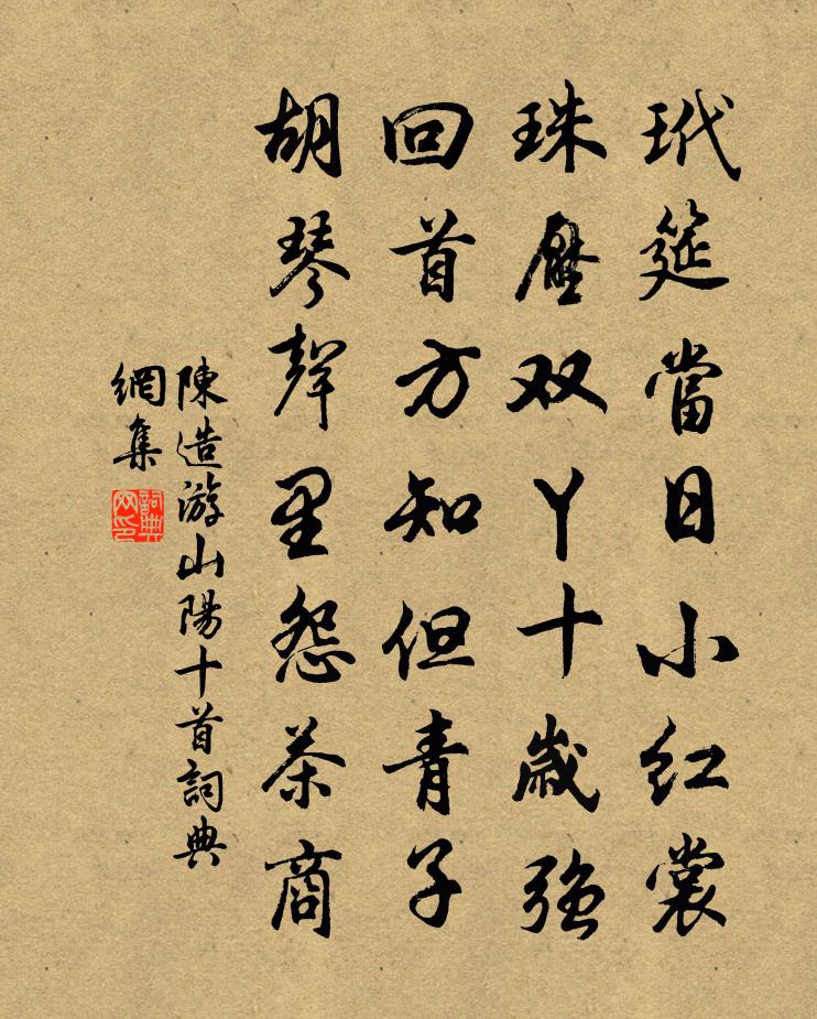 詩詞名句歷史字典書法欣賞書法字典國語詞典說文解字康熙字典古漢語字典標 題 作 者 詩 句 游山陽十首作者:陳造 朝代:宋代游山陽十首原文玳筵當日小紅裳,珠壓雙丫十歲強。回首方知但青子,胡琴聲里怨茶商。詩詞問答問:游山陽十首的作者是誰?答:陳造問:游山陽十首寫於哪個朝代?答:宋代陳造游山陽十首書法欣賞游山陽十首書法作品詩詞推薦送鄭司直歸上都劉長卿〔唐代〕歲歲逢離別,蹉跎江海濱。宦遊成楚老,鄉思逐秦人。馬首歸何日,鶯啼又一春。因君報情舊,閒慢欲垂綸。十二月二十五日行次渭原走寄熙帥范巽之張舜民〔宋代〕凍雲積雪黯洮泯,晏歲軺車晤過秦。夾道清渠翻白浪,繞山鐵馬走黃塵。歸鴻裊裊寧無信,塞柳依依欲弄春。今夕感興二首於石〔宋代〕游魚聞餌香,寧悟鉤入口。不忍一朝飢,竟落漁人手。捕雉必以媒,相呼欣得偶。失身羅網中,乃為媒所誘。嗟哉竹溪直院盛稱起予草堂詩之善暇日覽之多有可劉克莊〔宋代〕種蠡功名士,吾評蠡最優。五湖足春水,一葉寄扁舟。變姓乘單舸,翻身退急流。千金徒鑄象,萬里孰馴鷗。震澤送碼碯石屏朱復之〔宋代〕削出雲岑一片奇,天然玉瑩澤如脂。祗堪棐几旁邊看,頗與文房輩行宜。香篆自縈黃奶卷,飛花不點墨卿池。粗官盤墅思親黃由〔宋代〕才到松陵即是家,仙翁詩句發天葩。鈍才不及賡餘韻,留取時時罩碧紗。秋雨內宴(乙卯年作)韓偓〔唐代〕一帶清風入畫堂,撼真珠箔碎玎璫。更看檻外霏霏雨,似勸須教醉玉觴。登江華寒亭樂雷發〔宋代〕到此腳跟酸,千峰迥不看。年深碑字淺,日薄樹陰寒。石罅巢蜂乳,籬根墮鳥殘。愛吟還畏嶮,不敢倚欄乾。句俞桂英〔宋代〕母念子行遠,兒雲爺未歸,秋暮書懷張舜民〔宋代〕憶昔曾游處,俄經二十年。重來人不識,獨想事依然。北海知劉備,荊州小仲宣。如何騎駿馬,徼倖學開邊。益陽諺佚名〔唐代〕長沙益陽,一時相卬。奉和聖制送不蒙都護兼鴻臚卿歸安西應制王維〔唐代〕上卿增命服。都護揚歸旆。雜虜盡朝周。諸胡皆自鄶。鳴笳瀚海曲。按節陽關外。落日下河源。寒山靜秋塞。萬方尋詩兩絕句陳與義〔宋代〕楚酒困人三日醉,園花經雨百般紅。無人畫出陳居士,亭角尋詩滿袖風。答孟郊韓愈〔唐代〕規模背時利,文字覷天巧。人皆余酒肉,子獨不得飽。才春思已亂,始秋悲又攪。朝餐動及午,夜諷恆至卯。名聲送人往虔州劉商〔唐代〕莫嘆乘軺道路賒,高樓日日望還家。人到南康皆下淚,唯君笑向此中花。高宗郊祀前廟朝享太廟三十首真宗〔宋代〕明哲煌煌,照臨無疆。紹述先志,寔宣重光。詒謀燕翼,率由舊章。苾芬孝祀,降福穰穰。秋夜對月懷李正封鮑溶〔唐代〕援琴悵獨立,高月對秋堂。美人遠於月,徒望空景光。坐憶執手時,七弦起淒涼。平生知音少,君子安可忘。客意紹興送妻弟任縣尉歸邵武二首項安世〔宋代〕珍重任公子,君行定幾時。重來未有日,此別可無時。帶雨登閩嶠,因□想蜀碑。兩翁門戶在,努力慰相思。景龍二年余自門下平章事削階授江州員外司馬…途中言志崔湜〔唐代〕余本燕趙人,秉心愚且直。群籍備所見,孤貞每自飭。徇祿期代耕,受任亦量力。幸逢休明時,朝野兩薦推。一朝句晏殊〔宋代〕衣上六花非所好,畝間盈尺是吾心。名句推薦霰雪紛其無垠兮,雲霏霏而承宇。屈原《九章》 秋風蕭瑟,洪波湧起。曹操《觀滄海 / 碣石篇》 一身虜雲外,萬里胡天西。岑參《早發焉耆懷終南別業》 玉皇開碧落,銀界失黃昏。毛滂《臨江仙·都城元夕》 寂歷秋江漁火稀,起看殘月映林微。湯顯祖《江宿》 停車數行日,勸酒問回期。王建《送人游塞》 牧童歸去橫牛背,短笛無腔信口吹。雷震《村晚》 琴里知聞唯淥水,茶中故舊是蒙山。白居易《琴茶》 謹身節用,以養父母孔子及其弟子《孝經·庶人》 運退黃金失色,時來鐵也生光。馮夢龍《醒世恆言·卷三》