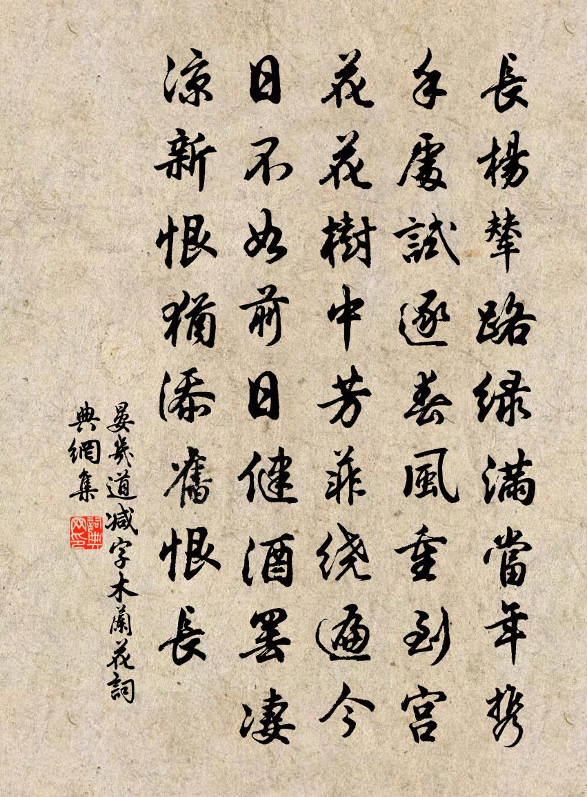 長楊輦路。綠滿當年攜手處。試逐春風。重到宮花花樹中。