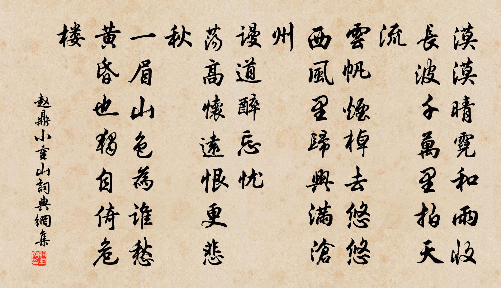 漠漠晴霓和雨收。長波千萬里,拍天流。