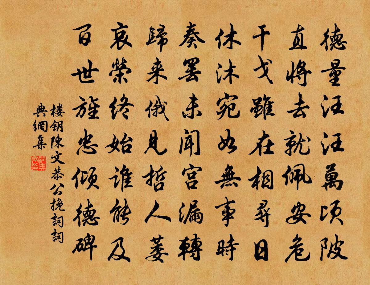 詩詞名句歷史字典書法欣賞書法字典國語詞典說文解字康熙字典古漢語字典標 題 作 者 詩 句 陳文恭公輓詞作者:樓鑰 朝代:宋代陳文恭公輓詞原文德量汪汪萬頃陂,直將去就佩安危。干戈雖在相尋日,休沐宛如無事時。奏罷未聞宮漏轉,歸來俄見哲人萎。哀榮終始誰能及,百世旌忠傾德碑。詩詞問答問:陳文恭公輓詞的作者是誰?答:樓鑰問:陳文恭公輓詞寫於哪個朝代?答:宋代樓鑰陳文恭公輓詞書法欣賞陳文恭公輓詞書法作品詩詞推薦山僧蘭若顧況〔唐代〕絕頂茅庵老此生,寒雲孤木伴經行。世人那得知幽徑,遙向青峰禮磬聲。萬年歡 應制趙孟頫〔元代〕閶闔初開。正蒼蒼曙色,天上春回。絳幘雞人時報,禁漏頻催。九奏鈞天帝樂,御香惹、千官環佩。鳴鞘靜,嵩岳浣沙溪(黃鐘·第三)周邦彥〔宋代〕樓上晴天碧四垂。樓前芳草接天涯。勸君莫上最高梯。新筍已成堂下竹,落花都上燕巢泥。忍聽林表杜鵑啼。答劉競張籍〔唐代〕劉君久被時拋擲,老向城中作選人。昨日街西相近住,每來存問老夫身。大梅山樓鑰〔宋代〕此山名大梅,驅車入山麓。試問山中人,山名竟誰屬。禪家開道場,為說梅子熟。仙家指為岩,曾此隱梅福。或雲歸將吟施肩吾〔唐代〕百戰放歸成老翁,餘生得出死人中。今朝授敕三回舞,兩賜青娥又拜公。城東閒行因題尉遲司業水閣白居易〔唐代〕閒繞洛陽城,無人知姓名。病乘籃輿出,老著茜衫行。處處花相引,時時酒一傾。借君溪閣上,醉詠兩三聲。自詠陸游〔宋代〕宦遊疇昔偏天涯,萬里東歸歲月賒。古道泥塗居士屩,荒畦煙雨故侯瓜。園公溪父逢皆友,野寺山郵到即家。病思江畔老人愁崔顥〔唐代〕江南年少十 * ,乘舟欲渡青溪口。青溪口邊一老翁,鬢眉皓白已衰朽。自言家代仕梁陳,垂朱拖紫三十人。兩朝景禪人求頌釋正覺〔宋代〕混處還須轉側看,底時妙在一絲端。閒雲卷雨秋空闊,明月流輝夜水寒。棹破波光華細碎,夢驚蓬曉影團圞。真機鷓鴣天何澹〔宋代〕庾嶺移來傍桂叢。繞花安敢望凌風。癯儒合作孤芳伴,四面相看一笑同。冰照座,玉橫空。雪花零落暗香中。有人重九山陽儀真兩使君送酒陳造〔宋代〕酒會文期興尚濃,佳辰一笑坐天窮。兩州各遣六從事,九日俄成一病翁。詩不受催空急雨,帽無緣落任西風。明朝宿壽安甘棠館尚顏〔唐代〕行人方倦役,到此似還鄉。流水來關外,青山近洛陽。溪雲歸洞鶴,松月半軒霜。坐恐晨鐘動,天涯道路長。山空朝拜元陵包佶〔唐代〕宮前石馬對中峰,雲里金鋪閉幾重。不見露盤迎曉日,唯聞木斧扣寒松。余既和樂天詩而喜於年及之心猶不能自已又復吳芾〔宋代〕一年三百有餘旬,舉世棲棲苦迫貧。得享安寧七十歲,已勝衰謝萬千人。好官縱使登三事,榮養何由及二親。爭似忠州禹廟陸游〔宋代〕古郡巴蠻國,空山夏禹祠。鴉歸暗庭柏,巫拜薦江蘺。草蔓青緣壁,苔痕紫滿碑。欲歸頻悵望,回棹夕陽時。九日同盧使君幼平吳興郊外送李司倉赴選皎然〔唐代〕重陽千騎出,送客為踟躕。曠野多搖落,寒山滿路隅。晴空懸蒨旆,秋色起菱湖。幾日登司會,揚才盛五都。山居雜詩九十首曹勛〔宋代〕春雪翳重霄,寒雨連日夜。不輟獸炭熾,甚恐庭花謝。疏簾莫御冷,爐焚屢成灺。寒食數日間,春事求諸野。六月五日池上晁公溯〔宋代〕蒼然暮色來,初月光尚微。河漢亦不高,仰看天四垂。眾星一何多,粲若天圍碁。忽驚毛骨清,漙露沾我衣。放杯秋雨嘆十解楊萬里〔宋代〕籬下黃花最恨他,金鈿香少淚痕多。仙人解補銀河漏,天上無泥奈許何?名句推薦窮巷多怪,曲學多辯。商鞅《商君書·更法》 春雨樓頭尺八簫,何時歸看浙江潮?蘇曼殊《本事詩十首·選二》 管中窺豹,所見不多;坐井觀天,知識不廣。程登吉《幼學瓊林·卷三·人事》 鞭撲之子,不從父之教劉向《說苑·雜言》 黃河萬里觸山動,盤渦轂轉秦地雷。李白《西嶽雲台歌送丹丘子》 烏啼隱楊花,君醉留妾家。李白《楊叛兒》 人有賢愚,任人勿求過己。來俊臣《羅織經·固榮卷第六》 紗廚藤簟,玉人羅扇輕縑。白樸《天淨沙·夏》 雨下飛花花上淚,吹不去,兩難禁陳子龍《唐多令·寒食》 無父無君,是禽獸也。孟子《孟子·滕文公章句下·第九節》