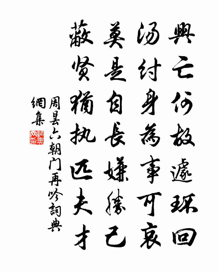 詩詞名句歷史字典書法欣賞書法字典國語詞典說文解字康熙字典古漢語字典標 題 作 者 詩 句 六朝門再吟作者:周曇 朝代:唐代六朝門再吟原文興亡何故遽環回,湯紂身為事可哀。莫是自長嫌勝己,蔽賢猶執匹夫才。詩詞問答問:六朝門再吟的作者是誰?答:周曇問:六朝門再吟寫於哪個朝代?答:唐代周曇六朝門再吟書法欣賞六朝門再吟書法作品注釋全唐詩:卷729-69詩詞推薦雪霽陸游〔宋代〕米盡囊空莫問渠,天公自解養迂疏。雪泥壅路斷來客,朝日滿窗宜讀書。漸暖橫林聞語鳥,乍晴幽圃富嘉蔬。東家記辛酉端午舊事二首劉克莊〔宋代〕老子從來寵利輕,於棋待詔昧平生。內中稱賞秦郎帖,御筆批依不必更。題王倅來泉王炎〔宋代〕寒泉一竇行修渠,日夜輸來為納湖。荷花菱葉並籬落,平分十頃青玻璃。錫山老湫暗流注,此泉疑自玉龍吐。問公老去吟邵雍〔宋代〕使吾卻十歲,亦可少集事。奈何天地間,日無再中理。次吳菊潭八月十四夜韻二首葉茵〔宋代〕來夕九秋半,月同心跡清。已知千里共,祗欠一分明。流水往來影,幽人今古情。撞鐘先得句,塵世不須驚。銅官道中二首陳造〔宋代〕盡日巉岩峻陟,有時罷亞橫陳。看雲不妨拄笏,耦耕定自知津。游熙六年端午帖子詞皇后合五首崔敦詩〔宋代〕瑞麥登時物,香蒲薦壽祺。珠囊新樣小,蹙就葛覃詩。聞蟬鮑溶〔唐代〕高蟬旦夕唳,景物浮涼氣。木葉漸驚年,錦字因絡緯。稍斷當窗夢,更淒臨水意。清香筍蒂風,曉露蓮花淚。餘引故趙王屬贈黃門侍郎上官公輓詞二首宋之問〔唐代〕韋門旌舊德,班氏業前書。謫去因丞相,歸來為婕妤。周原烏相冢,越嶺雁隨車。冥漠辭昭代,空憐賦子虛。綠車少年行李百藥〔唐代〕少年飛翠蓋,上路勒金鑣。始酌文君酒,新吹弄玉簫。少年不歡樂,何以盡芳朝。千金笑裡面,一搦掌中腰。掛纓{左氵右壑}耕雲敬得方丈顧逢〔宋代〕耕雲老子久相期,同賦山中鶯燕詩。可惜我來遲數日,牡丹過了有花時。石榴歌皮日休〔唐代〕蟬噪秋枝槐葉黃,石榴香老愁寒霜。流霞包染紫鸚粟,黃蠟紙裹紅瓠房。玉刻冰壺含露濕,斕斑似帶湘娥泣。蕭娘雨中寄孟刑部幾道聯句韓愈〔唐代〕秋潦淹轍跡,高居限參拜。——韓愈耿耿蓄良思,遙遙仰嘉話。 ——孟郊一晨長隔歲,百步遠殊界。 ——韓愈登鸛雀樓暢當〔唐代〕迥臨飛鳥上,高出世塵間。天勢圍平野,河流入斷山。行次塘堤蘇頌〔宋代〕淼淼寒流千里餘,帶城襟壘似江湖。侯王設險古未有,夷狄窺邊今遂無。數郡營屯歸耒耨,萬家生聚利菰蒲。長堤李佐國攜致中贈別詩來戲成二首劉子翬〔宋代〕星郎絕筆版曹臥,懶翁病翁稀綴文。豈料詩壇今再鼓,蕭屯賴有故將軍。過蒼嶺樓鑰〔宋代〕黃雲滿塢沙田稻,白雪漫山薺菜花。路人縉雲頻借問,碧香酒好是誰家。次程平叔韻二首陳造〔宋代〕詩情對景可勝長,酒與鵝兒鬧嫩黃。忠貫主人真好事,肯來訾省沈東陽。生查子·含羞整翠鬟歐陽修〔宋代〕含羞整翠鬟,得意頻相顧。雁柱十三弦,一一春鶯語。嬌雲容易飛,夢斷知何處。深院鎖黃昏,陣陣芭蕉雨。偈十三首釋法泰〔宋代〕推真真無有相,窮妄妄無有形。真妄兩無所有,廓然露出眼睛。眼睛既露,見個什麽。曉日爍開岩畔雪,朔風吹綻名句推薦柳色黃金嫩,梨花白雪香。李白《宮中行樂詞八首》 事以密成,語以泄敗。韓非及後人《韓非子·說難》 風絮飄殘已化萍,泥蓮剛倩藕絲縈。納蘭性德《山花子·風絮飄殘已化萍》 借與門前磐石坐,柳陰亭午正風涼。范成大《夏日田園雜興》 見一葉落,而知歲之將暮劉安及其門客《淮南子·說山訓》 獨抱影兒眠,背看燈花落。汪懋麟《誤佳期·閨怨》 停船暫借問,或恐是同鄉。崔顥《長干行·君家何處住》 碧海年年,試問取、冰輪為誰圓缺?納蘭性德《琵琶仙·中秋》 驪山語罷清宵半,淚雨霖鈴終不怨。納蘭性德《木蘭詞·擬古決絕詞柬友》 活水源流隨處滿,東風花柳逐時新。于謙《觀書》
