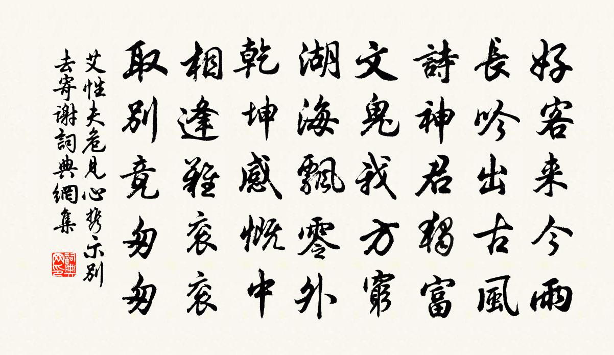 詩詞名句歷史字典書法欣賞書法字典國語詞典說文解字康熙字典古漢語字典標 題 作 者 詩 句 危見心攜示別去寄謝作者:艾性夫 朝代:宋代危見心攜示別去寄謝原文好客來今雨,長吟出古風。詩神君獨富,文鬼我方窮。湖海飄零外,乾坤感慨中。相逢難袞袞,取別竟匆匆。詩詞問答問:危見心攜示別去寄謝的作者是誰?答:艾性夫問:危見心攜示別去寄謝寫於哪個朝代?答:宋代問:危見心攜示別去寄謝是什麼體裁?答:五律艾性夫危見心攜示別去寄謝書法欣賞危見心攜示別去寄謝書法作品詩詞推薦丁酉除夕陸游〔宋代〕浮生過五十,光景如飛鴻;寒暑俛仰間,四序忽已終。殊方感漂泊,晚境嗟龍鍾。桃符輿爆竹,嬾復隨兒童。不寐泛汴寄清侄吳則禮〔宋代〕莫咤別愁關老鬢,且論幽討入奇懷。忽思白魚淮海去,付與清秋鴻雁來。不為督郵聊轉柁,要呼從事試登台。老夫邦衡再送二詩一和為甚酥二和牛尾貍周必大〔宋代〕追跡猶應怨獵徒,截肪何敢恨庖廚。鱠鱸湖上休夸玉,煮豆瓶中未是酥。伴食偏宜十字餅,先驅正賴一卮餬。卻因故袍陸游〔宋代〕青衫猶是國工裁,破篋塵侵手自開。莫笑渾如霜葉闇,兩朝曾見聖君來。富陽陳大夫遣二吏抄俚文用寫道寓於文之意還曾豐〔宋代〕道固無方實以書,要於書悟道之虛。雷風水火易經始,草木魚蟲詩緒餘。萬理所歸為寶藏,一真之外是蘧廬。俚編次韻張進彥見寄二首王之道〔宋代〕坐想雲煙走筆端,夜喔佳制老忘寒。一時思致追長慶,千載風流識建安。接武尚稽班玉筍,昂霄終合待金鑾。自憐歲暮鄭剛中〔宋代〕頑風動高空,陰雲壓平野。霰雪跳珠璣,歷亂擊疏瓦。袖手對寒窗,寂寞如噤啞。良朋莫相過,誰可慰懷者。豈不留贈杜牧〔唐代〕舞靴應任閒人看,笑臉還須待我開。不用鏡前空有淚,薔薇花謝即歸來。題陳所翁為葉半隱作全龍邀同賦艾性夫〔宋代〕鴟夷飲江共曉汲,麈尾拂屏翻墨汁。密雲黯黯扶天來,黑風冥冥吹海立。濤奔浪駭恣神怪,驚起蒼龍九淵蟄。須冉赤口灘陳造〔宋代〕漢江多惡灘,赤口乃其最。前年將家上,正值江流殺。奔衖震溝畝,狼石森戟鐓。贔屓取進寸,一跌尋丈退。聞此謁武肅王廟一絕呈汪帥卿錢時〔宋代〕干戈五紀亂如煙,吳越生成八十年。遺像塵昏碑露立,三間敗屋獨蕭然。送崔邠拾遺盧綸〔唐代〕皎潔無瑕清玉壺,曉乘華幰向天衢。石建每聞宗謹孝,劉歆不敢衒師儒。諫修郊廟開宸慮,議按休徵淺瑞圖。今日復陰杜甫〔唐代〕方冬合沓玄陰塞,昨日晚晴今日黑。萬里飛蓬映天過,孤城樹羽揚風直。江濤簸岸黃沙走,雲雪埋山蒼兕吼。君不古斷腸曲三十首周端臣〔宋代〕玉纎無力怯梳頭,鏡裹容顏見自羞。一陣落紅簾外雨,十分春是十分愁。和王師中胡宏〔宋代〕誰驚河凍履秋霜,今日金湯古壞牆。未見主人來北道,但聞群盜去南塘。憂時我不嗟留滯,訪道公能適莽蒼。絳帳和寄喻景山陳宓〔宋代〕朱門到老幾人還,贏得階庭著蘚班。曾似高人無俗累,解將碧巘照朱顏。趣超今古沉酣外,句入雲煙縹緲間。白首不寐十首方回〔宋代〕細字昏難讀,孤燈冷獨挑。黃虀余口味,白豆驗心苗。玉枕方春夢,金門正早期。先生唯默坐,窗外雨蕭蕭。樂清道中二首葛紹體〔宋代〕雅淡風光近上元,迎神簫鼓自年年。客行不趁花燈市,月滿寒江水拍天。自合浦還清湘寄虛中弟陳瓘〔宋代〕三年已絕生還望,一日天恩到海涯。路過清湘猶間闊,當時何不住長沙。句李景遂〔唐代〕路指丹陽分虎節,心存雙闕戀龍顏。名句推薦五更鐘動笙歌散,十里月明燈火稀。賀鑄《思越人·紫府東風放夜時》 憶君遙在瀟湘月,愁聽清猿夢裡長。王昌齡《送魏二》 運往無淹物,年逝覺已催。謝靈運《歲暮》 糟糠不飽者不務粱肉,短褐不完者不待文繡。韓非及後人《韓非子·五蠹》 張翰江東去,正值秋風時。李白《送張舍人之江東》 北風利如劍,布絮不蔽身。白居易《村居苦寒》 用之在於機,顯之在於勢。姜子牙《六韜·文韜·兵道》 以反求諸己為要法,以言人不善為至戒。胡宏《知言·文王》 角聲吹徹小梅花。夜長人憶家。趙長卿《阮郎歸·客中見梅》 桑柘影斜春社散,家家扶得醉人歸。王駕《社日》
