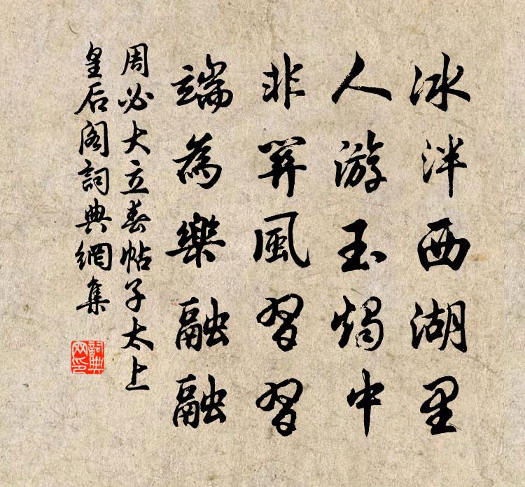 詩詞名句歷史字典書法欣賞書法字典國語詞典說文解字康熙字典古漢語字典標 題 作 者 詩 句 立春帖子太上皇后閣作者:周必大 朝代:宋代立春帖子太上皇后閣原文冰泮西湖里,人游玉燭中。非關風習習,端為樂融融。詩詞問答問:立春帖子太上皇后閣的作者是誰?答:周必大問:立春帖子太上皇后閣寫於哪個朝代?答:宋代周必大立春帖子太上皇后閣書法欣賞立春帖子太上皇后閣書法作品詩詞推薦躑躅蘇軾〔宋代〕楓林翠壁楚江邊,躑躅千層不忍看。開卷例知歸路近,劍南樵叟為施丹。玉壺即事杜范〔宋代〕雨過條風著柳芽,淡黃淺綠嫩如花。陂湖漾漾初侵路,蜂燕紛紛各理家。帶郭園林仙苑近,送春船舫繡簾遮。芸窗次韻叔羽聽琴詩李處權〔宋代〕嶧桐斲孫枝,所取非老大。比其爨之焦,孰謂邕也過。拂拭見太古,斷腹宛蛇臥。持來長安市,萬口莫能破。愛公訪紫芝回與子舒集葛天民〔宋代〕君參唐句法,親得浪仙衣。薄宦因吟苦,高風與世違。春寒留夜飲,月黑借燈歸。共隱知何日,空山老蕨薇。送趙局之官陳文蔚〔宋代〕琴書結束定何時,折贈新年梅一枝。詩過釣台天欲雪,春歸湖岸柳成絲。交遊文社頓成闊,富貴帝鄉今可期。小試德甫知丞大夫惠詩見招次韻李彌遜〔宋代〕地勝官肖人更幽,公田政足辨糟丘。吏情厭問可不可,世事但從浮自浮。綠蓋紅妝供客笑,黃雞白酒為君留。慣傾讀赤壁賦前後二首文天祥〔宋代〕昔年仙子謫黃州,赤壁磯頭汗漫遊。今古興亡真過影,乾坤俯仰一虛舟。人間憂患何曾少,天上風流更有不。我亦二十四詩品司空圖〔唐代〕絕佇靈素,少□清真。如覓水影,如寫陽春。風雲變態,花草精神;海之波瀾,山之嶙峋;俱似大道,妙契同塵。景靈宮聞子規楊萬里〔宋代〕今年未有子規聲,忽向宮中樹上鳴。告訴落花春不管,裴回曉月恨難平。斜風細雨又三月,柳絮浮雲空一生。豈不塞翁吟楊 * 〔宋代〕院宇臨池水,橋邊繞水朧。橋左右,水西東。水木兩芙蓉。低疑洛浦凌波步,高如弄玉凌空。葉百疊,蕊千重。歸自南康寄懷朱使君李呂〔宋代〕過盡重湖復過山,陰凝忽變雪花團。路迷曲折易成遠,風助橫斜巧送寒。憶昨片帆離渡口,特煩千騎駐江乾。如今臨江仙 壽程雪樓張伯淳〔元代〕白雪樓前清畫,新來喜事連綿。朱明綠暗麥秋天。繡衣何日去,丹荔已香傳。前夜團圓明月好,清光流照華筵。錦挽芸成秘校釋斯植〔宋代〕世上名猶在,閒情豈足悲。自憐吟日少,唯恨識君遲。蘭閣人亡後,寒林月上時。十年青史夢,只有老天知。題悟真寺盧綸〔唐代〕萬峰交掩一峰開,曉色常從天上來。似到西方諸佛國,蓮花影里數樓台。東軒陸游〔宋代〕榴花零落滿蒼苔,薝蔔忘憂亦已開。湖海片帆先已具,少安無躁待秋來。次韻方秘正陳造〔宋代〕靜女無媒未易昏,幽人樂地但琴樽。詩聲況自推侯喜,牆仞懸知陋叔孫。拜手行申不敏謝,慕賢正黯索居魂。拘拘學詩吟十首方回〔宋代〕宋詩孰第一,吾賞梅聖俞。綽有盛唐風,晚唐其劣諸。牛尾狸無敵,馬蹄鱉與俱。龍溪奏思陵,此產臣鄉閭。宣城贈聶堯張詠〔宋代〕聶堯懷抱所翹然,游心聖道三十年。智泉湍激橫碧海,文山奇崛凌青天。神充氣溢眸子好,常談儘是經綸道。早求句李兌〔宋代〕高鳥翔雲外。偈頌一百零四首釋紹曇〔宋代〕百二十日夏,今朝始發頭。飯抄雲子白,羹煮菜香浮。未問寒山子,先看水牯牛。山前千頃地,信腳踏翻休。名句推薦天長雁影稀,月落山容瘦,冷清清暮秋時候。盧摯《沉醉東風·重九》 兼聽則明,偏信則暗。司馬光《資治通鑑·唐紀八》 聲華實寡,危國亡土。佚名《黃帝四經·經法·亡論》 有不可及之志,必有不可及之功王永彬《圍爐夜話·第一三O則》 見未真,勿輕言。知未的,勿輕傳。李毓秀《弟子規·信》 漁舟逐水愛山春,兩岸桃花夾古津。王維《桃源行》 不怕官,只怕管。施耐庵《水滸傳·第二回》 生事且瀰漫,願為持竿叟。綦毋潛《春泛若耶溪》 日出東南隅,照我秦氏樓。佚名《陌上桑》 一觴雖獨盡,杯盡壺自傾。陶淵明《飲酒·其四》