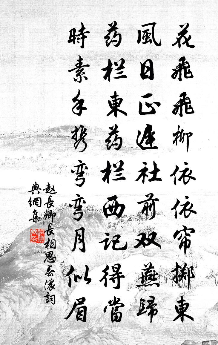 - 離愁正引千絲亂,更東陌、飛絮蒙蒙張先《一叢花令·傷高懷遠幾時窮》