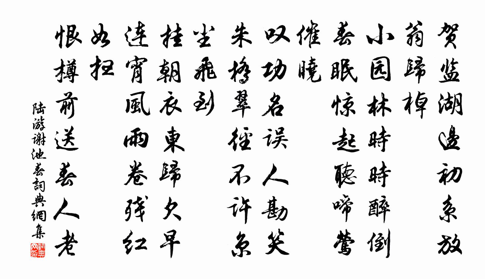 賀監湖邊,初系放翁歸棹。小園林、時時醉倒。