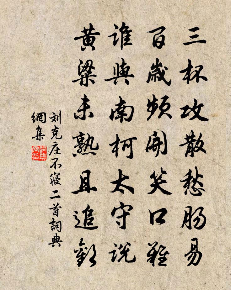 三杯攻散愁腸易,百歲頻開笑口難。誰與南柯太守說,黃粱未熟且追歡。