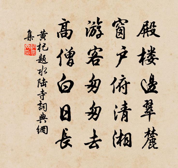 詩詞名句歷史字典書法欣賞書法字典國語詞典說文解字康熙字典古漢語字典標 題 作 者 詩 句 題水陸寺作者:黃杞 朝代:宋代題水陸寺原文殿樓邊翠麓,窗戶俯清湘。遊客匆匆去,高僧白日長。詩詞問答問:題水陸寺的作者是誰?答:黃杞問:題水陸寺寫於哪個朝代?答:宋代黃杞題水陸寺書法欣賞題水陸寺書法作品詩詞推薦謝張生見湛盧歌朱復之〔宋代〕劍術空疏今罷休,家山何處越中甌。欲談往事渾亡是,喜得新詩替莫愁。再次前韻二首陳造〔宋代〕未說高文錦不如,談間已勝十年書。是中我亦潛心久,作者君今舉切無。應俗不堪塵眯自,論交政復棘如須。獨憐僧房假榻陸游〔宋代〕過盡青山喚渡船,晚窗洗腳臥僧氈。剩償平日清游願,更結來生熟睡緣。吞啄漸稀如老鶴,鳴聲已斷似寒蟬。旁觀頌證道歌證道歌釋印肅〔宋代〕窮釋子,口稱貧,雪曲高歌和沒人。往來問道無言說,月在青天水在瓶。老大劉克莊〔宋代〕老大重登聘士台,客懷牢落可曾開。臨流往往看鳶墮,入蜀時時見馬來。有約青山何日去,無根白髮是誰栽。自嫌和董職方見示初到番禺詩余靖〔宋代〕五方殊俗古難並,千載猶存古越城。客聽潮雞迷早夜,人瞻颶母識陰晴。波濤洶湧天邊闊,犀象斕斒徼外生。太守清遠舟中寄耘老蘇軾〔宋代〕小寒初渡梅花嶺,萬壑千岩背人境。清遠聊為泛宅行,一夢分明墮鄉井。覺來滿眼是湖山,鴨綠波搖鳳凰影。海陵吳傳朋書簡帖贊岳珂〔宋代〕小書楷則本晉人,降而唐世體益真。妙趨要識筆有神,行行清妍雜奇偉。丙辰二月二日喜晴釋行海〔宋代〕殘梅一片過晴檐,忽感春風三十三。舊雁自歸江北去,鶯花只是戀江南。偈頌一百六十首釋宗杲〔宋代〕文殊三處安居,志公不是閒和尚。迦葉欲行正令,未免眼前見鬼。歸來徐瑞〔宋代〕歸來便覺此身尊,傲世猶嫌習氣存。已是半生走風雨,但持一笑信乾坤。貧閒且復逃空谷,自衒終羞倚市門。擇勝偈二十二首釋洵〔宋代〕吾君收得中原寶,塞外煙塵淨如掃。萬國歌謠賀太平,家家門館長安道。李士元學士守臨邛日有谷一莖九穟者數本芝數梅堯臣〔宋代〕臨邛傳瑞物,太守在郡時。既多九穟谷,復有三秀芝。芝以保萬壽,谷以豐東菑。更看芙容葉,並蒂照清池。題竹軒釋文珦〔宋代〕窗前有修竹,道人心自足。清風入詩腸,何用五鼎肉。菩薩蠻(初冬)趙長卿〔宋代〕敗荷倒盡芙蓉老。寒光黯淡迷衰草。行客易銷魂。笛飛何處村。雲寒天借碧。樹瘦煙籠直。若個是鄉關。夕陽西去插秧歌契此〔五代〕手捏青苗種福田,低頭便見水中天。六根清淨方成稻,後退原來是向前。示韓令人釋宗杲〔宋代〕說不到處著一句,風前截斷千差路。超佛越祖只如今,壁立萬仞無回互。讀狄梁公傳張祜〔唐代〕失運廬陵厄,乘時武后尊。五丁扶造化,一柱正乾坤。上保儲皇位,深然國老勛。聖朝雖百代,長合問王孫。偈頌一百零二首釋紹曇〔宋代〕三十餘僧眼似眉,白雲深處聚頭嬉。燒枯柴火煨山芋,拽木羅籠總不知。天人閣端午帖子詞宋庠〔宋代〕漢家宮掖與天連,桃印金刀瑞氣鮮。朱夏雖稱五之日,皇圖自樂萬斯年。名句推薦閒鷺棲常早,秋花落更遲。錢起《谷口書齋寄楊補闕》 長風蕭蕭渡水來,歸雁連連映天沒。盧思道《從軍行》 借問漢宮誰得似,可憐飛燕倚新妝。李白《清平調·其二》 暖風熏得遊人醉,直把杭州作汴州。林升《題臨安邸》 用兵之道,先勝後戰。陳壽《三國志·魏書·荀彧攸賈詡傳》 曾把芳心深相許。故夢勞詩苦。史達祖《留春令·詠梅花》 懸衡而知平,設規而知圓。韓非及後人《韓非子·飾邪》 雨里雞鳴一兩家,竹溪村路板橋斜。王建《雨過山村》 秋雨一何碧,山色倚晴空。方岳《水調歌頭·平山堂用東坡韻》 人之有能有為,使羞其行,而邦其昌。佚名《尚書·周書·洪範》